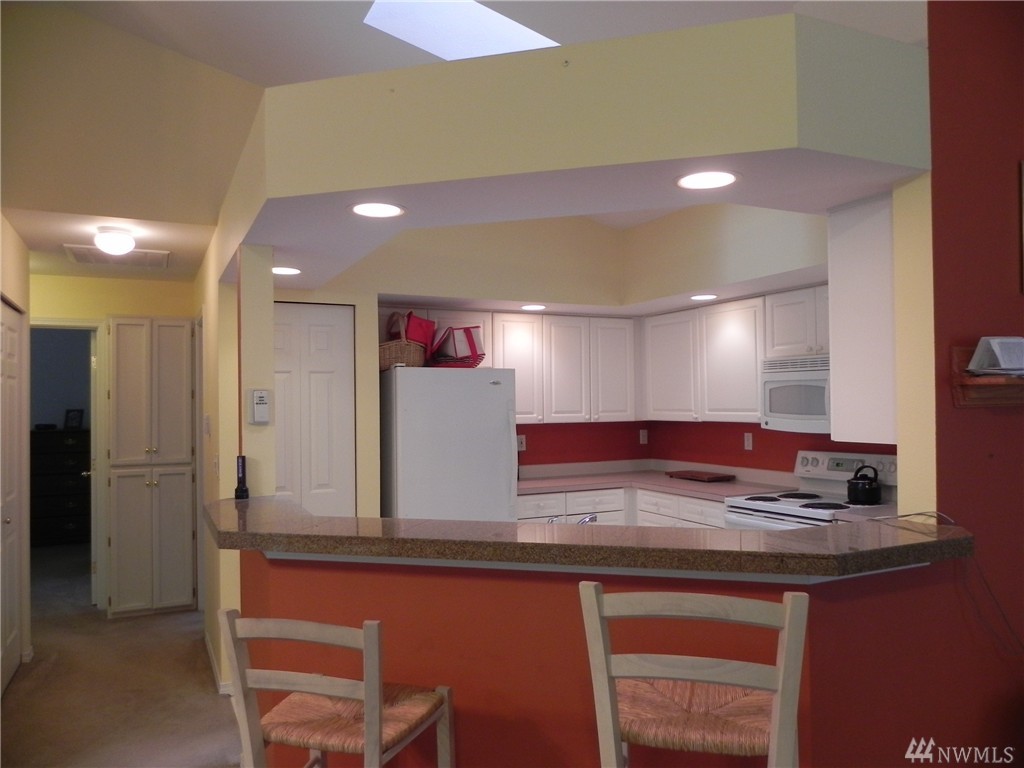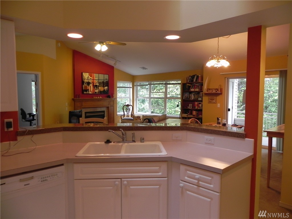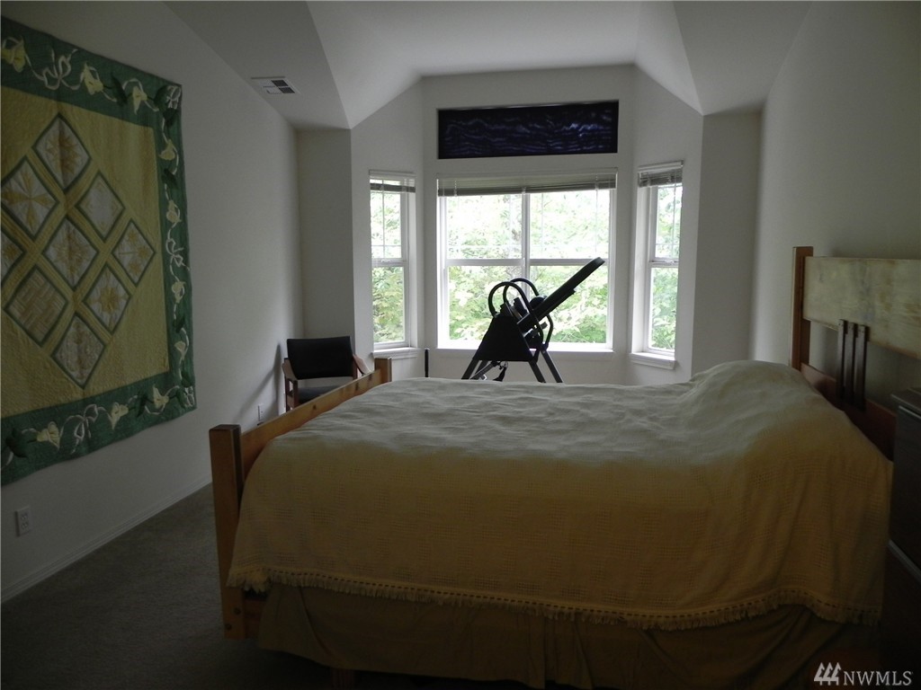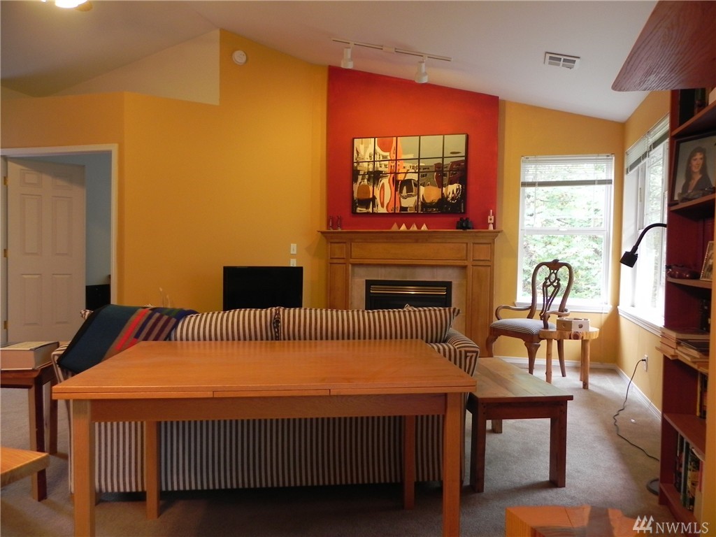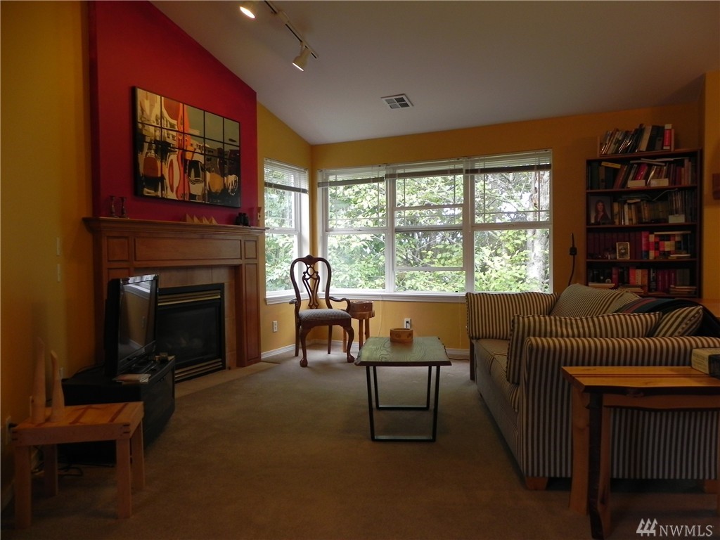 Beautiful second floor Condo over the garage nestled in the trees and green spaces. A quiet setting for this 2BR/1.75Bath, 1543 square foot condo with 2 car garage on the first level. This condo features french doors opening into the den/office/3rd bedrm, gas fireplace, deck, insulated windows, skylights, vaulted ceilings and open kitchen living area. Lots of natural light. Secluded living but close to Fairhaven, WWU and easy I-5 access.