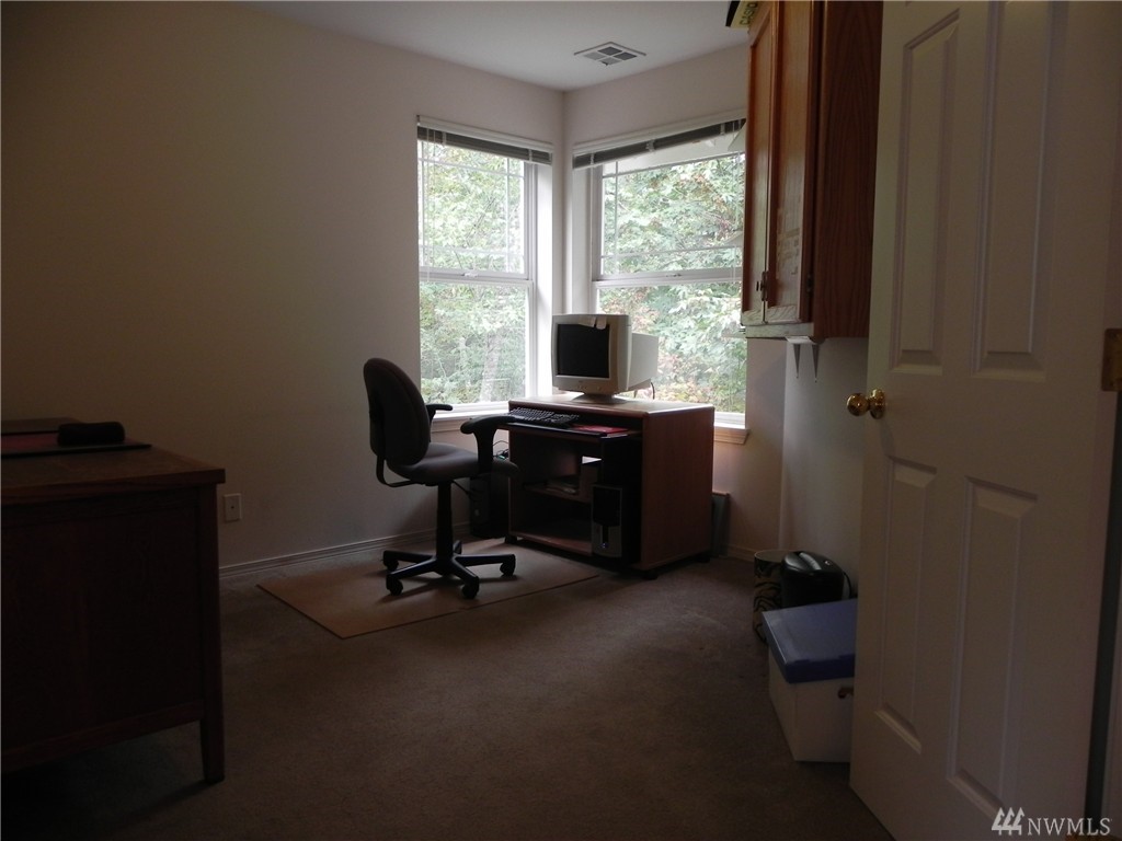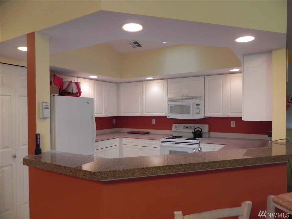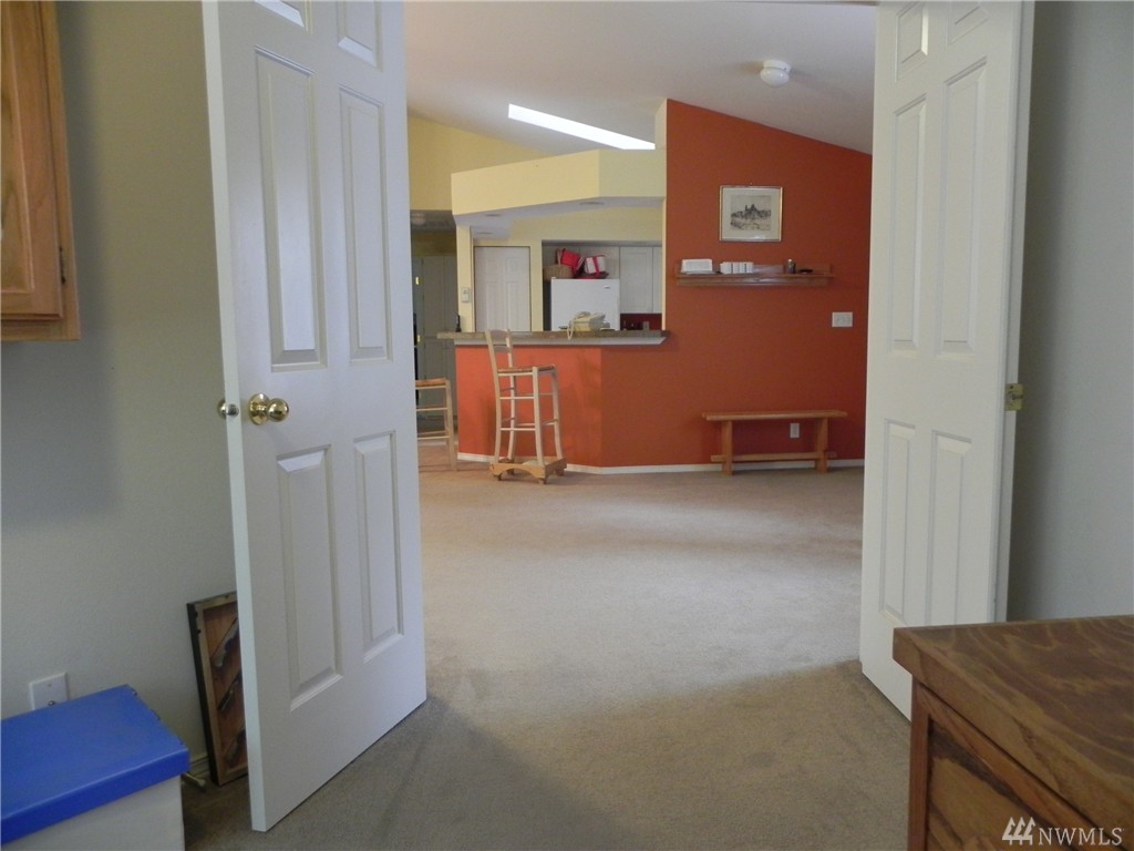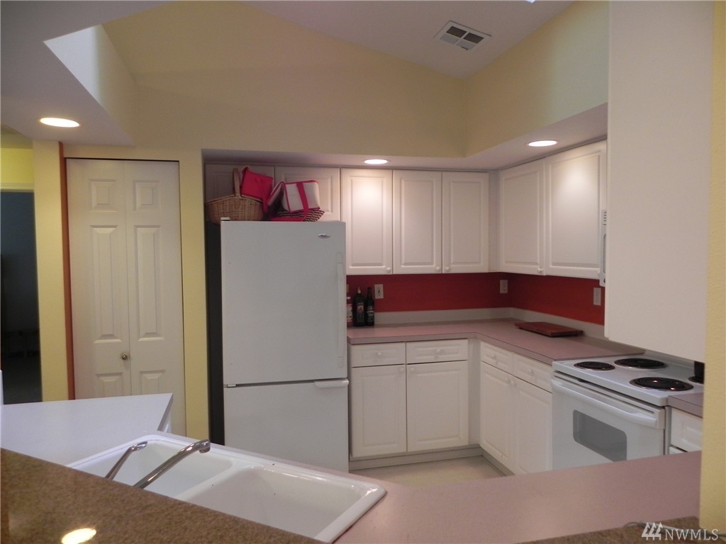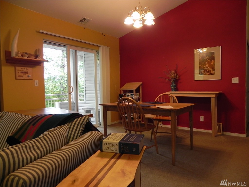 Beautiful second floor Condo over the garage nestled in the trees and green spaces. A quiet setting for this 2BR/1.75Bath, 1543 square foot condo with 2 car garage on the first level. This condo features french doors opening into the den/office/3rd bedrm, gas fireplace, deck, insulated windows, skylights, vaulted ceilings and open kitchen living area. Lots of natural light. Secluded living but close to Fairhaven, WWU and easy I-5 access.