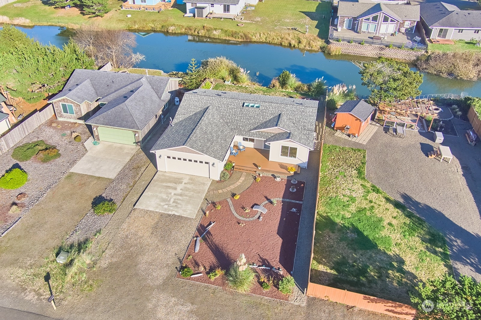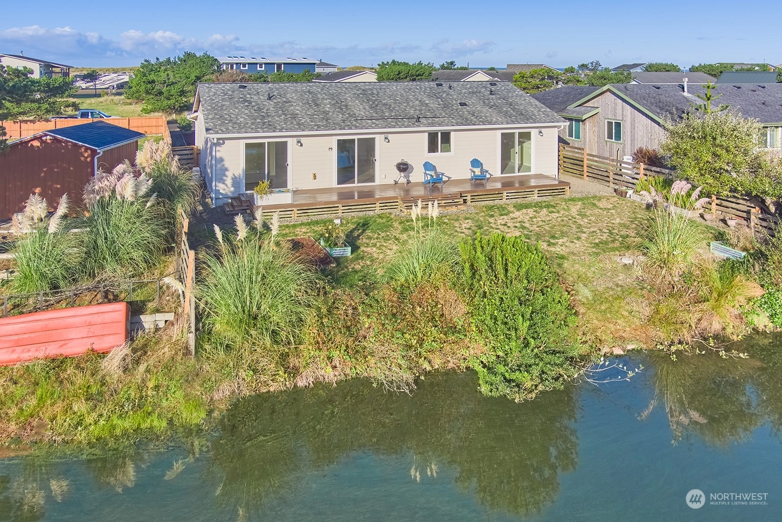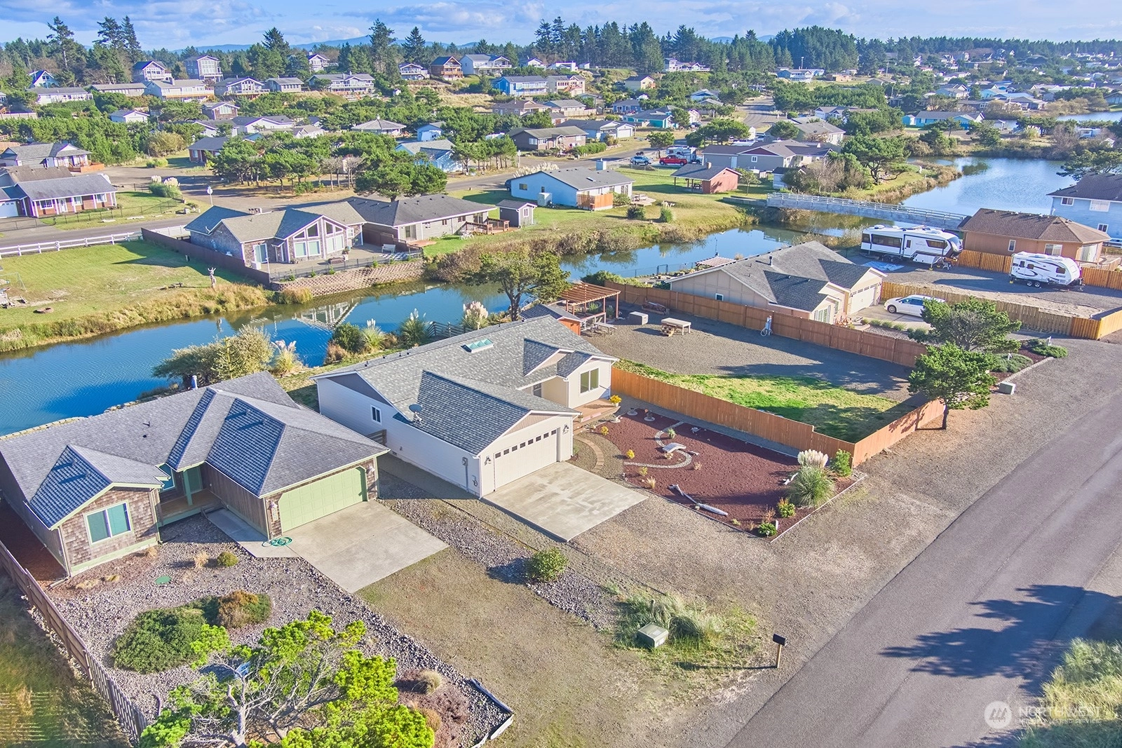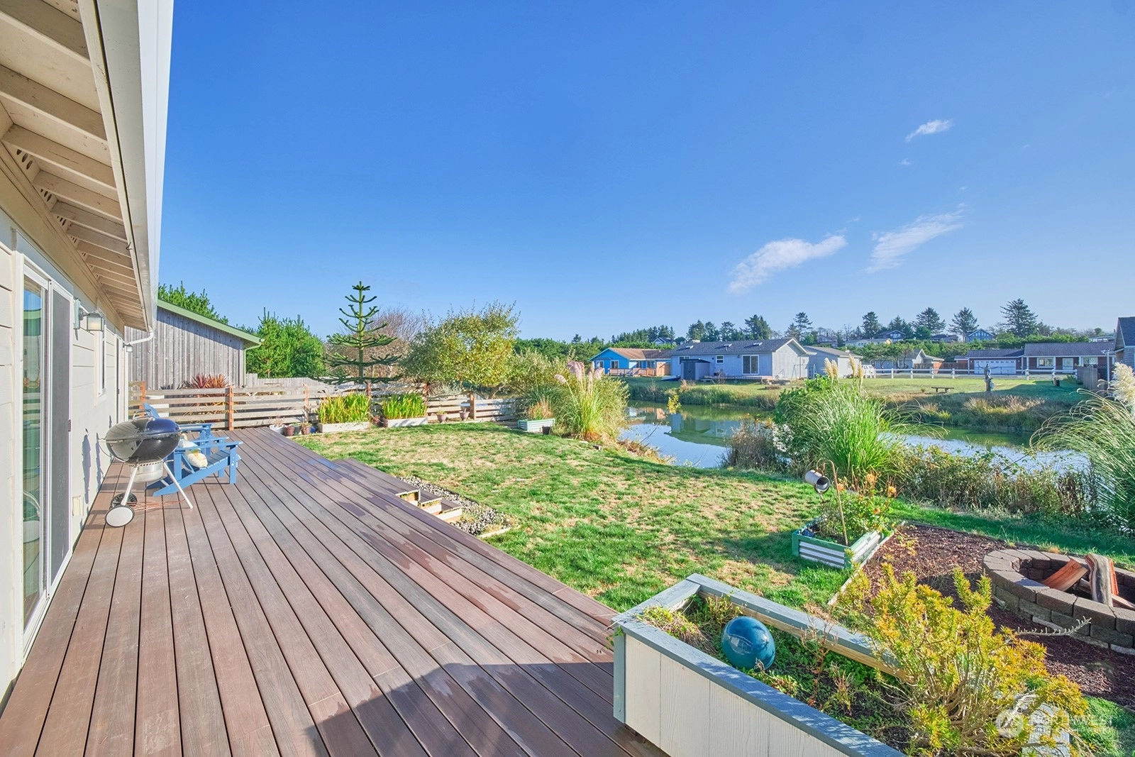 NEW PRICE!! Seabreeze Lake Gem Just Steps from the Beach! Built in 2020, this beautifully maintained home offers 60’ of lakefront access right in your backyard—perfect for enjoying wildlife and breathtaking Pacific sunsets. Inside, fresh interior paint, new carpet, and custom window coverings enhance the light-filled, open layout. The spacious kitchen features a large butcher block island, ideal for gatherings. The split floor plan includes a private primary suite, a second bedroom, and a versatile bonus room facing the water, perfect as a 3rd bedroom, office, or den. Enjoy easy-care landscaping, a large utility/mud room, plenty of storage, and expansive composite decks front and back for enjoying the fresh ocean air. Move-in ready!