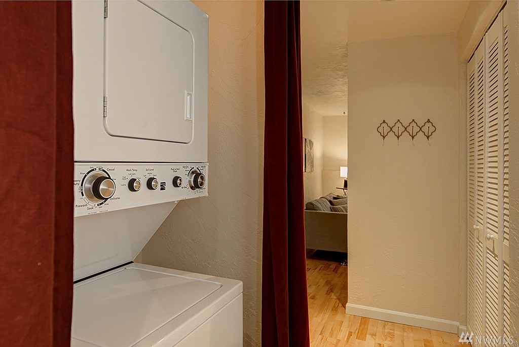 Urban living in superior Queen Anne location! Make yourself at home in this spacious one bedroom with it's creamy hardwood floors and clean layout. New electric heating system + hot water heater, as well as newer kitchen appliances, stackable in-unit laundry + generous parking in secure, shared garage. Under two miles to most Amazon locations and Nordstrom. Close to ALL city amenities, Gates Foundation, EMP, KEXP+Center. Quit renting and pay yourself instead. Metro, light rail and 99.