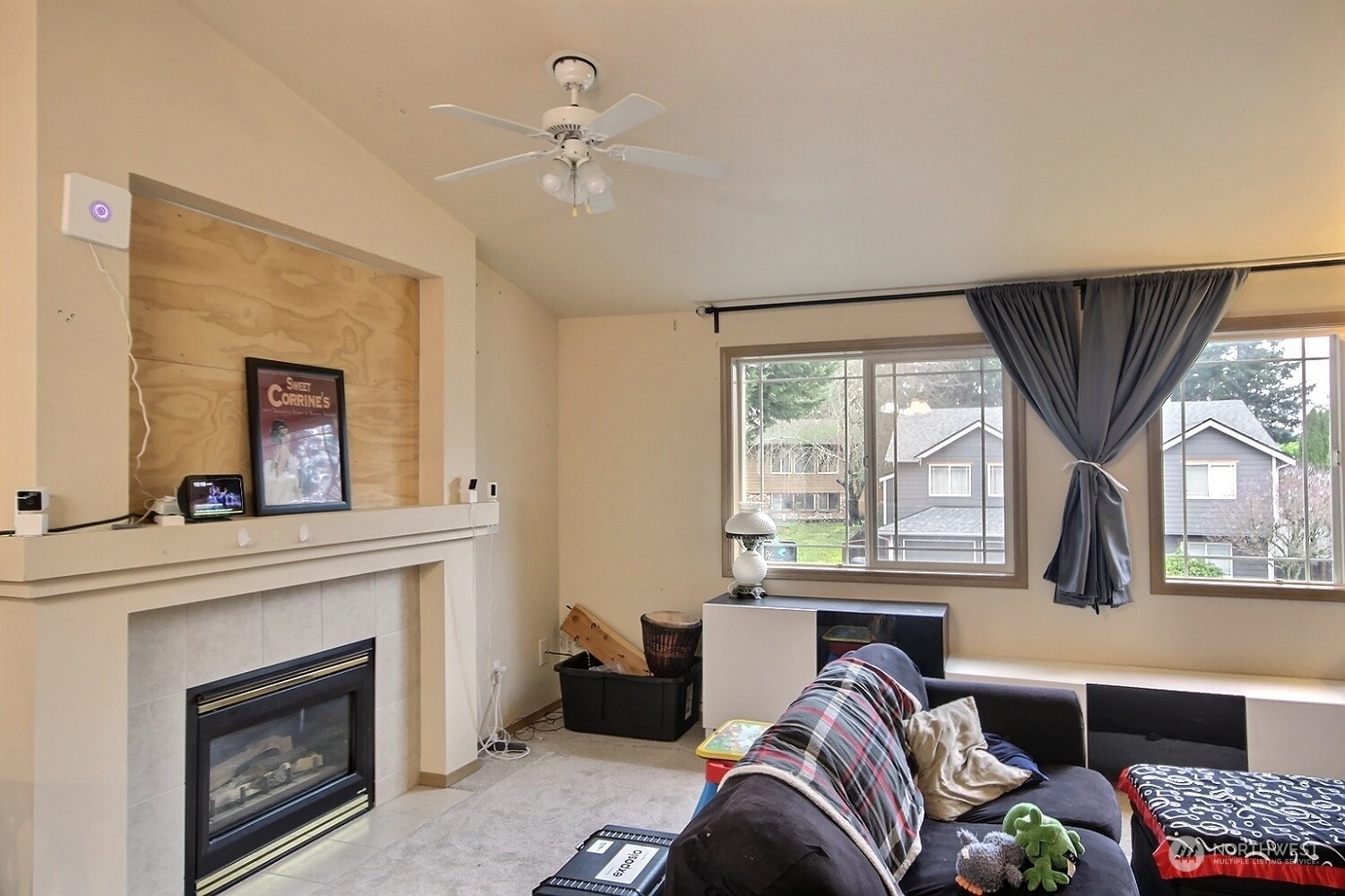 Bath Off Primary Ceramic Tile Double Pane/Storm Window Dining Room Fireplace Laminate Hardwood Vaulted Ceiling(s) Wall to Wall Carpet