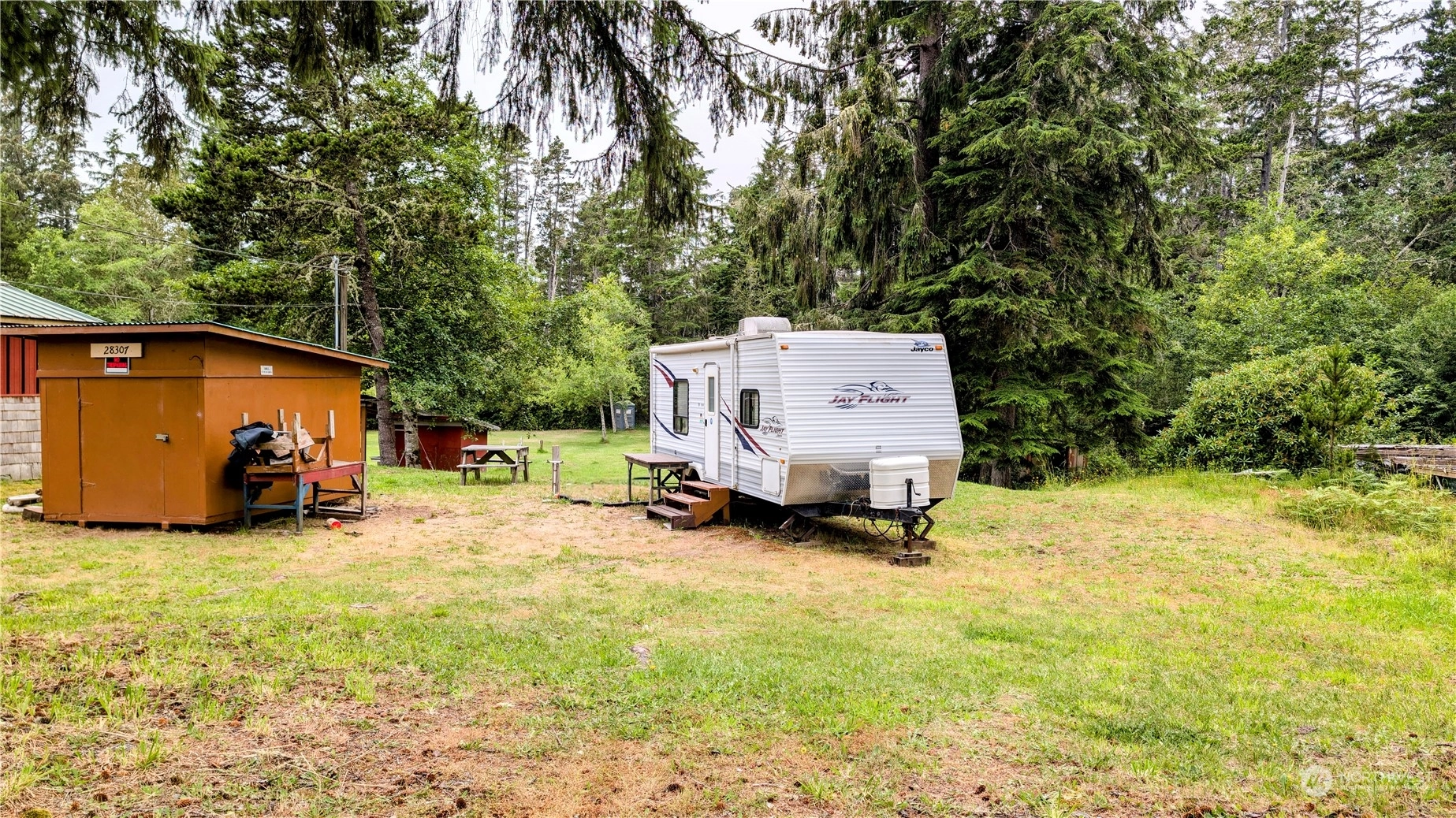 Imagine your own tree-lined meadow with well, RV septic and 30 amp power!. This beautiful property is nestled in the woods of Ocean Park offers luxurious camping today or build your forever home tomorrow. Just minutes away from the beach, the bay and all the amenities Ocean Park has to offer. This 10,500 sq foot double lot offers expansive meadow, mature trees and a shed for all your storage needs. At this price, this PNW gem won’t last long! Buyer's to determine feasibility for home site. The offering contains two lots (75012021008 & 75012021017) and half the vacated alley per description on Pacific County Assessors site.