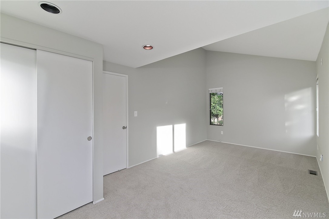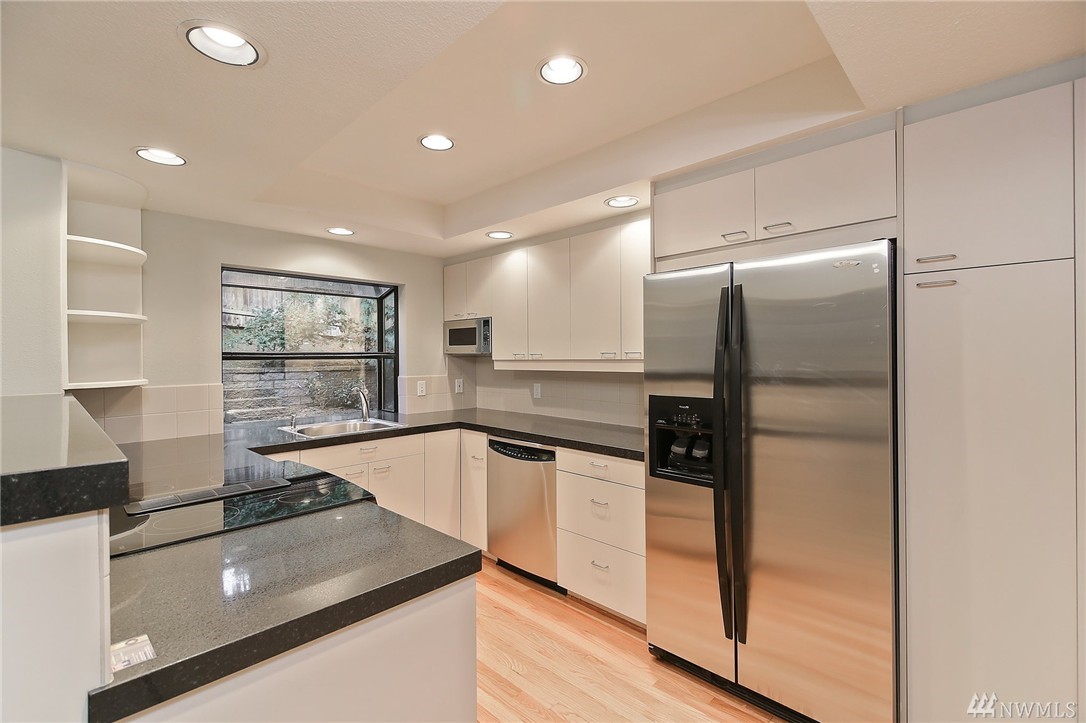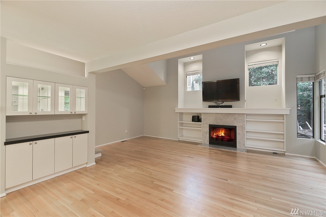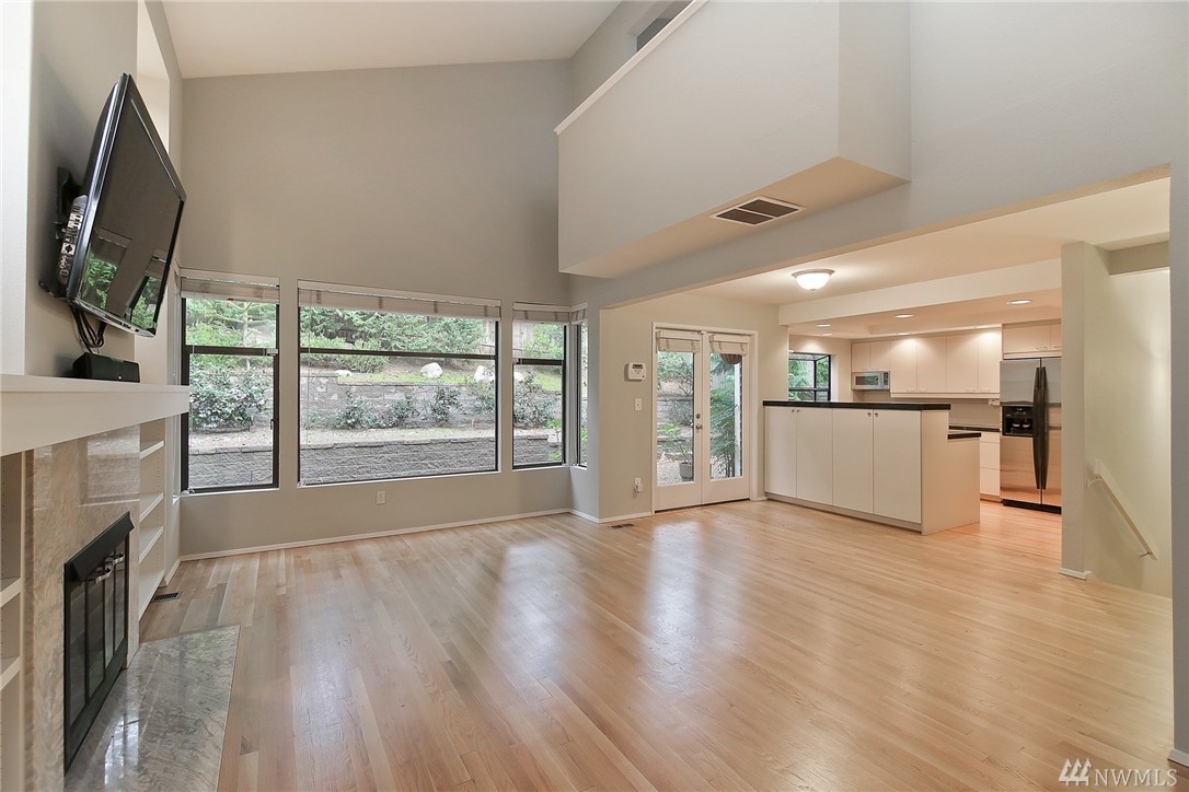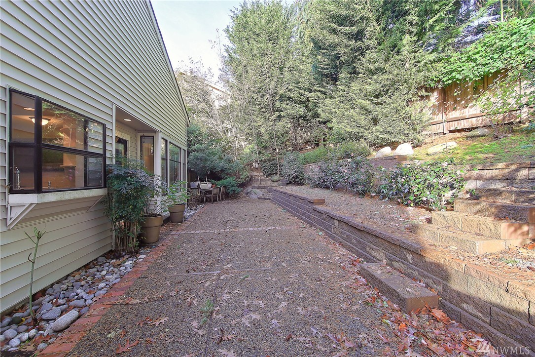 Rare opportunity to purchase end unit townhome with vaulted ceilings and large fully fenced yard 2 Bed/ 2.25 bath with attached 2 car garage. Don't let Bellevue Way address fool you, unit is furthest away from street down private lane. Excellent location close to downtown Bellevue. Enjoy top Bellevue schools. Updated bathrooms, newly refinished hardwoods, stainless steel appliances, wood burning fireplace. Lots of storage. Low HOA dues. Don't miss this amazing home!