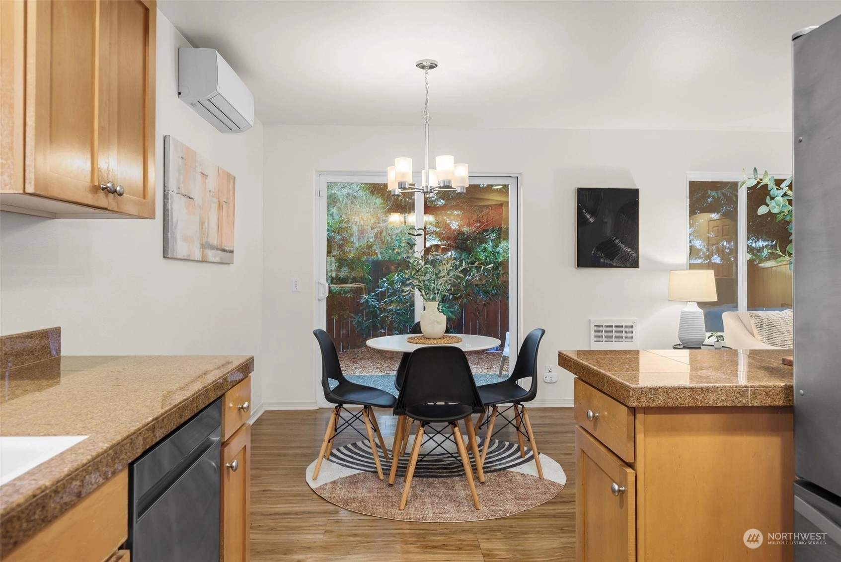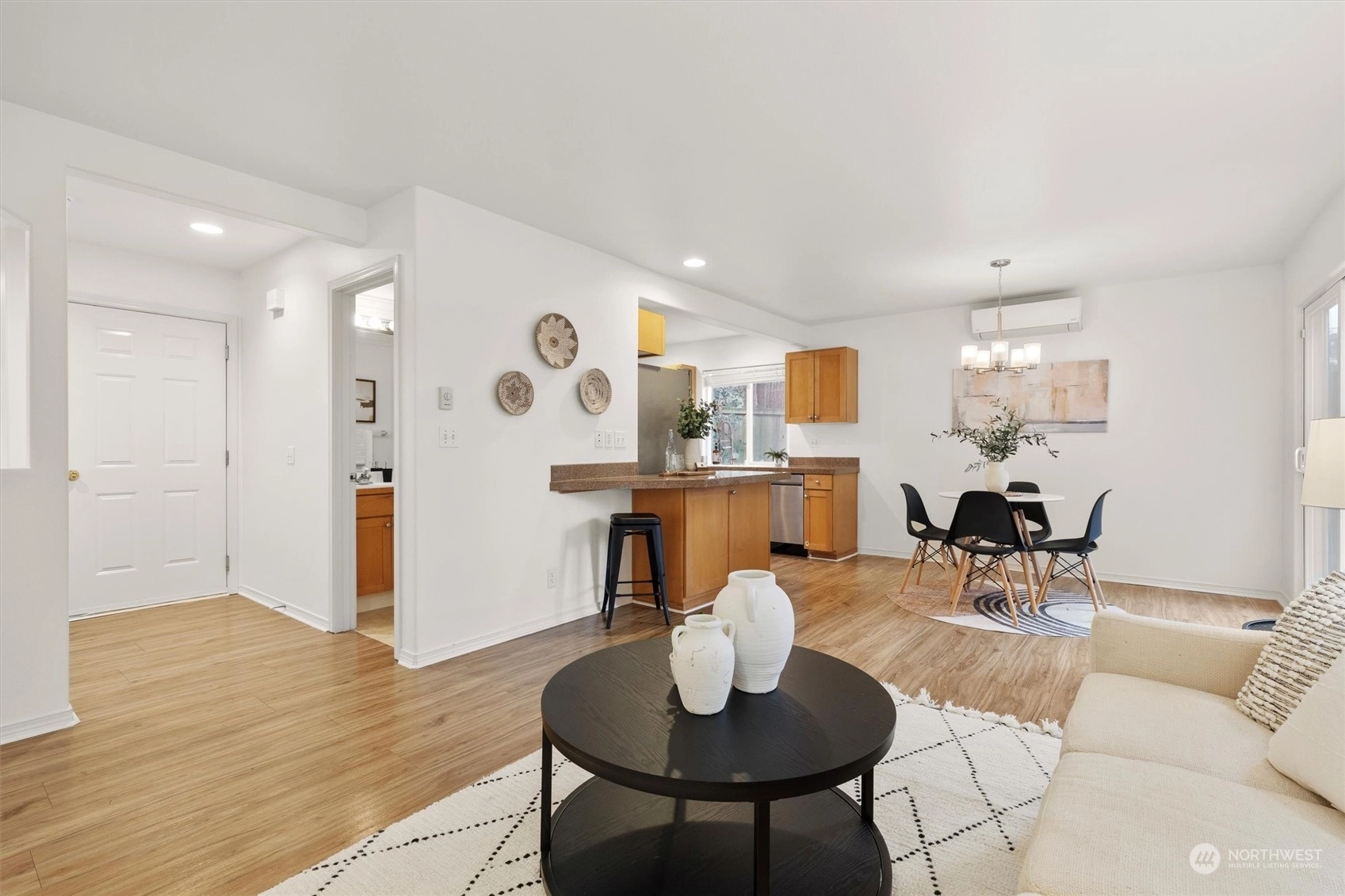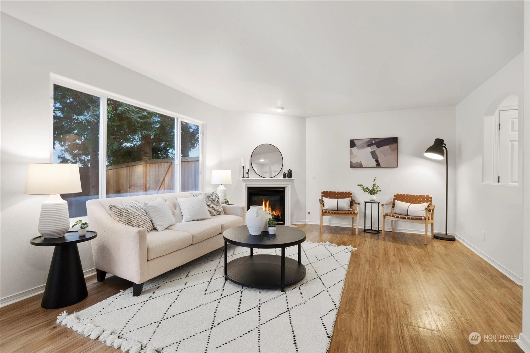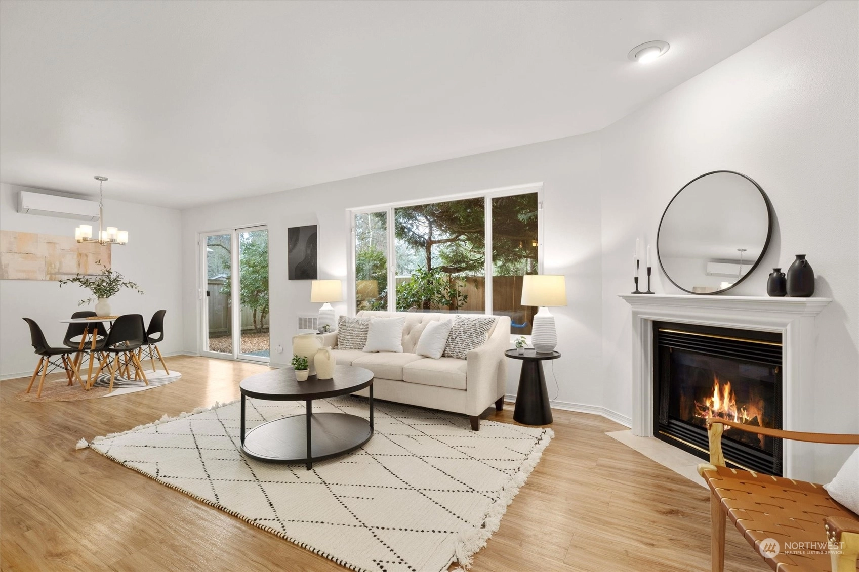 Stunning Edmonds townhome: the perfect blend of comfort, convenience and location with updated features, private backyard, gated entry & attached garage with EV charger. Laminate flooring throughout main floor with wall to wall carpet upstairs. Heat pumps installed on main floor and primary bedroom provide A/C. Huge, fully fenced private back yard area. Gas fireplace, stainless steel appliances and turnkey condition round out the updated creature comforts. This end unit has comfortable flow with spacious rooms. 5-piece primary suite has large walk-in closet, separate soaking tub w/ double sinks. Perfectly appointed with an even more appealing price point. A great opportunity in Edmonds with ideal location to all points of interest.