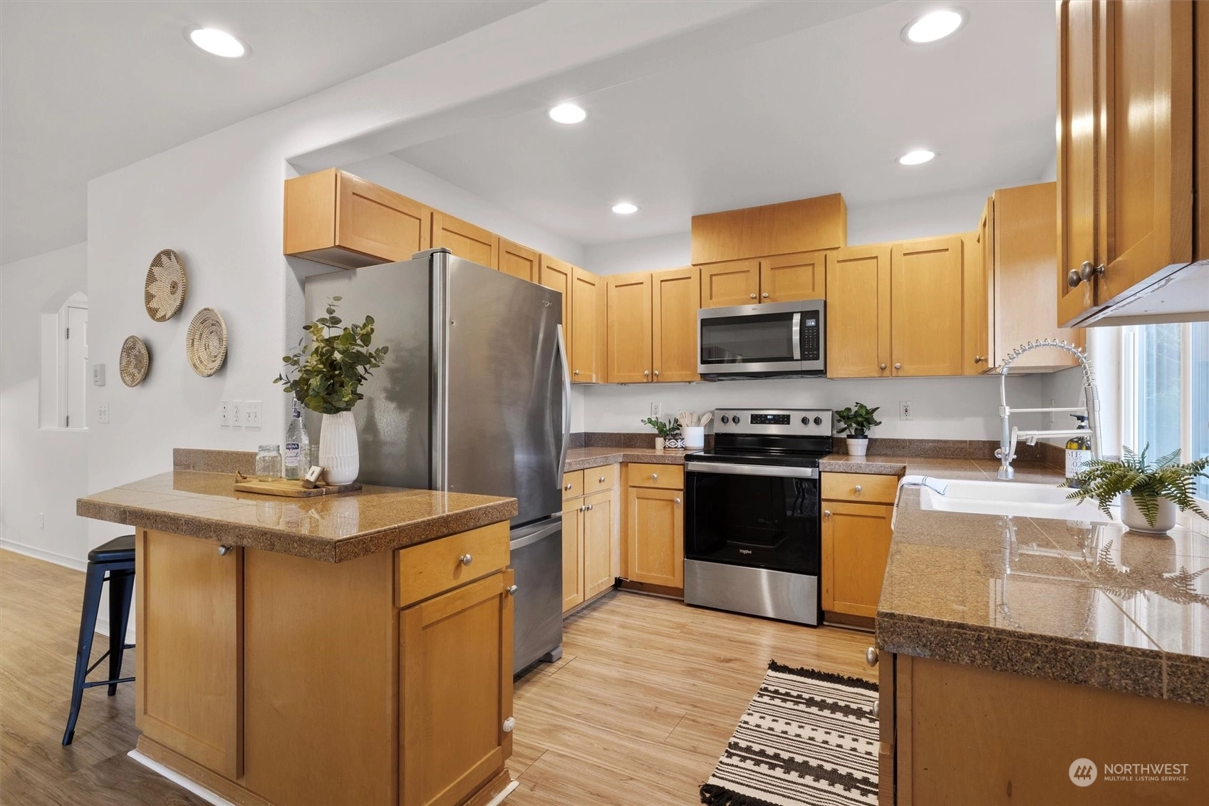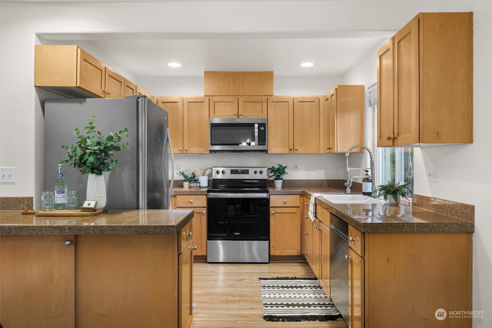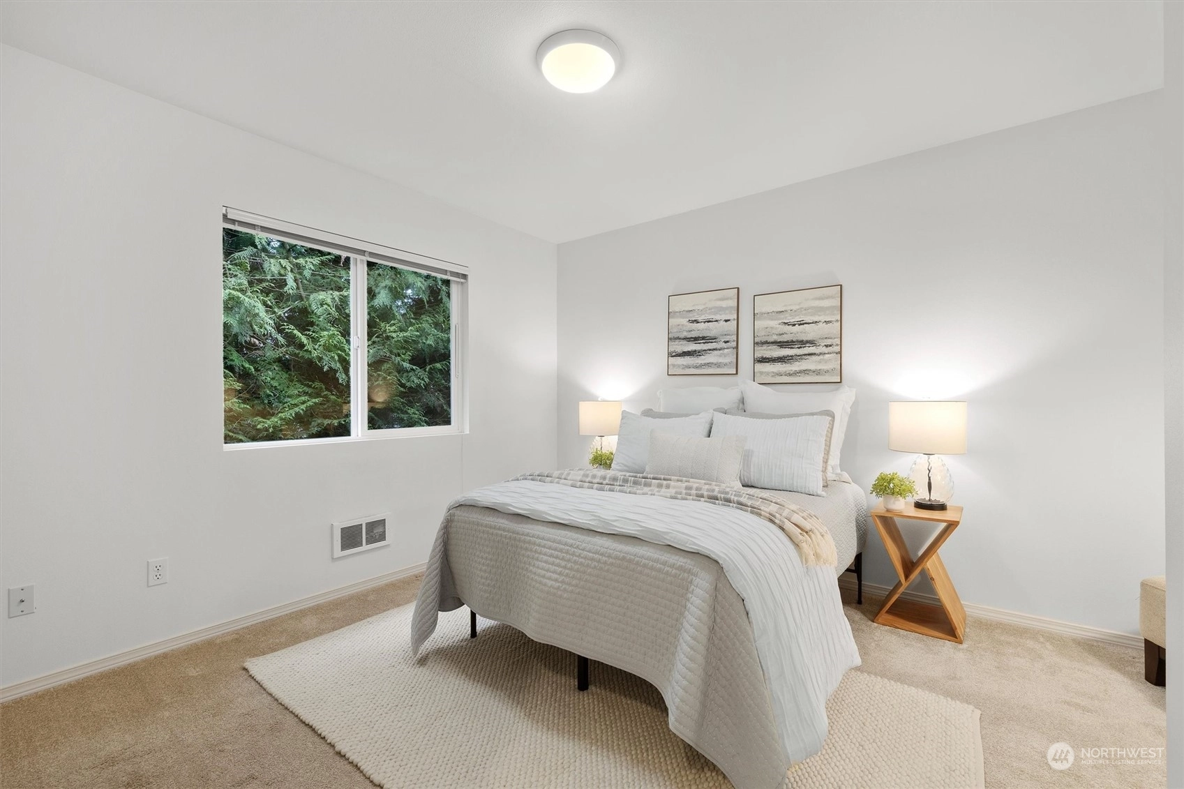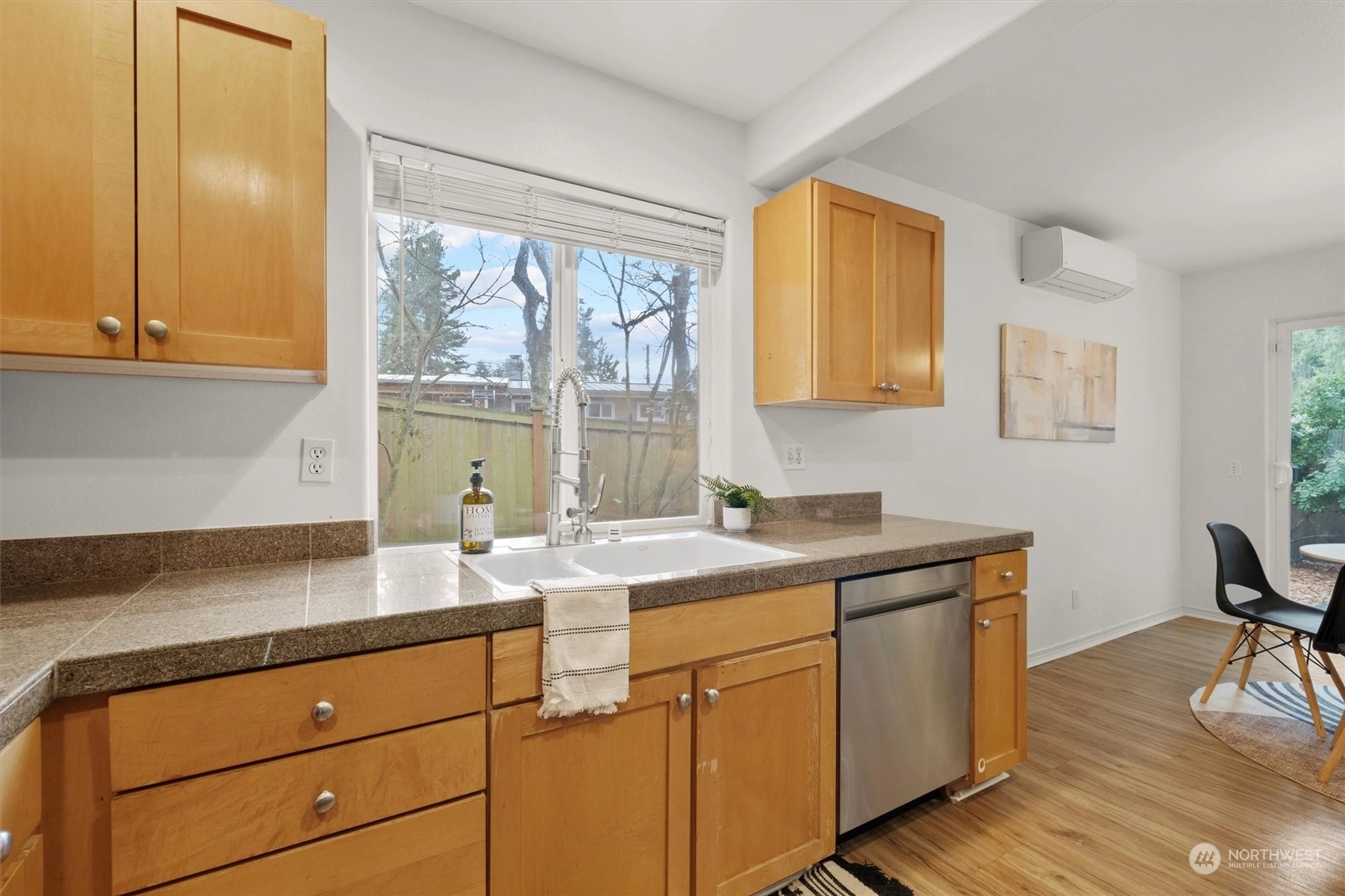 Stunning Edmonds townhome: the perfect blend of comfort, convenience and location with updated features, private backyard, gated entry & attached garage with EV charger. Laminate flooring throughout main floor with wall to wall carpet upstairs. Heat pumps installed on main floor and primary bedroom provide A/C. Huge, fully fenced private back yard area. Gas fireplace, stainless steel appliances and turnkey condition round out the updated creature comforts. This end unit has comfortable flow with spacious rooms. 5-piece primary suite has large walk-in closet, separate soaking tub w/ double sinks. Perfectly appointed with an even more appealing price point. A great opportunity in Edmonds with ideal location to all points of interest.