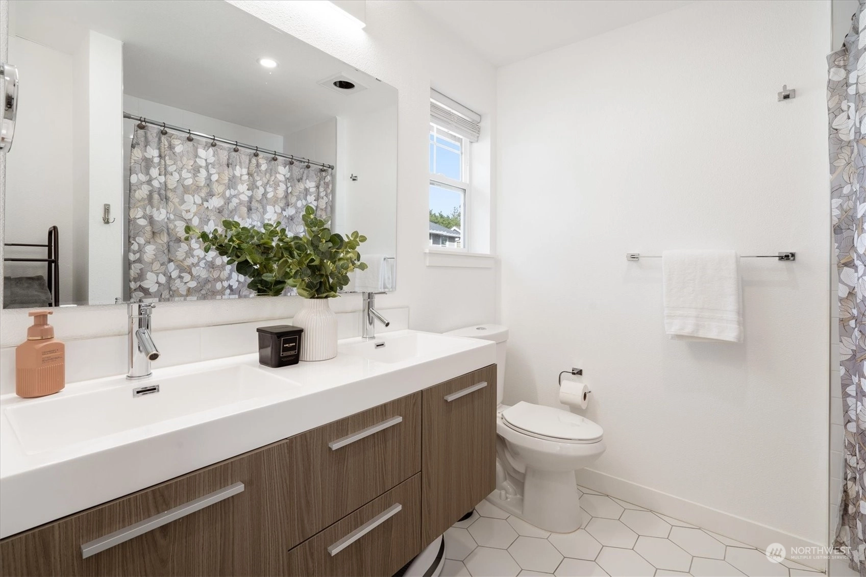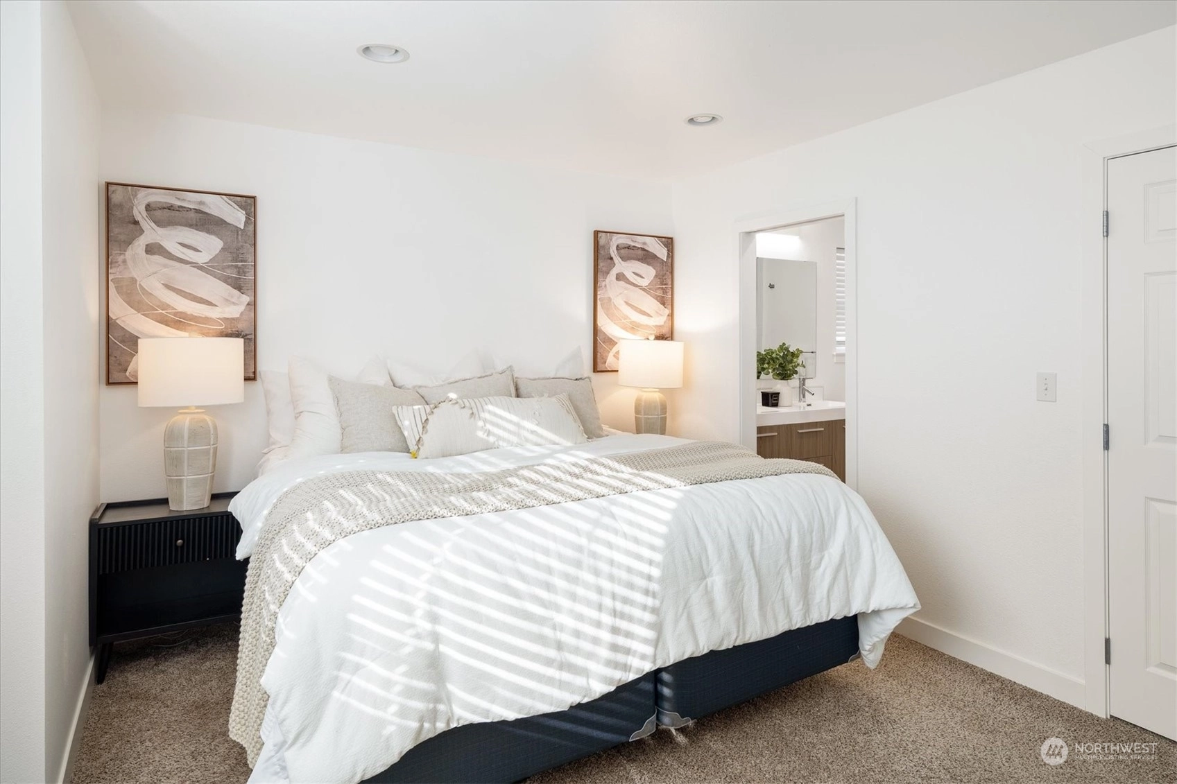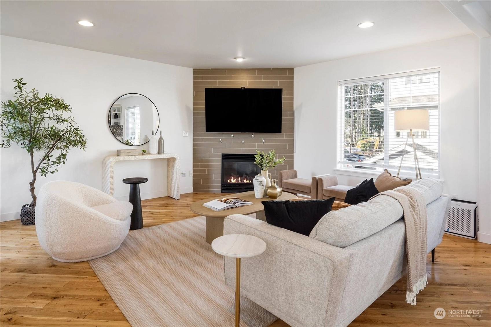 Welcome to Alderbrook Village West, where comfort meets convenience! This fully detached 4-bedroom, 2.5-bath corner lot home features an open-concept great room with hardwood floors, perfect for modern living and entertaining. The primary suite boasts two spacious walk-in closets, The lower-level bedroom makes an ideal home office, offering versatility to suit your lifestyle. Recently remodeled, this home also includes a private patio backing to a serene greenbelt and trails, plus a brand-new roof and furnace for worry-free living. Built in 2005, the west-facing home is in a gated community with easy access to Hwy 99, I-5, I-405, Hwy 525, shopping, and daily services. Enjoy the 2-car garage and peaceful surroundings!