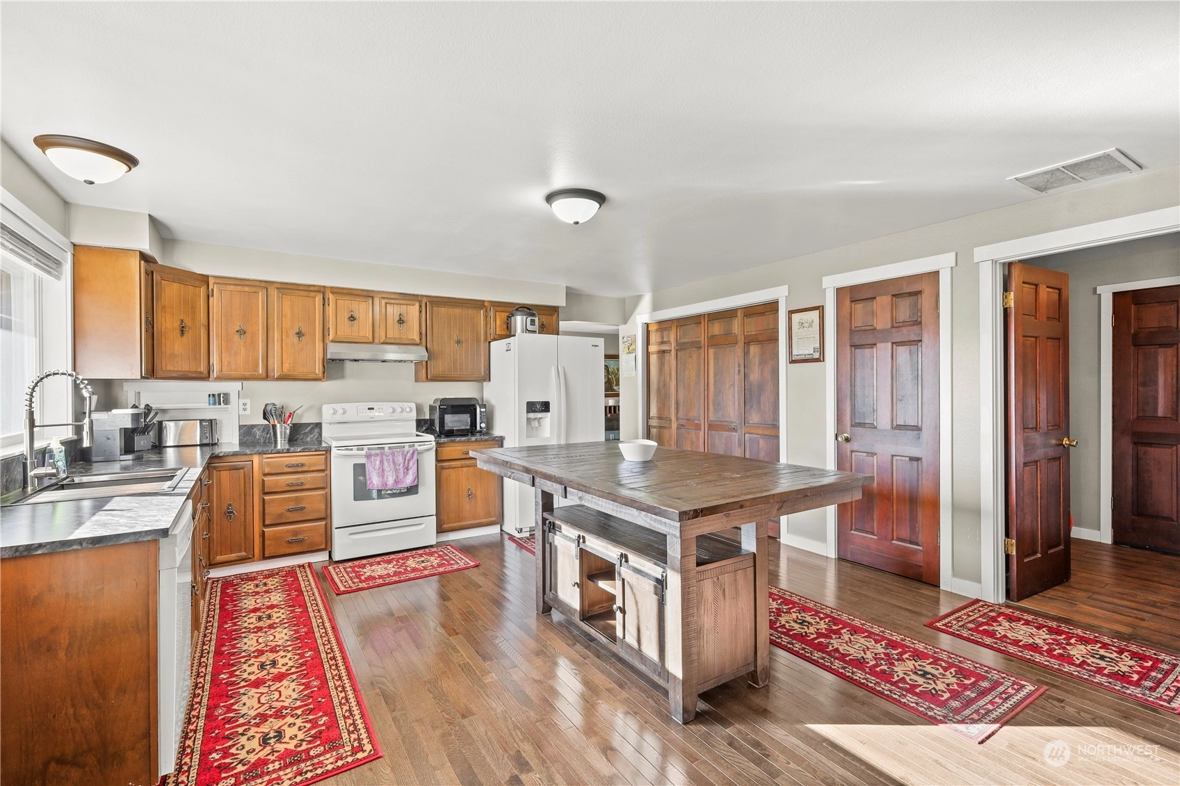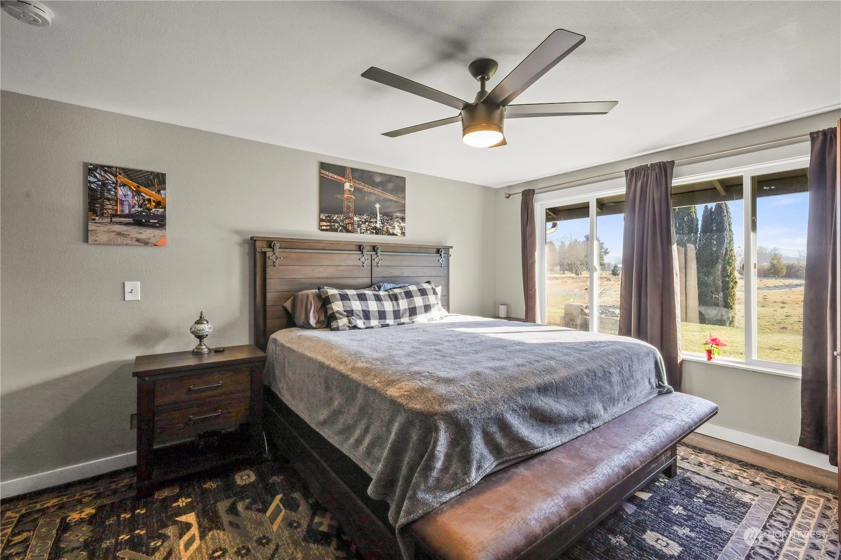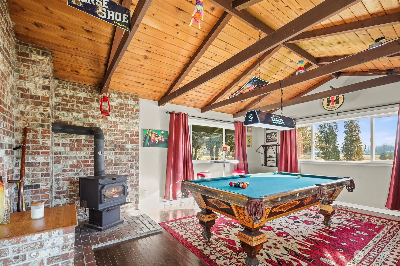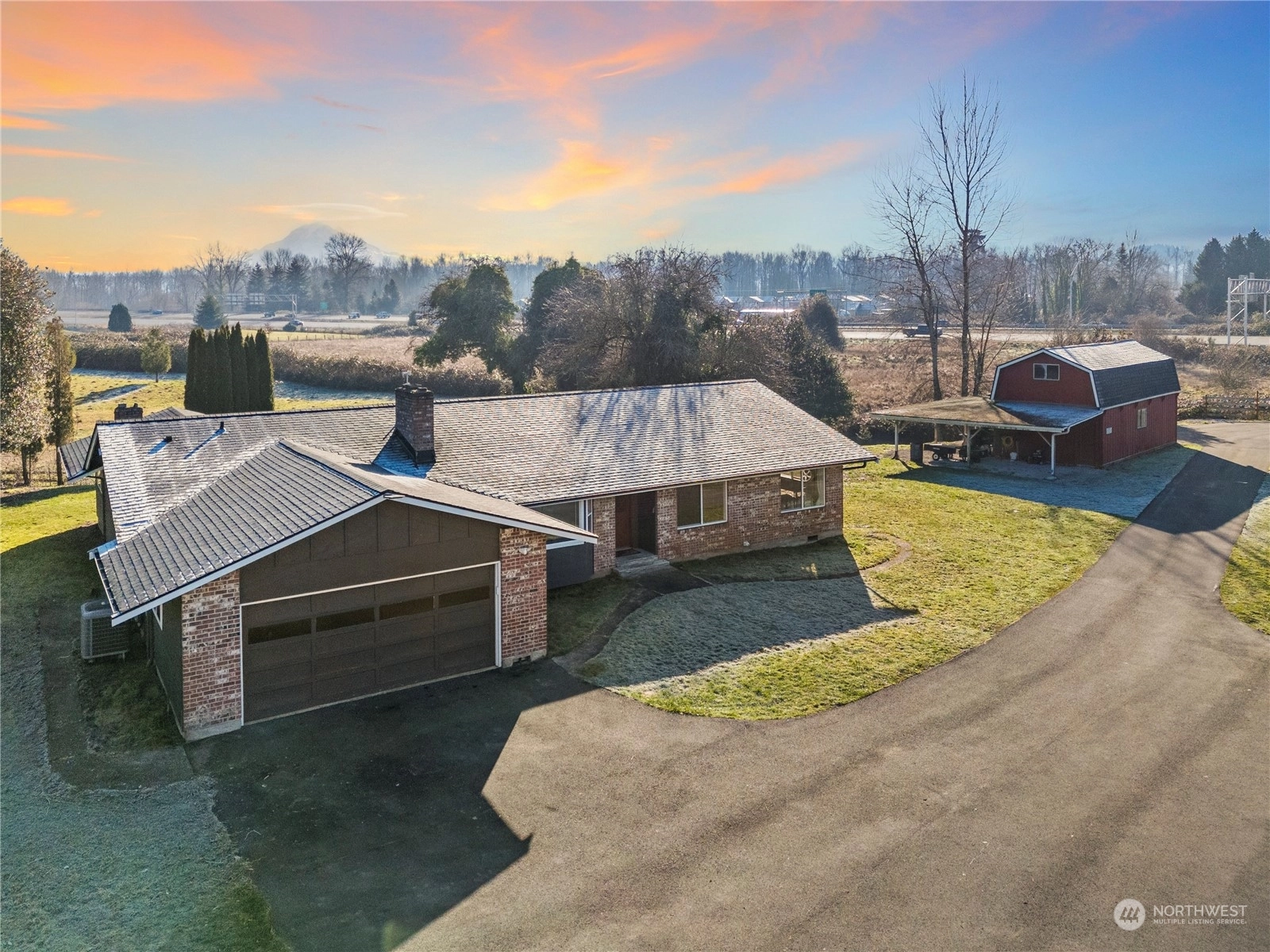 Enjoy private single level living on an acre of flat & usable land w/a Mountain view! This traditional rambler is bursting at the seems with updates comprised of the following: roof/s, vinyl windows, A/C, furnace, flooring throughout including hardwood & marble, kitchen counters, kitchen sink & large pantry, interior & exterior paint, complete bathroom/s finishes & much more. Stay warm w/2 wood stoves & fireplace. Take advantage of 3 separate living spaces including a large bonus/rec room with vaulted ceilings & Mountain view form back patio, formal living room & family room off large kitchen. Utilize the abundant storage w/the attach. 2 car garage, 16 x 32 two-story barn, & enough space to park an RV onsite.