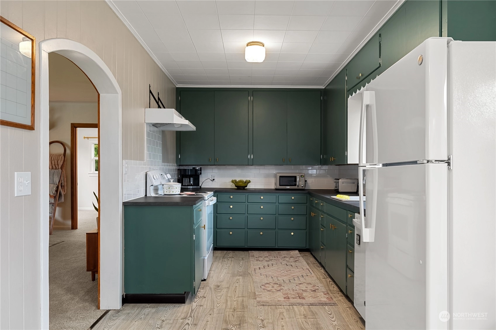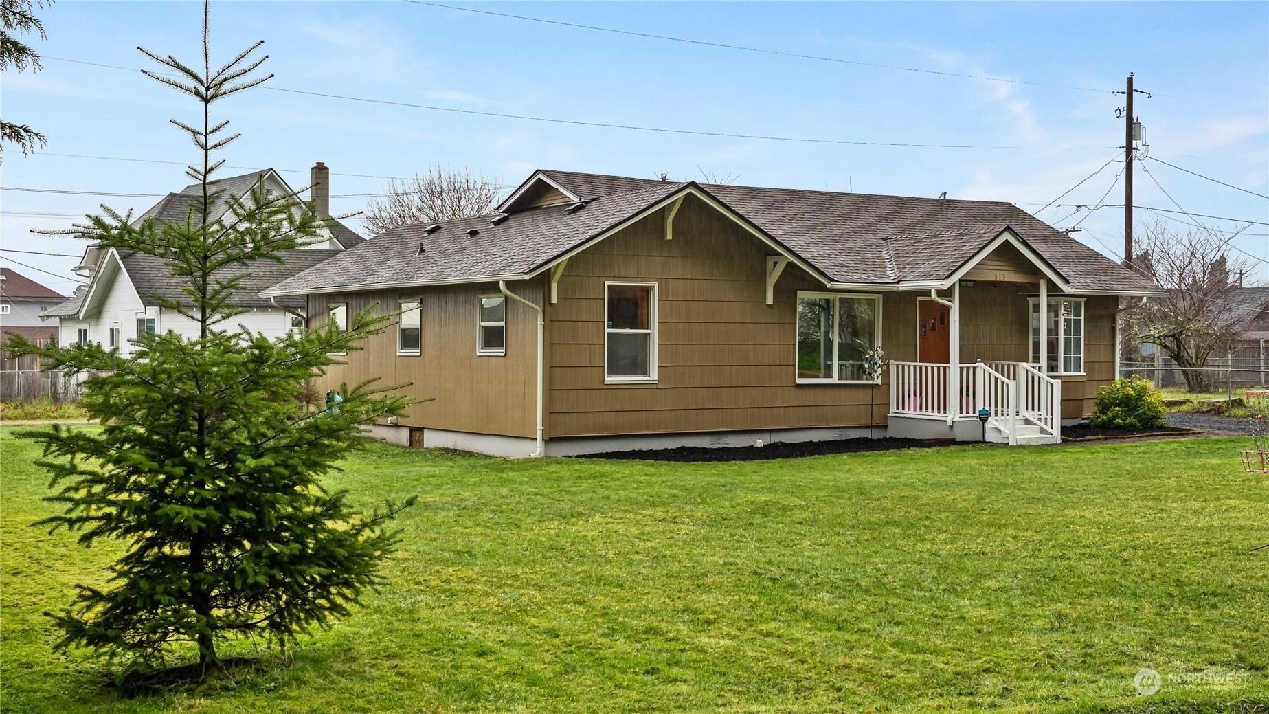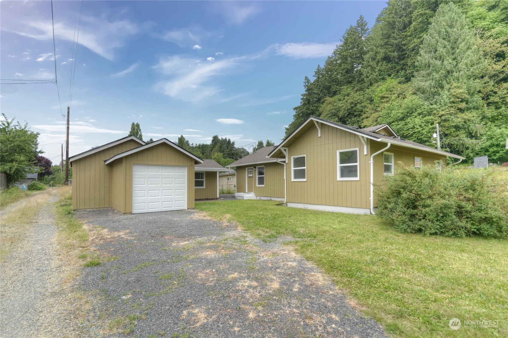 Located just a few minutes from downtown Centralia on a dead end street and adjacent to Seminary Hill Natural Area, this level quarter acre property features a charming 1120+/- sqft 3 bedroom, 1 bathroom main home and a recently permitted detached 416+/- sqft space with a ¾ bath. This home has been well cared for and it shows! Recent improvements include a new 30 year roof, new garage, new paint and an updated kitchen. Plenty of storage with built-ins throughout the home. Alley access provides separate rear entry and access to garage and detached building.