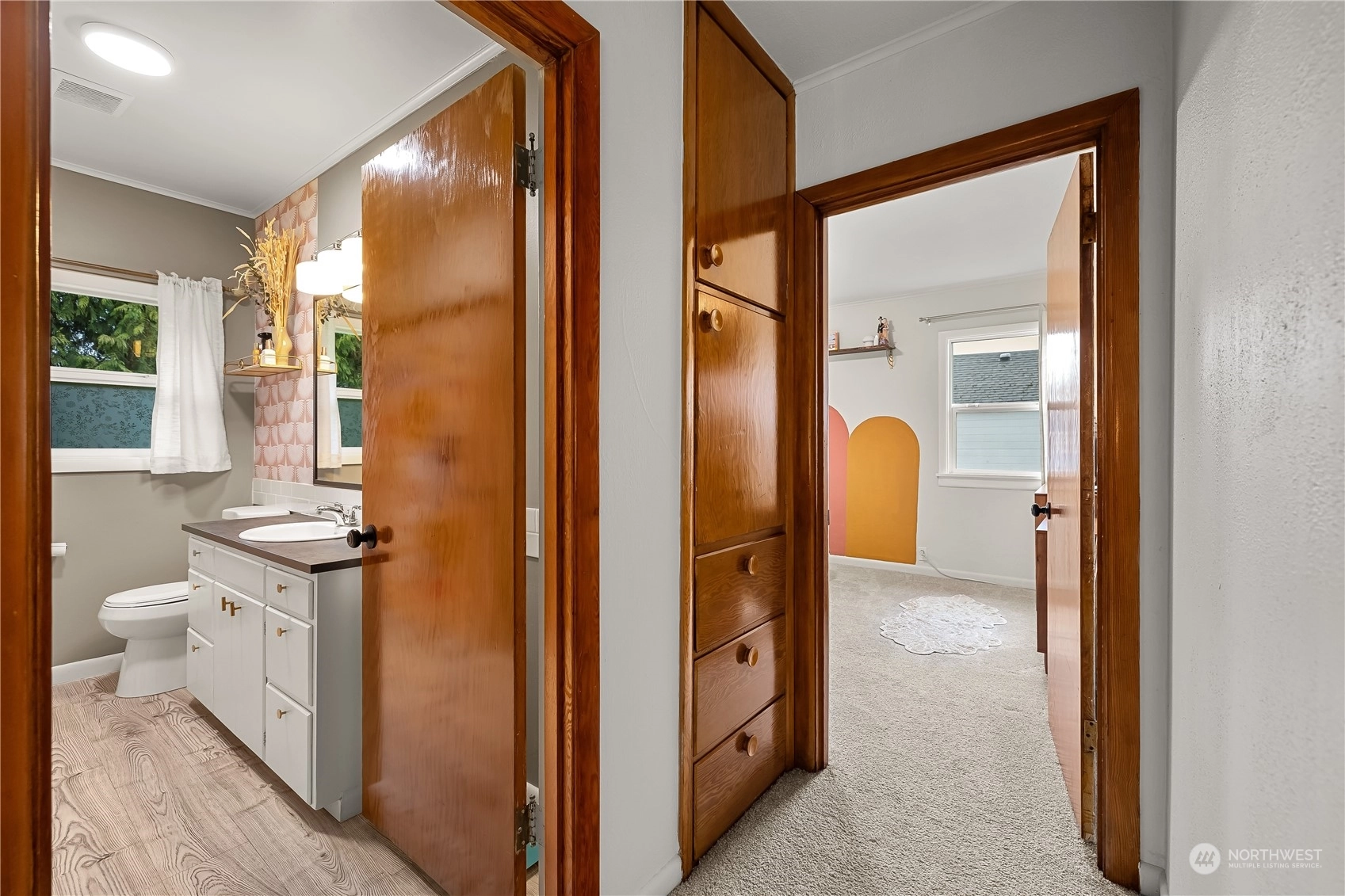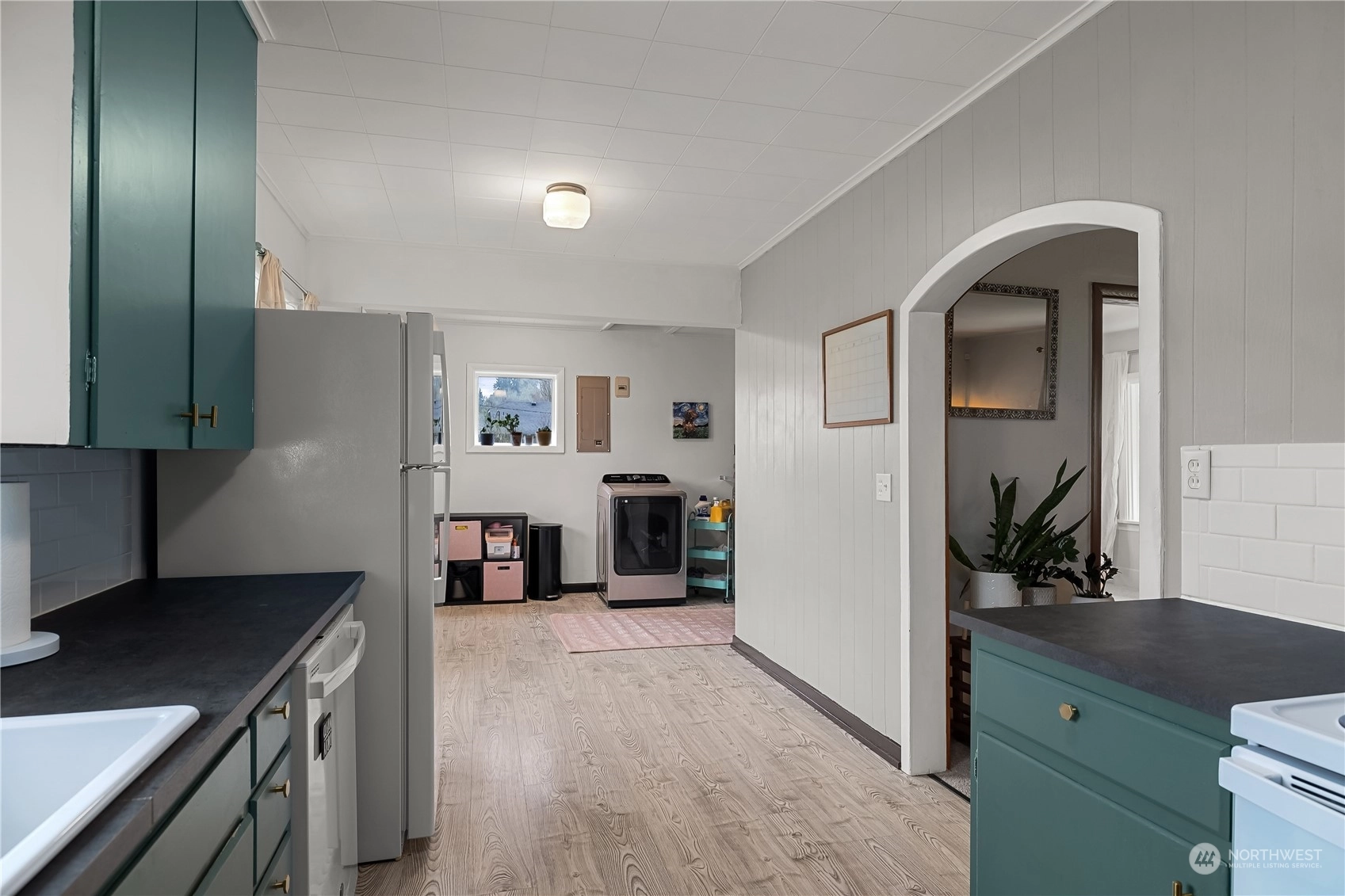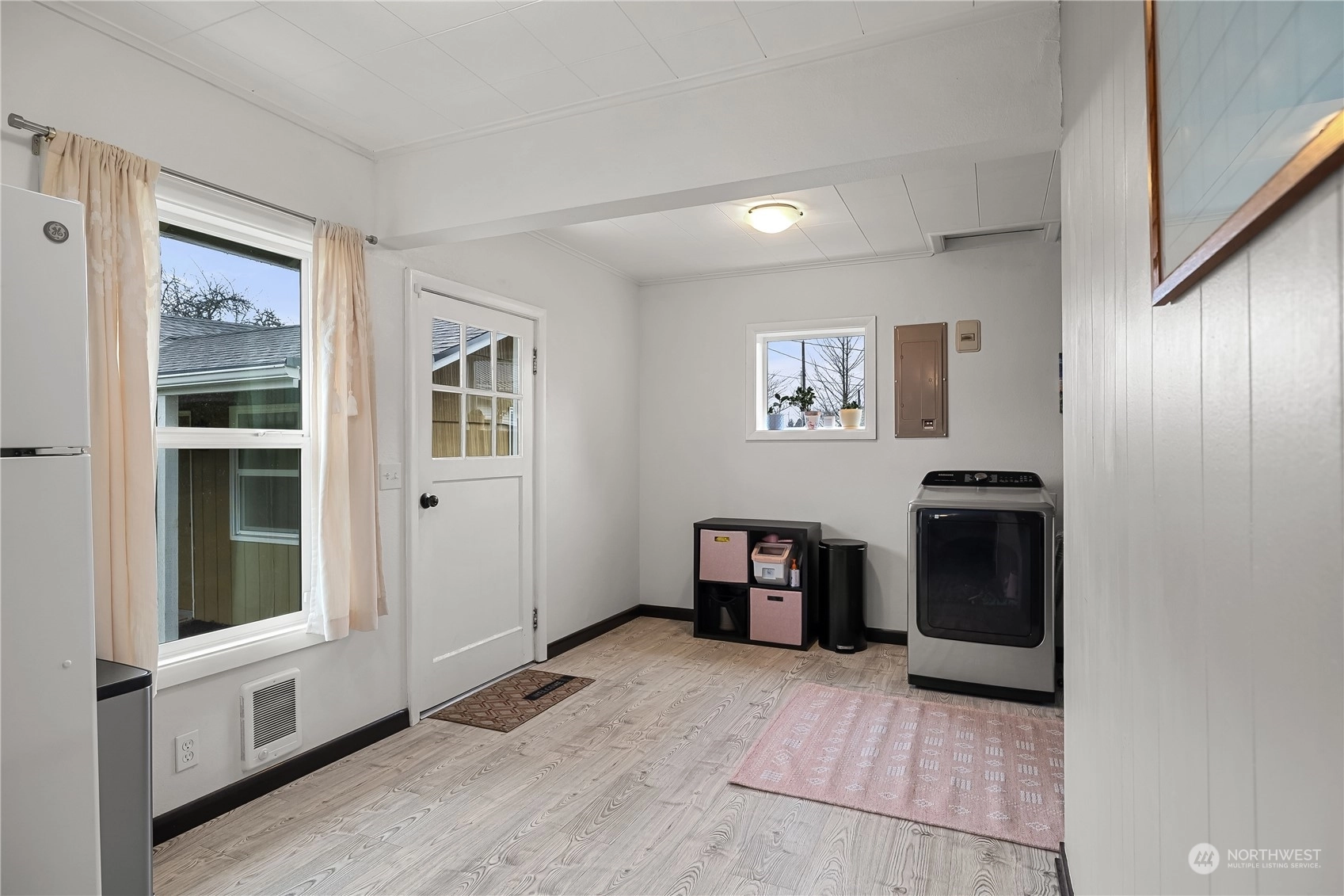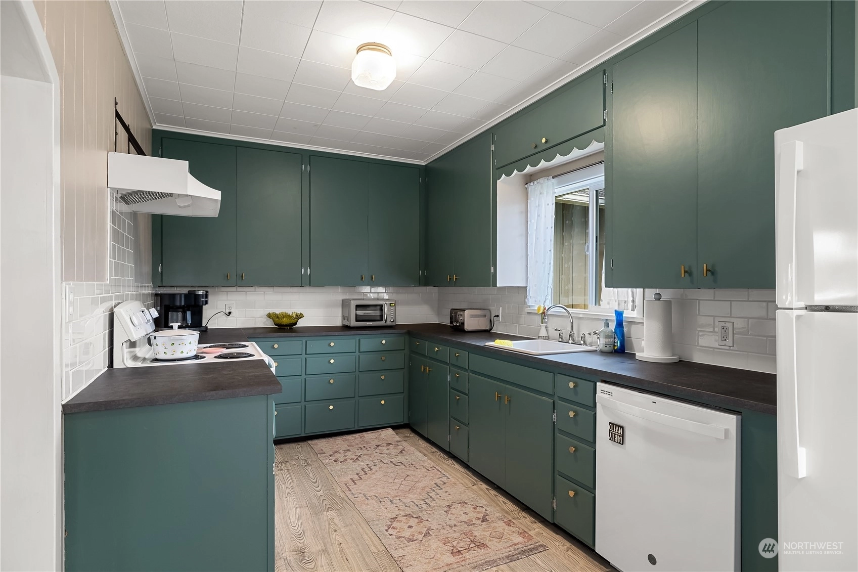 Located just a few minutes from downtown Centralia on a dead end street and adjacent to Seminary Hill Natural Area, this level quarter acre property features a charming 1120+/- sqft 3 bedroom, 1 bathroom main home and a recently permitted detached 416+/- sqft space with a ¾ bath. This home has been well cared for and it shows! Recent improvements include a new 30 year roof, new garage, new paint and an updated kitchen. Plenty of storage with built-ins throughout the home. Alley access provides separate rear entry and access to garage and detached building.
