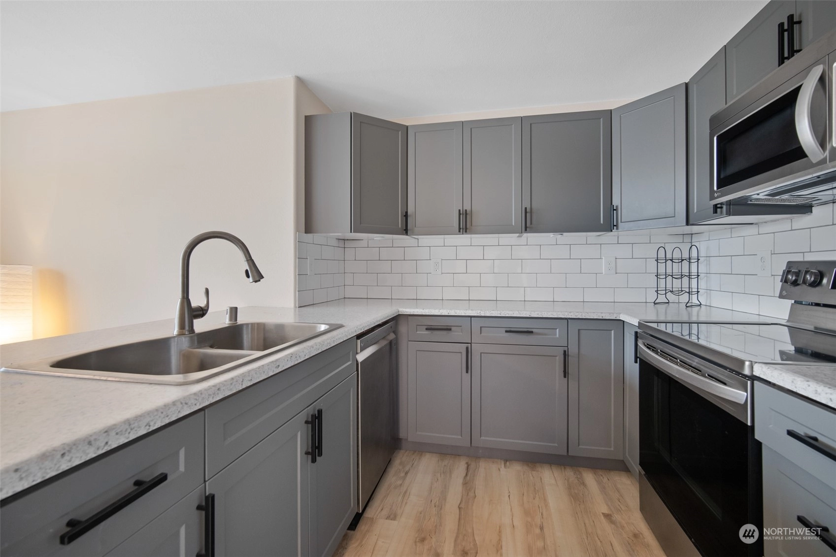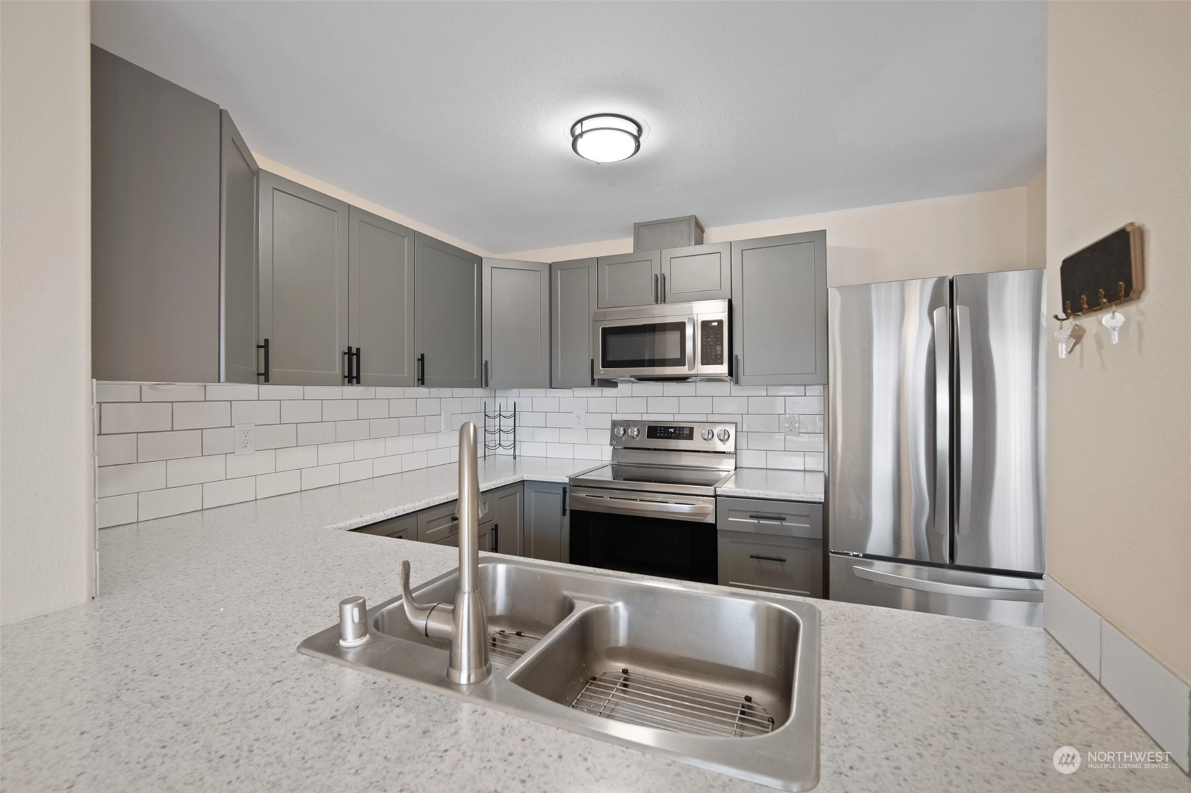 Welcome to this beautifully updated top-floor 3-bedroom, 2-bath condo in the desirable Cordata neighborhood! This spacious home is filled with natural light and offers ample storage throughout. Recent updates include new appliances, cabinets, countertops, and fresh paint, making it truly move-in ready. Enjoy a low-maintenance lifestyle in this peaceful, well-maintained community, complete with a private back patio overlooking the serene green space. Conveniently located near I-5, shopping, dining, and scenic walking trails, this home offers both tranquility and accessibility. Plus, exciting community upgrades are on the way, with new landscaping and parking lot resurfacing coming in Spring 2025! Don’t miss this fantastic opportunity!