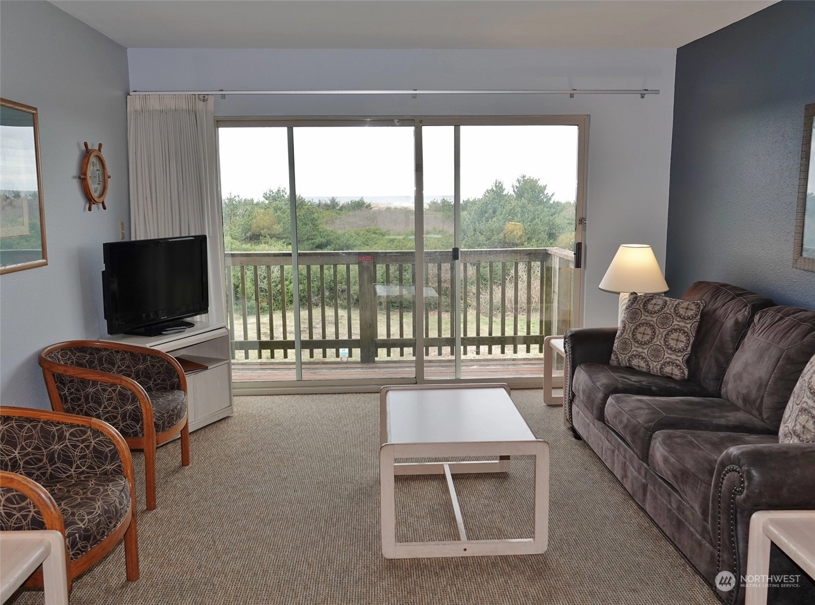 OCEAN VIEW HOTEL CONDO! Located on the Top 3rd Floor (#319) in The Polynesian Hotel in downtown Ocean Shores. Relax in this Furnished 1 BD, 1 BA, 672 sq.ft. Comfortable Living Room w/ a presto log Fireplace, hide-a-bed couch & a slider to the Deck overlooking the Dunes & Ocean. Full Kitchen & Dining Area. Spacious BD w/ 2 Queens & Views. Ran as a HOTEL, so NO HOA Dues ~ all Hotel Income is used to pay for the operation costs, ie wages, front desk, maint., util., ins., etc. OWNER CAN STAY UP TO 30 DAYS/YEAR at $20.90/night for the Cleaning Fee. Small Income to the Owner. This is a pet unit. The Polynesian offers a heated indoor pool & hot tub, social room, game room, lobby, elevator, a backyard lawn area, a park, The Rusty Anchor Restaurant.