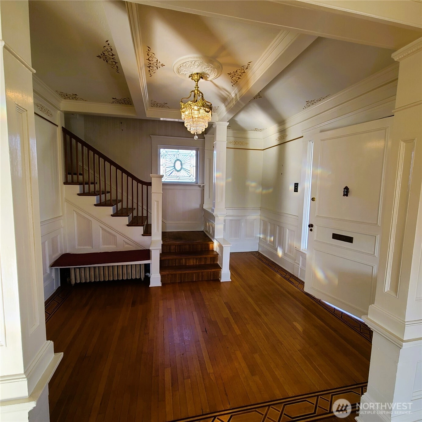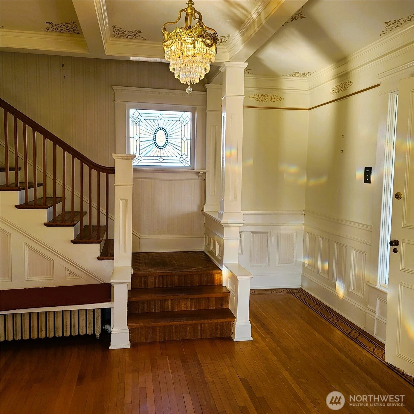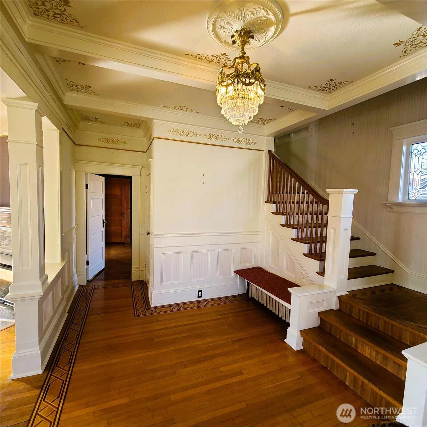 The historic Stahl home! One of the most handsome examples of a "Free Classic form of late Queen Anne architecture" in the Edison District of Centralia. Beautifully sited on a large corner lot with additional alley access. Detached 1 car carriage garage with room above, and a pellet stove. This one is screaming for a fresh loving touch. 5 Bedroom, 2.5 baths, 3rd Story bonus flex space. The remaining vintage details are simply amazing. Gas fired radiant heat w/ a pellet fired backup. Beams, leaded glass, inlayed hardwoods. Its all here! Just blocks to everything downtown Centralia. Easy I-5 access North and South.