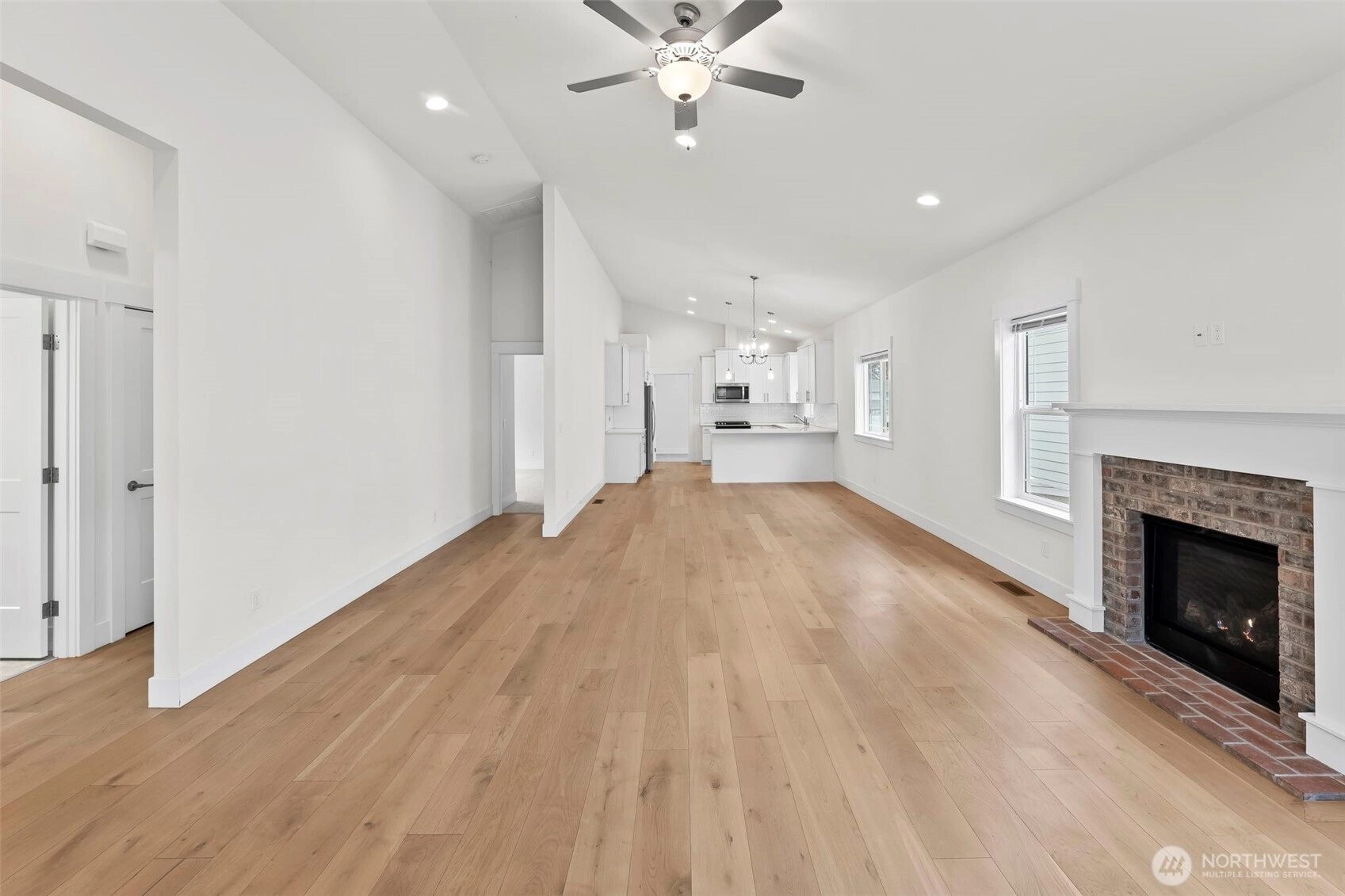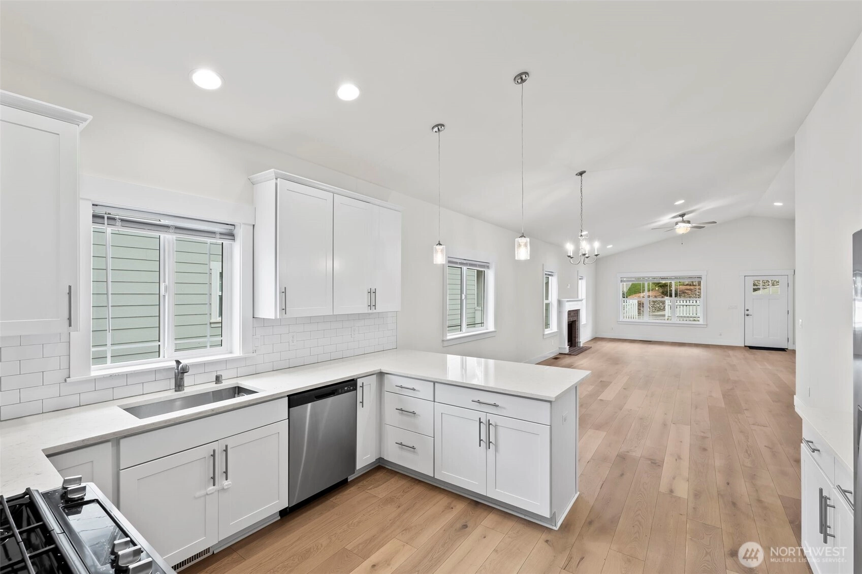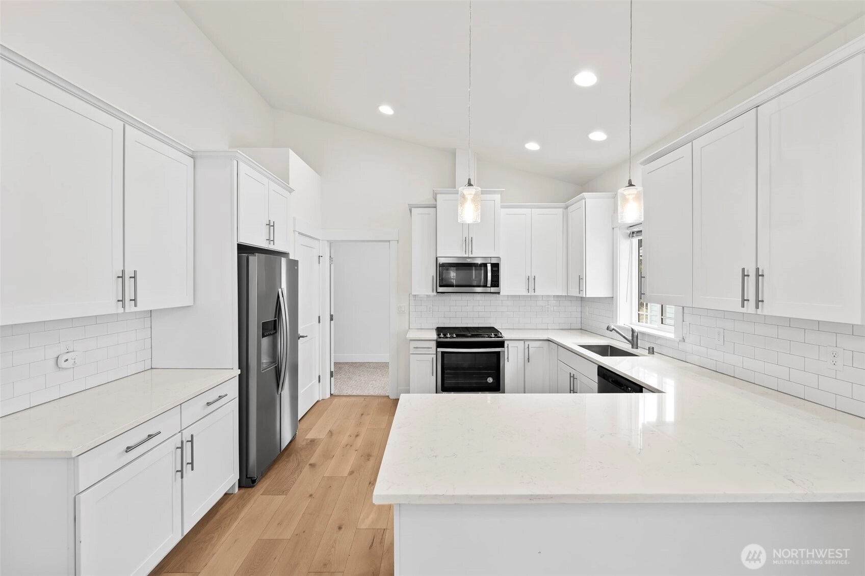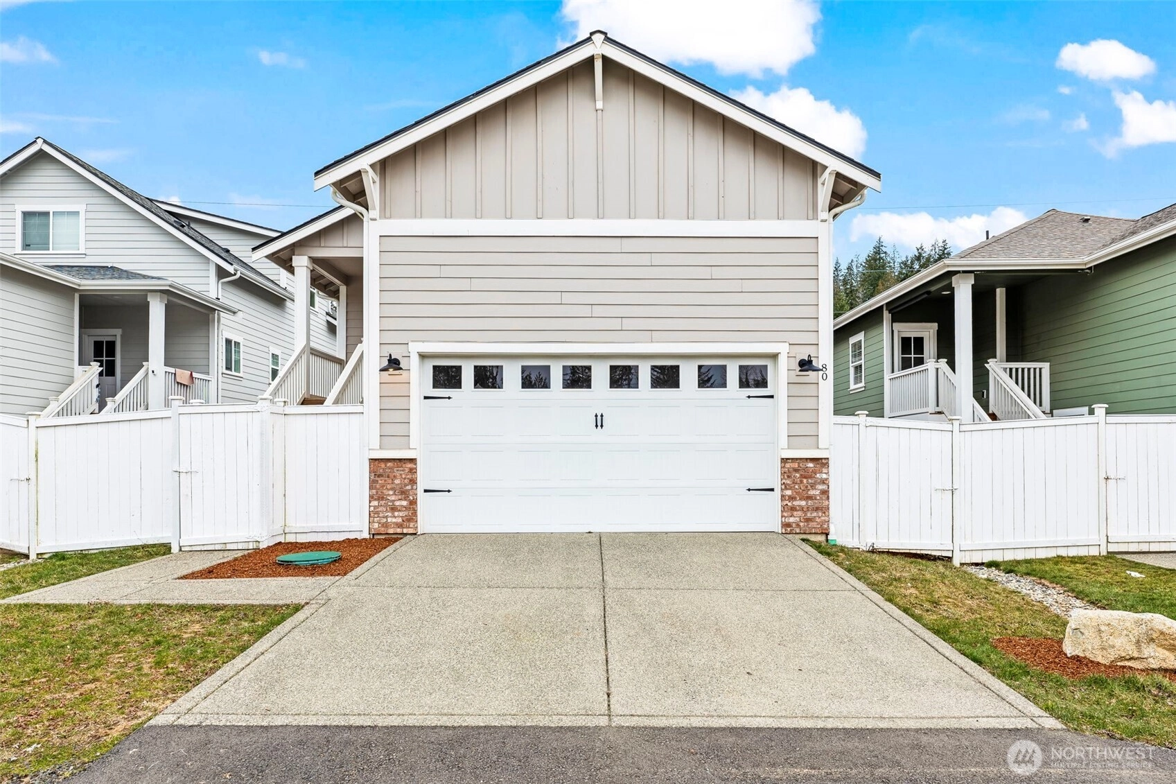 Preferred lender offering 5%-5.9% rates for this home! This beautifully crafted one-level home features an inviting open-concept design, cozy fireplace, & vaulted ceilings, offering the perfect blend of comfort & style. The bright & airy kitchen boasts quartz countertops, stainless steel appliances, & crisp white cabinetry. With 3 spacious bedrooms, the primary suite is a retreat of its own—complete with a walk-in closet & luxurious 5-piece bath featuring an oversized shower & quartz countertops. Enjoy year-round outdoor living on the front & rear covered porches, while the fully fenced & landscaped yard provides privacy & charm. A double-car garage adds convenience, all located seconds from Lakeland Village golf course, and boat launch!