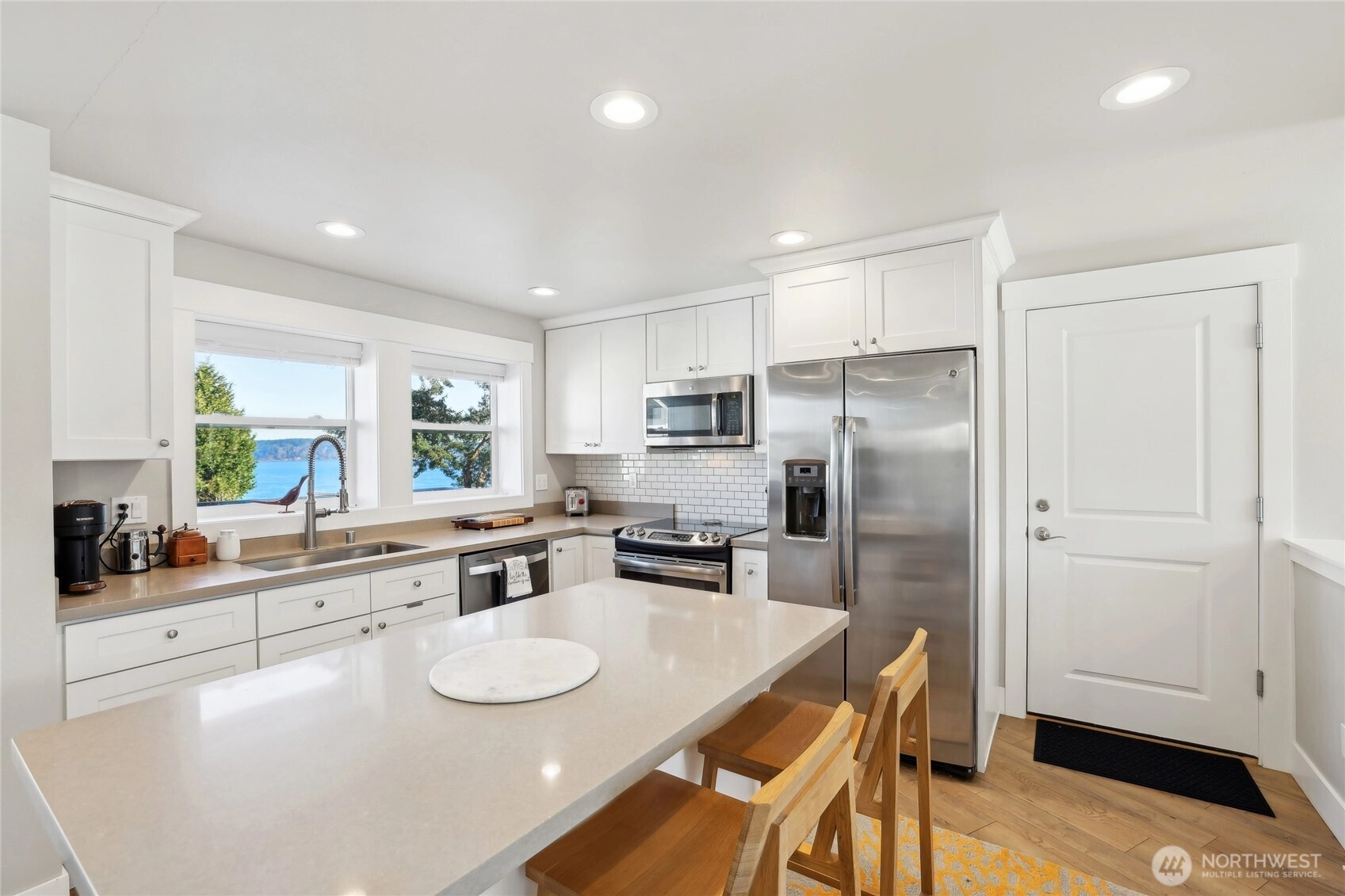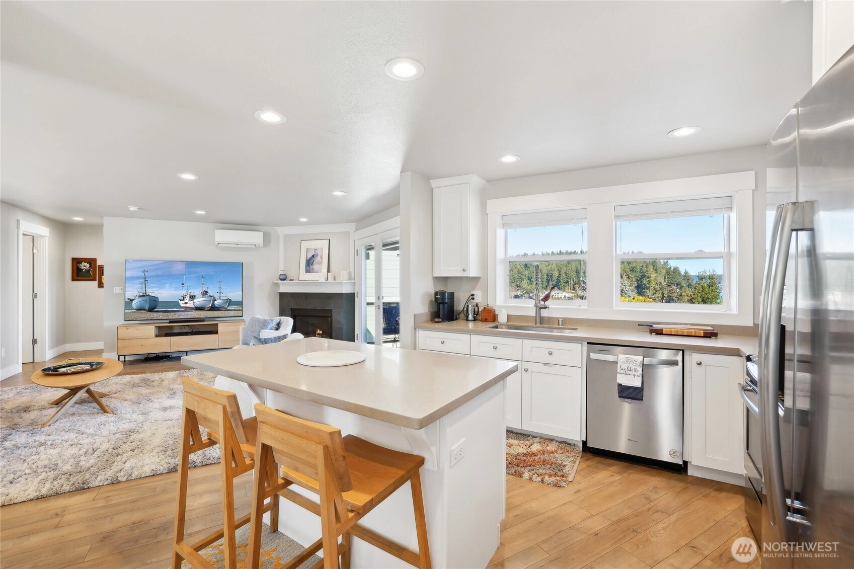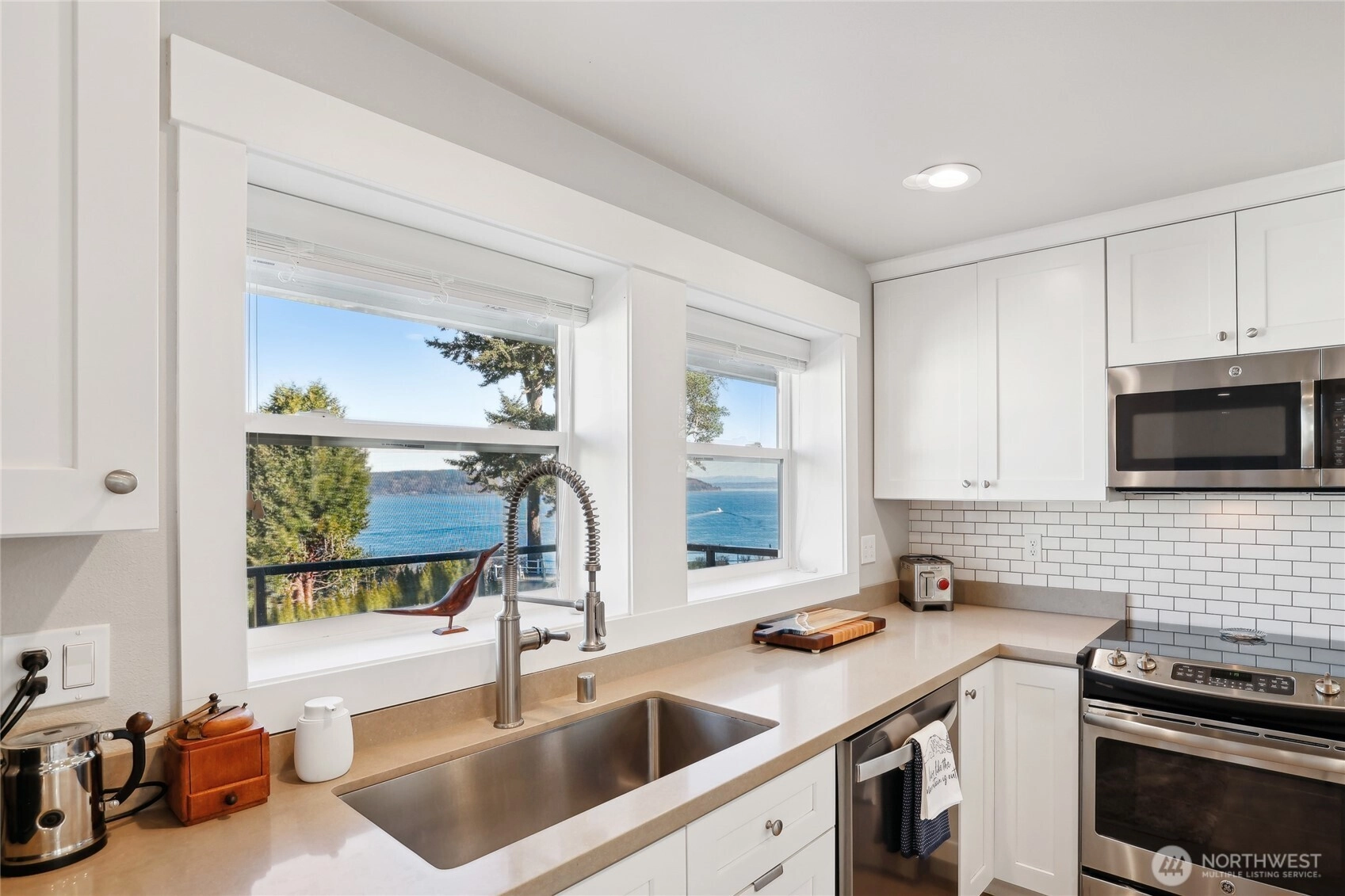 Not ready to sell but want easy living with a spectacular view! Seller is willing to carry 3 year owner financing, 5% interest with 20% down. Welcome to this rare, downtown Gig Harbor condo with panoramic views, private deck & impeccable common grounds. Breathtaking views greet you as you enter & carry throughout. Stunning kitchen opens to living room with cozy gas fireplace. The French doors beckon to be open to take in the water views of Vashon Ferry, fishing boats & wildlife, as well as the Cascades & Gig Harbor Bay. Entertain your guest at the outdoor kitchen while you sit by the fire & watch the sunset cast over the Lighthouse Sandspit. Enjoy the sunrise over Mt Rainier. Stroll downtown & enjoy all of the local shops & dining.