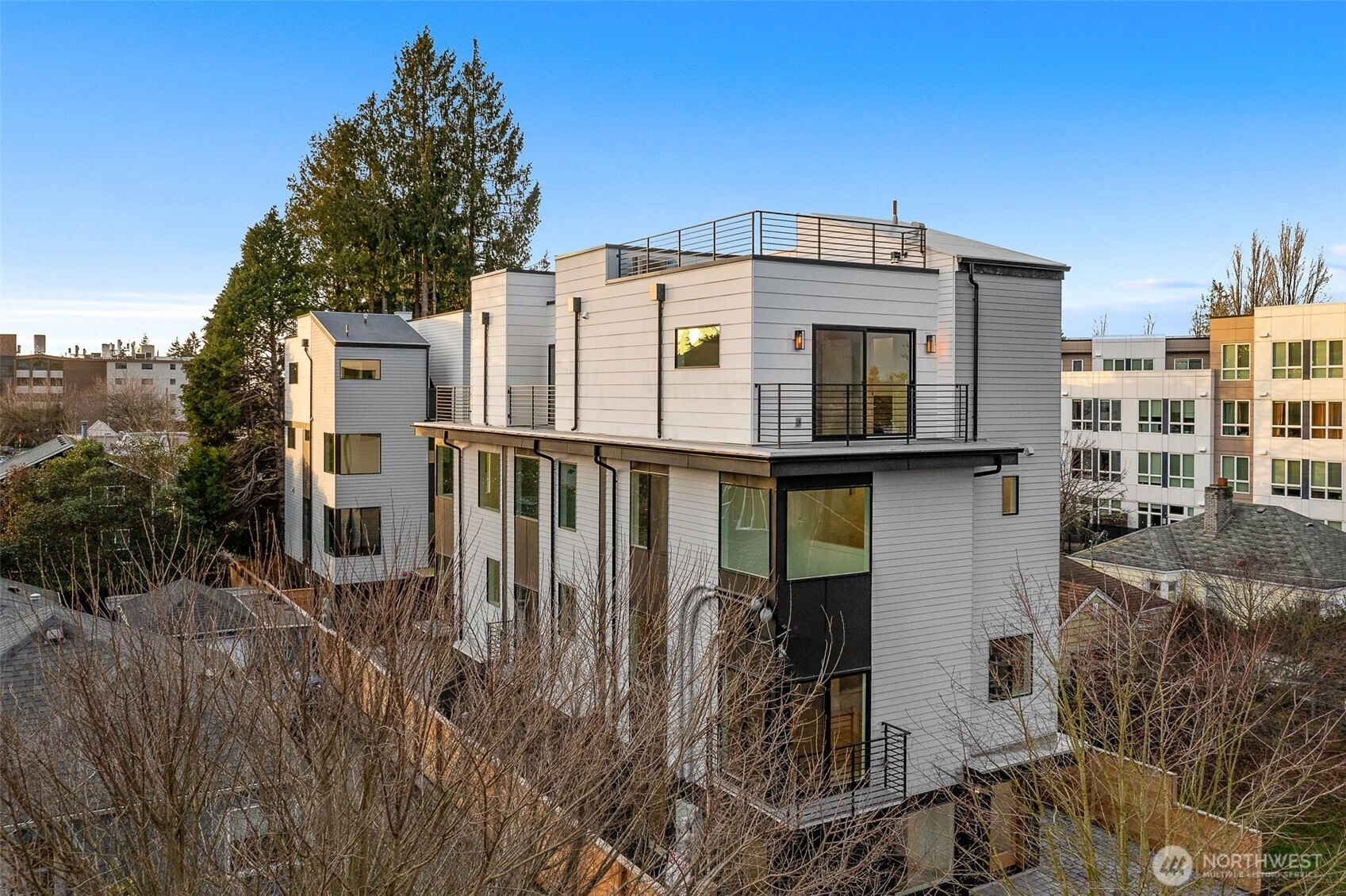 Veridian by Greencity Homes is now MOVE-IN READY! This thoughtfully designed home features 4 bedrooms + flex space, and a range of premium amenities incl. EV-CAPABLE PARKING and rare yard space for you or your furry friend! An airy, open living level is ideal for entertaining, offering a deck off the kitchen for convenient BBQ, quartz countertops, SS appliances, local custom cabinetry and a glass-wrapped staircase. Set before the entertaining-sized roof deck, the pristine primary boasts a 4-piece bath, spacious walk-in closet and deck, while one of the three guest rooms is conveniently located on the adjacent floor. Everything you need is within reach with the brand-new Met Market, delightful dining & parks just moments away.
