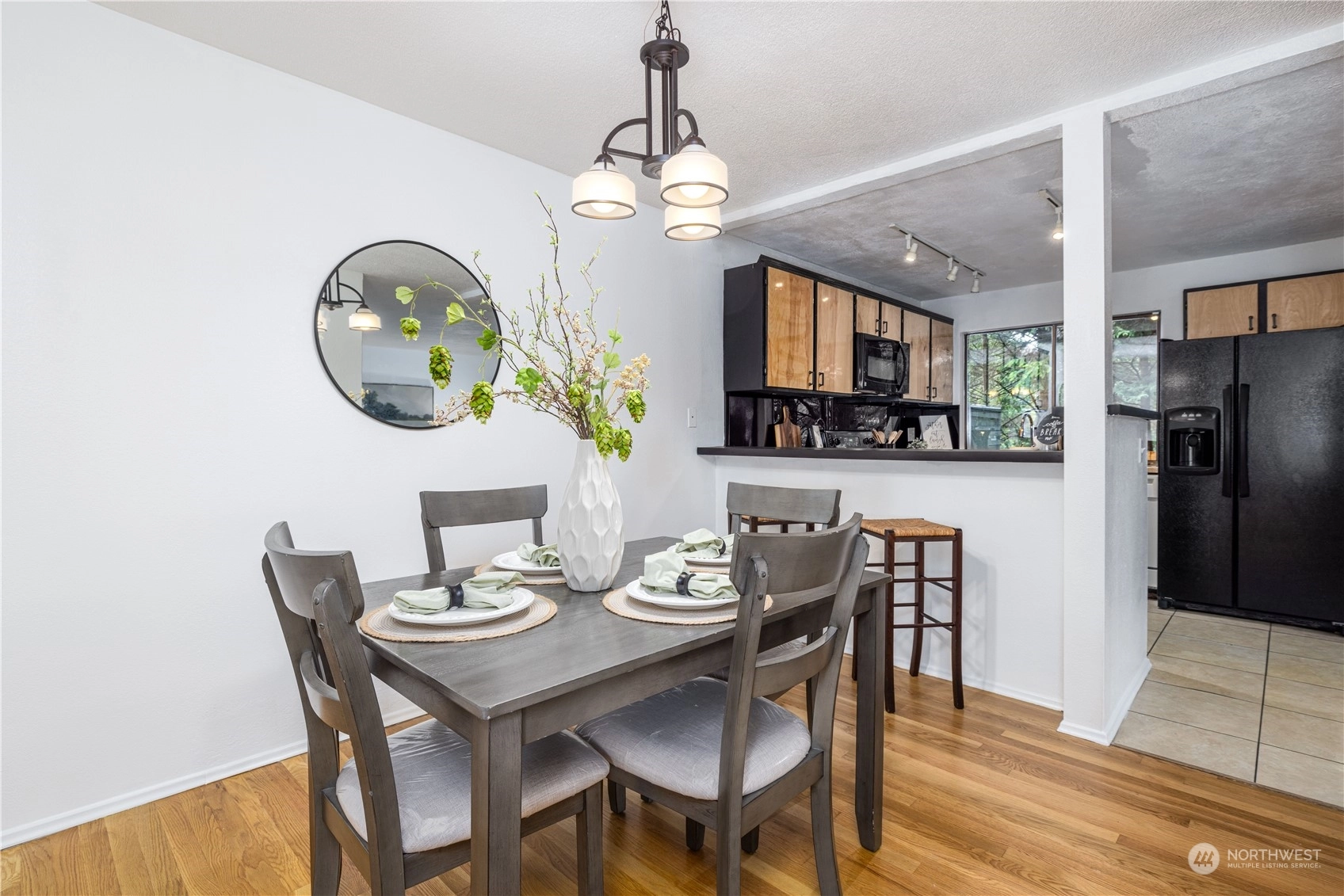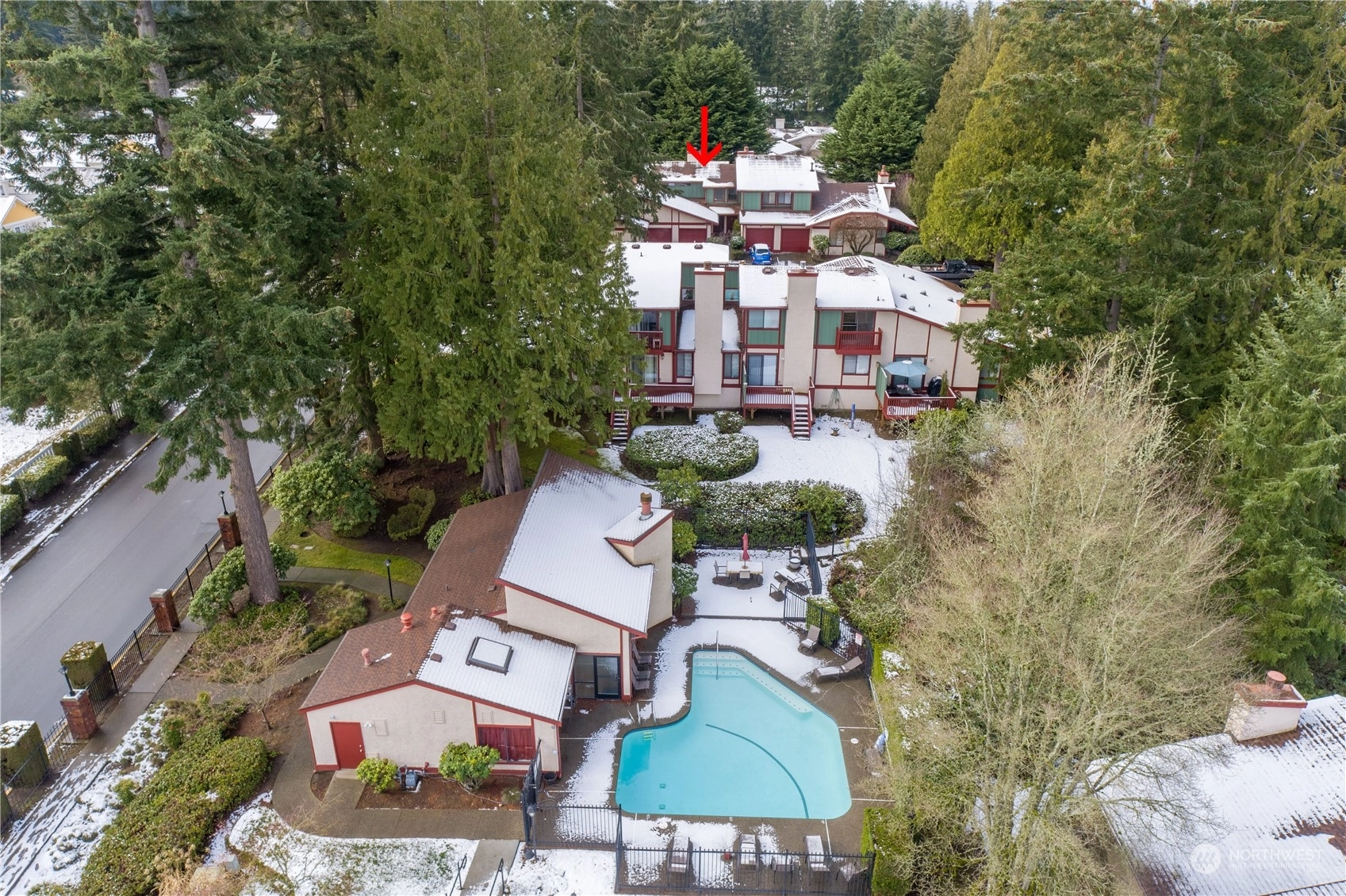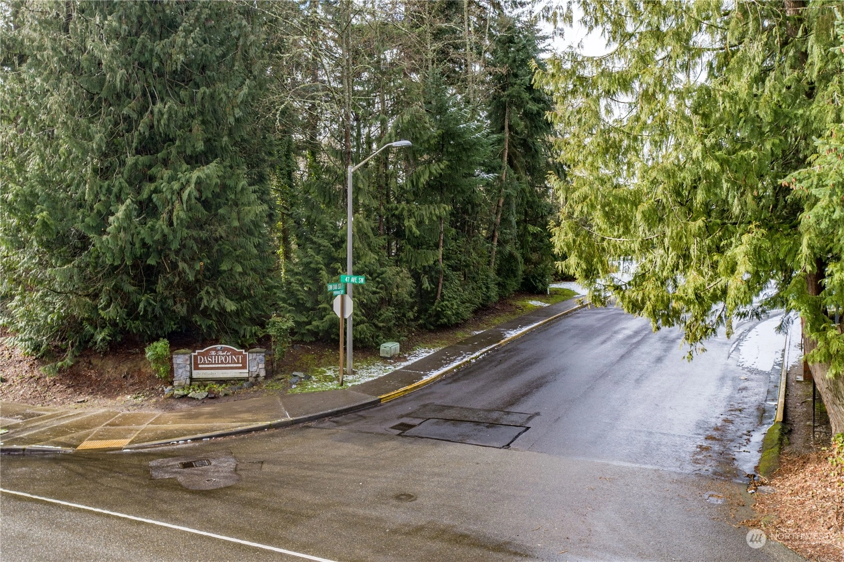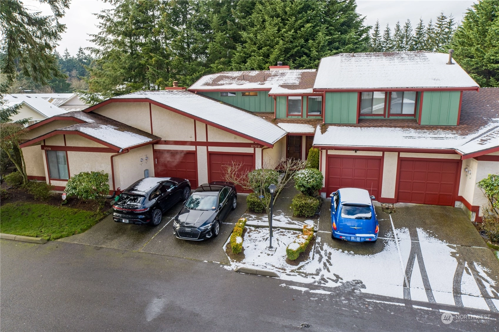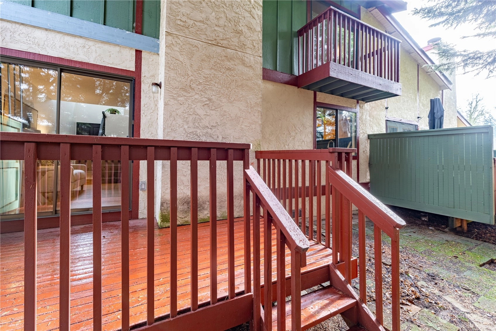 The Smoketree condominium community is nestled in the trees near Dash Point State Park in Federal Way. Entryway has towering ceilings & leads into a spacious living area with open floorplan, hardwood oak flooring, and a stylish fireplace just waiting to be lit. Cool, black accents make this condo modern and inviting. Open kitchen and large dining area and 1/2 bath complete the main floor. Sliding door leads out to a secluded deck & patio area. Upstairs find 2 bedrooms & 2 bathrooms. The Primary has high ceilings & a sliding patio door & deck, & the Primary bathroom has enlarged shower & wide counter w/ 2 sinks. Amenities include cabana available to residents to reserve and clean pool for summer days. Building has new roof & exterior paint.