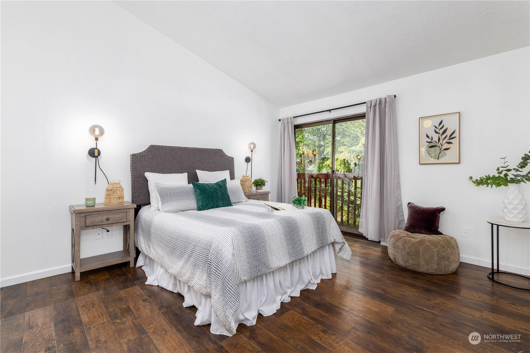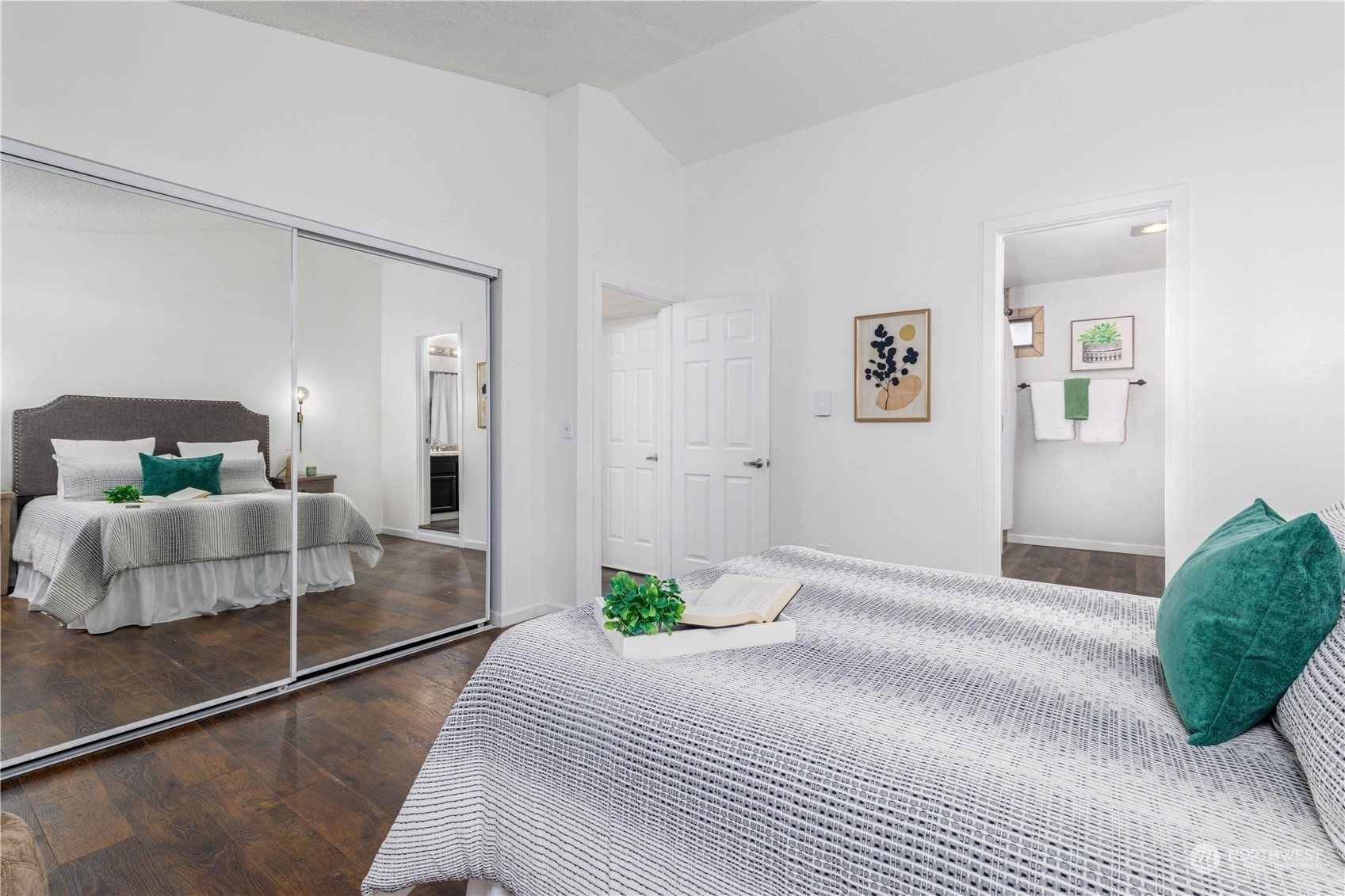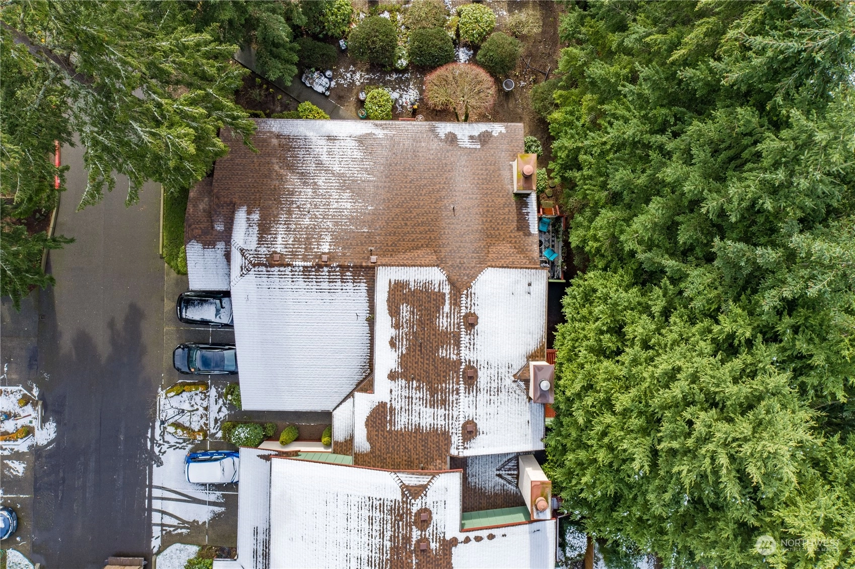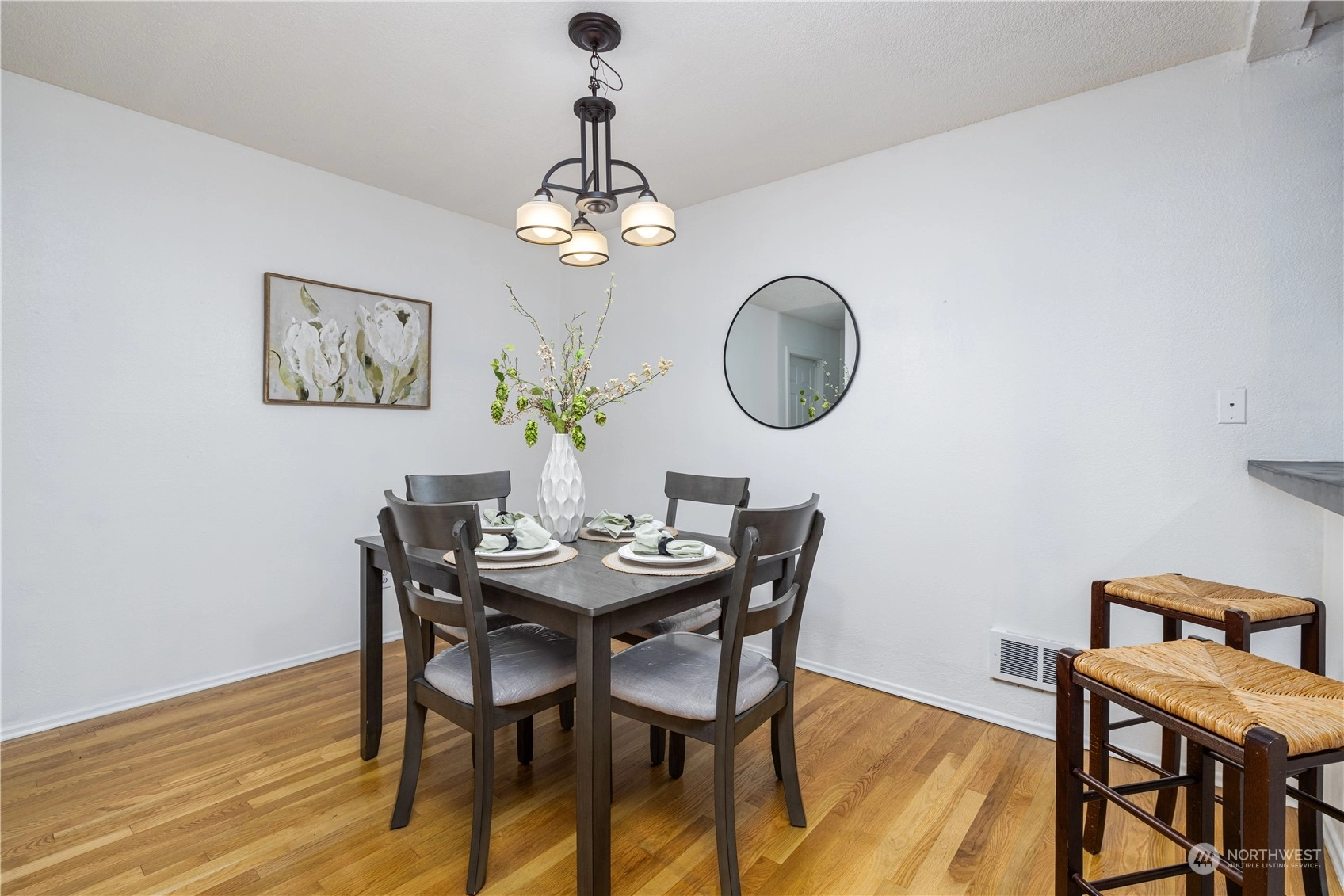 The Smoketree condominium community is nestled in the trees near Dash Point State Park in Federal Way. Entryway has towering ceilings & leads into a spacious living area with open floorplan, hardwood oak flooring, and a stylish fireplace just waiting to be lit. Cool, black accents make this condo modern and inviting. Open kitchen and large dining area and 1/2 bath complete the main floor. Sliding door leads out to a secluded deck & patio area. Upstairs find 2 bedrooms & 2 bathrooms. The Primary has high ceilings & a sliding patio door & deck, & the Primary bathroom has enlarged shower & wide counter w/ 2 sinks. Amenities include cabana available to residents to reserve and clean pool for summer days. Building has new roof & exterior paint.