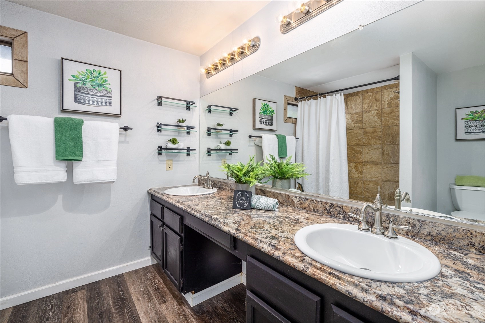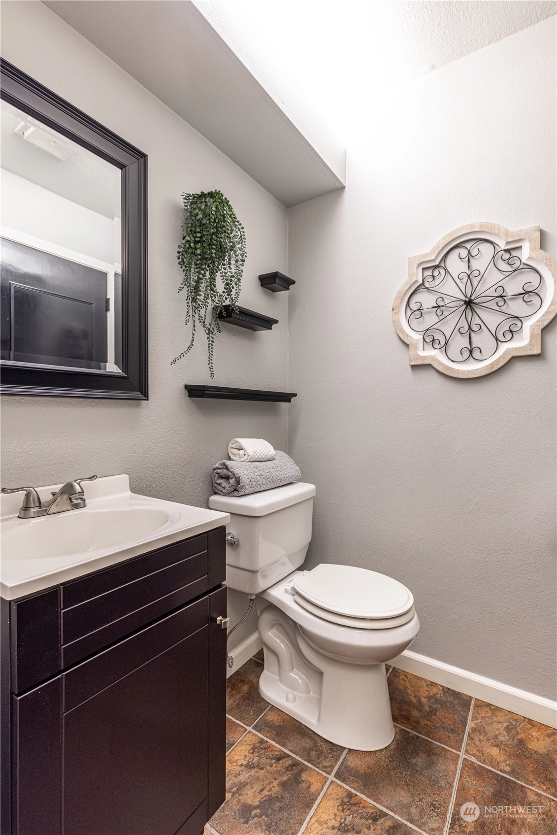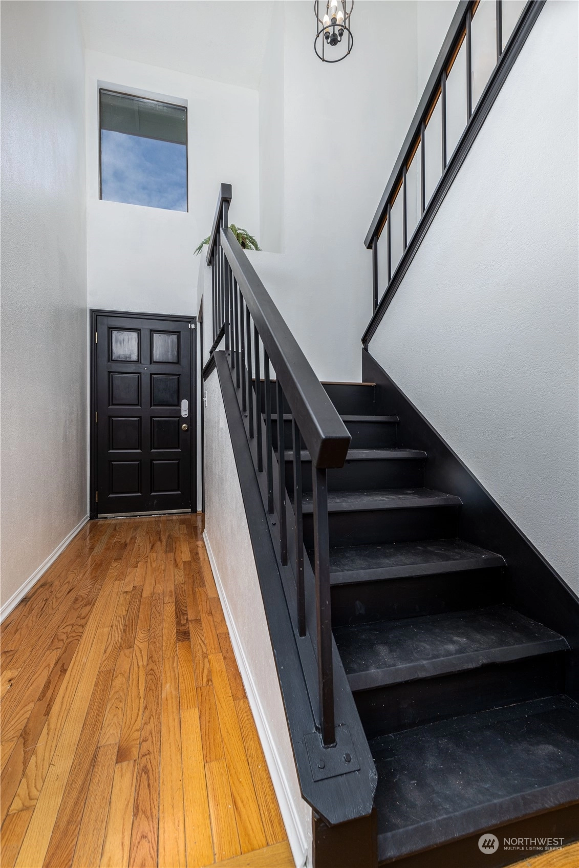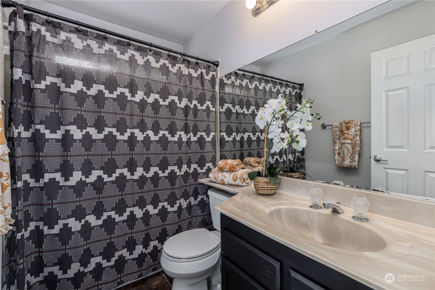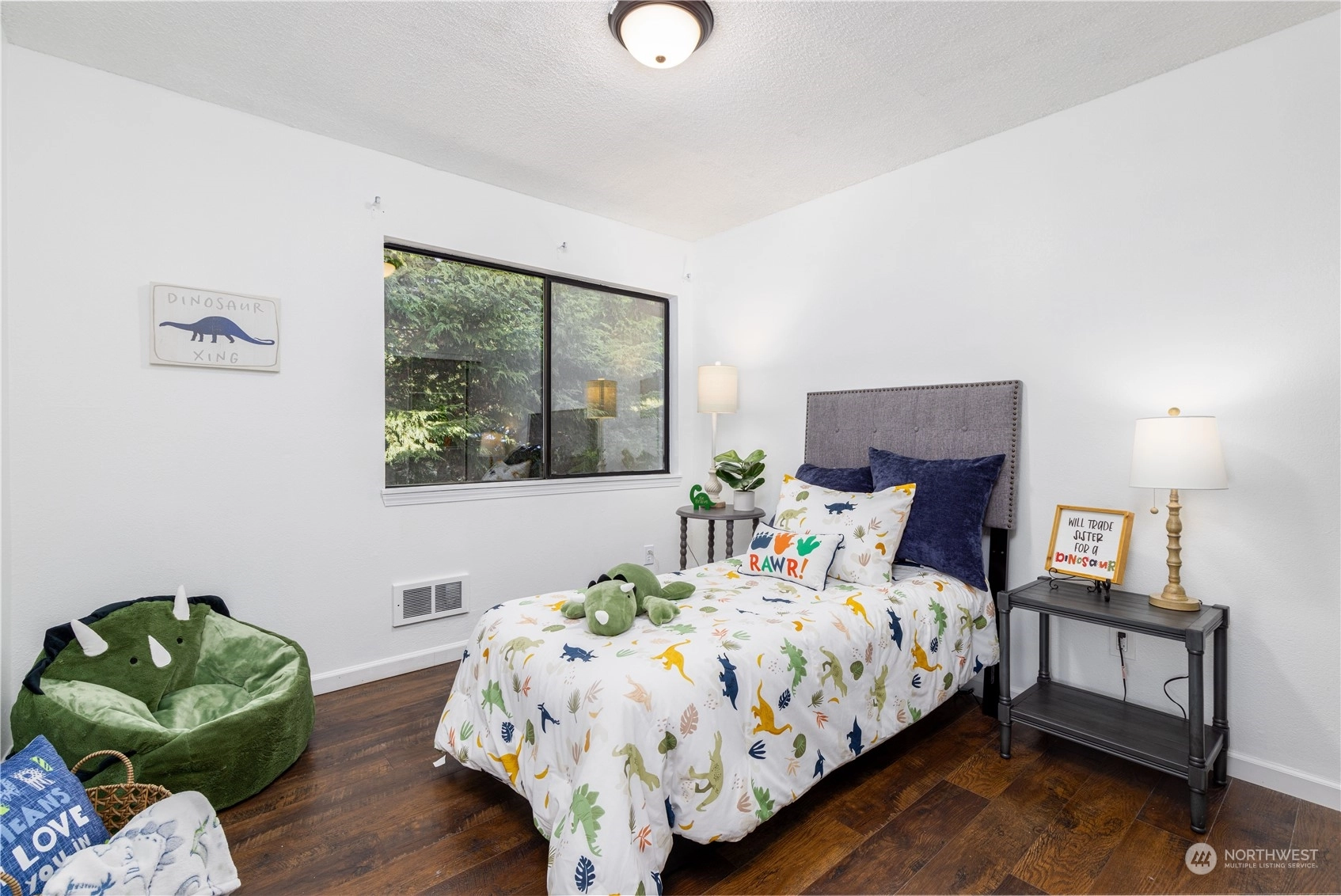 The Smoketree condominium community is nestled in the trees near Dash Point State Park in Federal Way. Entryway has towering ceilings & leads into a spacious living area with open floorplan, hardwood oak flooring, and a stylish fireplace just waiting to be lit. Cool, black accents make this condo modern and inviting. Open kitchen and large dining area and 1/2 bath complete the main floor. Sliding door leads out to a secluded deck & patio area. Upstairs find 2 bedrooms & 2 bathrooms. The Primary has high ceilings & a sliding patio door & deck, & the Primary bathroom has enlarged shower & wide counter w/ 2 sinks. Amenities include cabana available to residents to reserve and clean pool for summer days. Building has new roof & exterior paint.