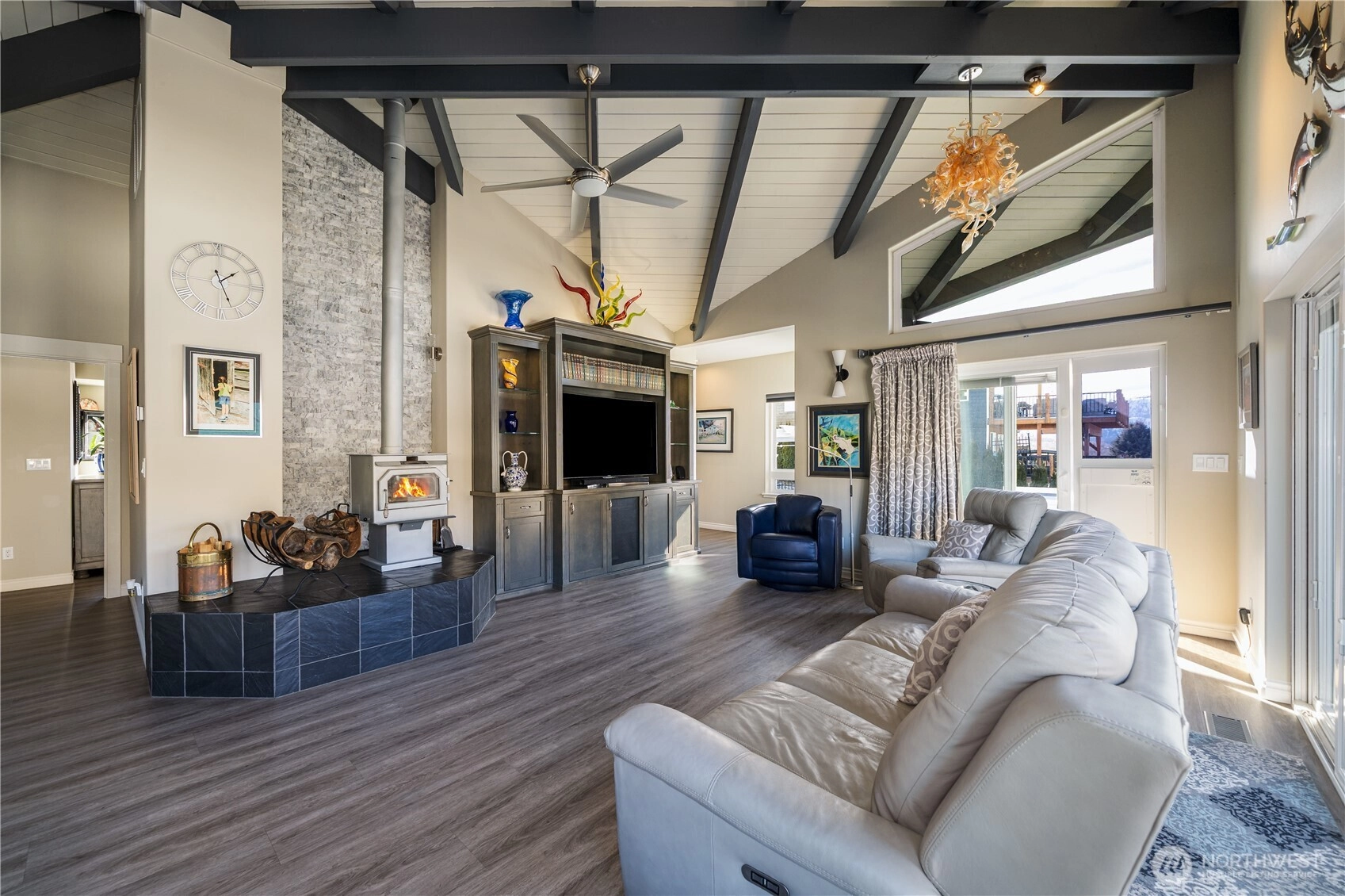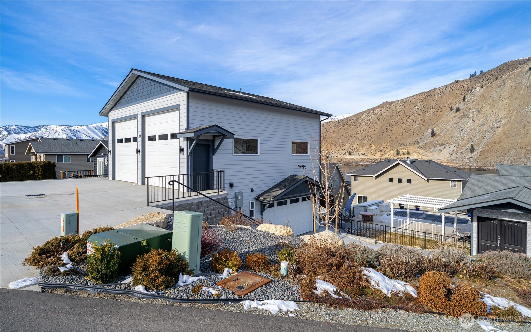 River View home on Double Lot w/tons of garage space awaits new owner. Located in Sun Cove's Comm. WF development along the Columbia River, 175 Malloy Pl. invites any recreational enthusiast who desires space for RV, boat, jet skis, & a classic car or two. Room for 7 vehicles undercover. Modern, view home with stylish kitchen, vaulted ceilings AND ADU gives you 4 bedrooms & 3.75 baths. Outside enjoy river views on the deck and patio space around the private swimming pool / hot tub this summer! Total living space w/ADU 3316 sq ft. Garage space with 1/2 bath totals 2876 sq. ft. Community amenities include marina/boat launch, community pool, park and clubhouse.