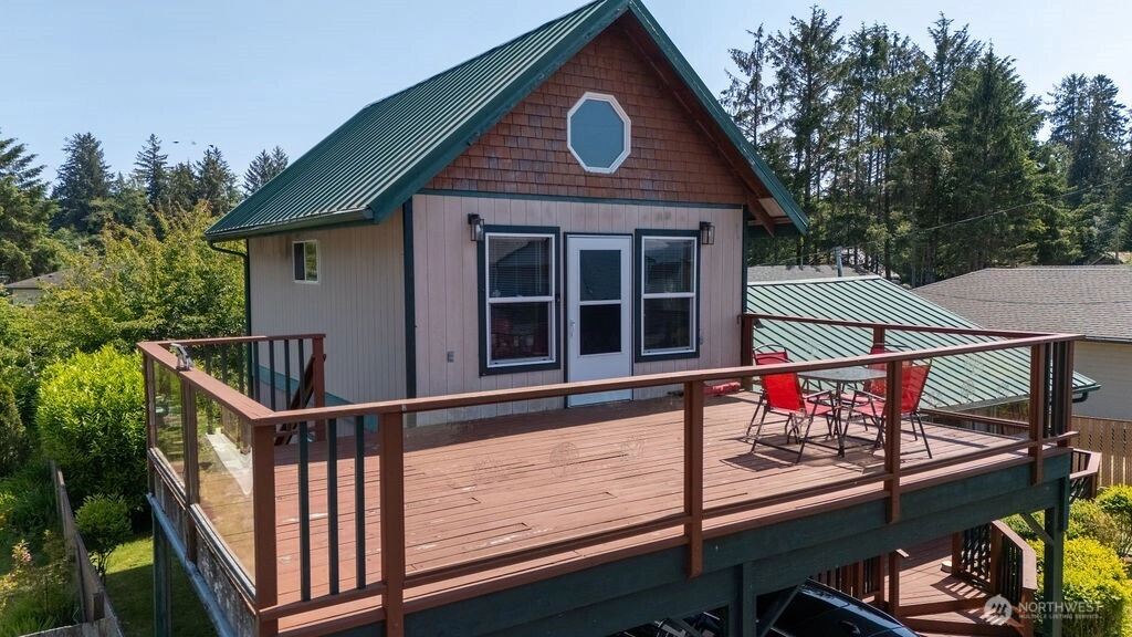 This charming two-story home offers stunning water views above the serene Straits of Juan de Fuca. A cozy 2-bedroom lofted retreat, it's perfect for nature lovers—just minutes from fishing, hiking, peaceful beaches, and beach combing. The main floor features a welcoming living room, open kitchen, main bedroom, and combined bath-laundry room for convenience. Upstairs, the bedroom/bonus room and loft open to a spacious balcony with breathtaking views. This property is ideal for a vacation getaway or income opportunity with nearby beach access.