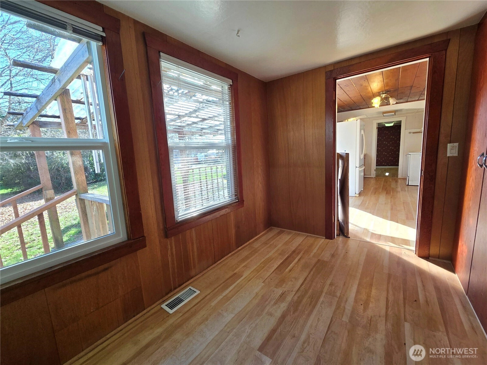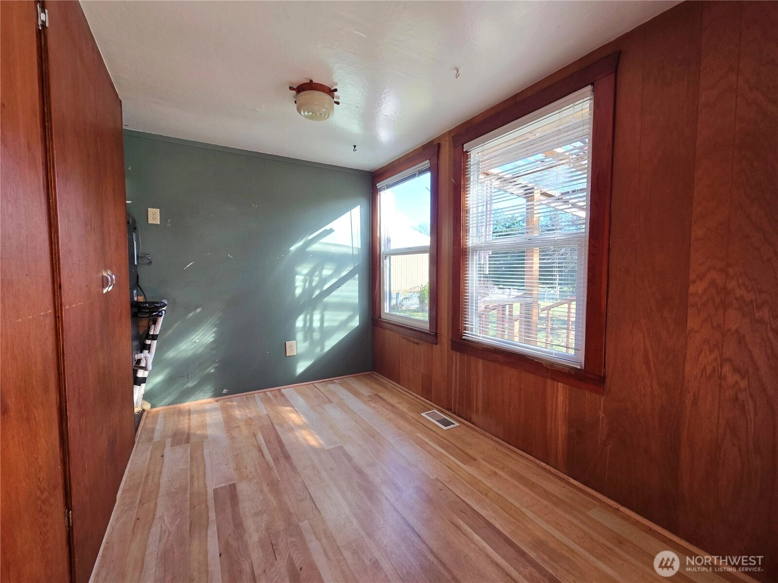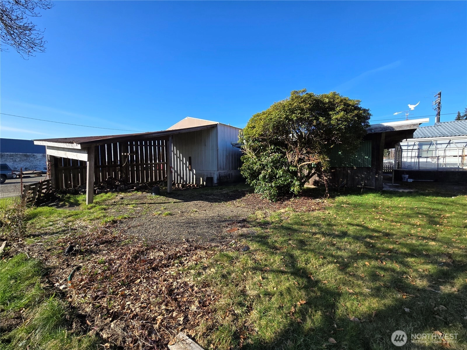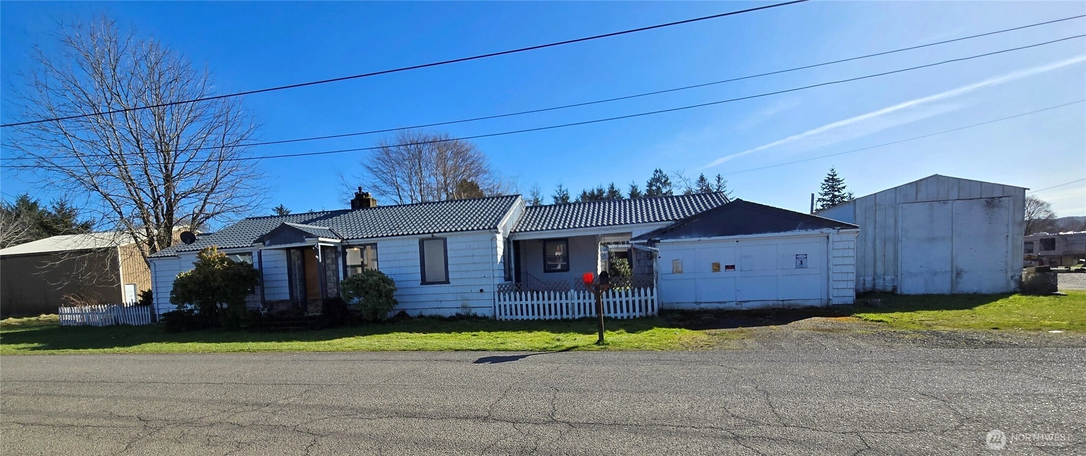 3 bedroom, 1.75 bath home on 0.46 acres features several garages and an oversized RV shop. Beautiful yard could use some TLC to bring it back to it's former glory! Large living room with oversized windows and pellet stove, kitchen with dining area offering easy access to the back yard through a sliding glass door and a large primary suite with a accessible 3/4 bathroom. The home is kept comfortable with a heat pump giving thorough heat and air conditioning. Easy access to Forks Community Hospital on this centrally located home.