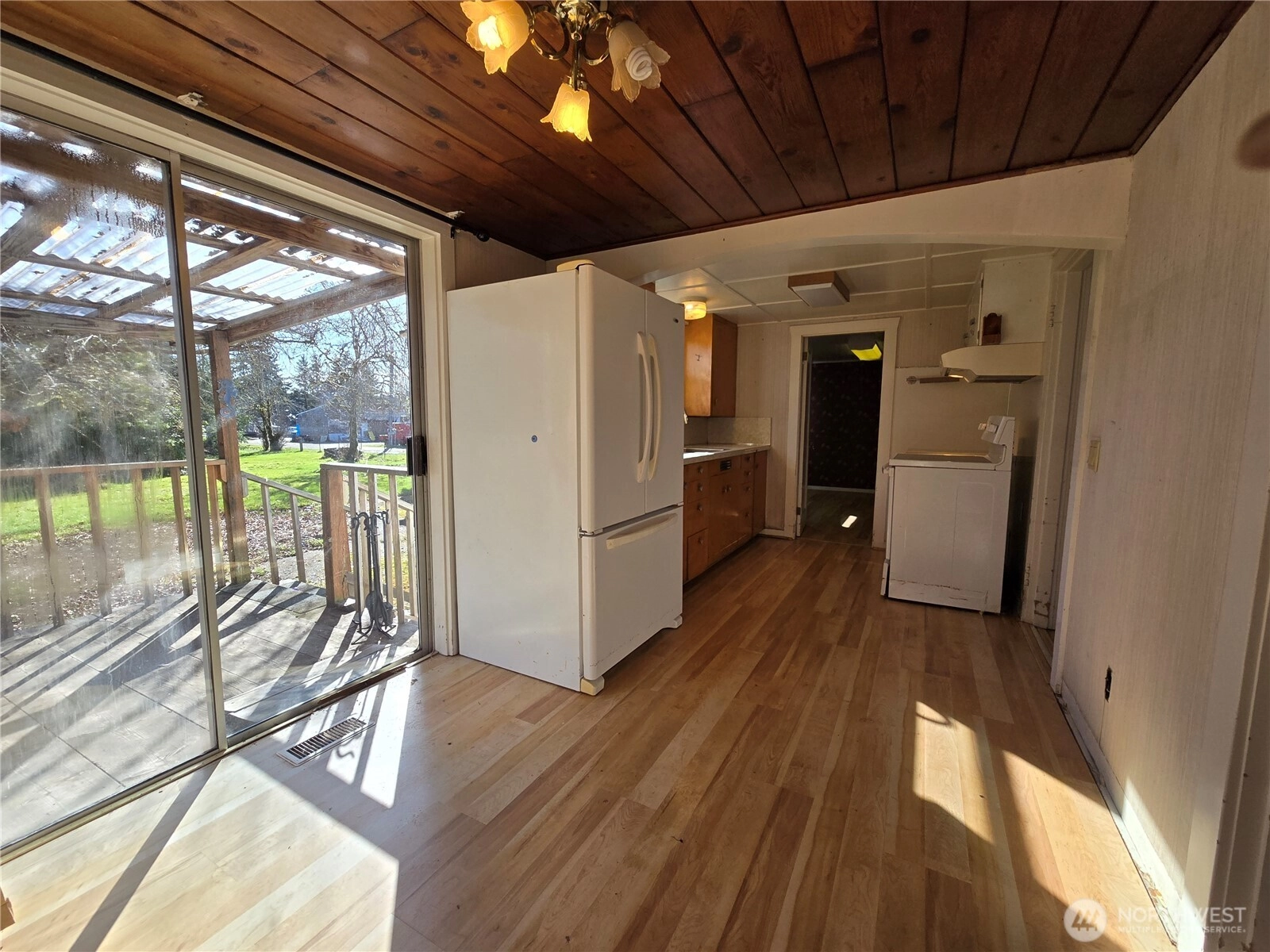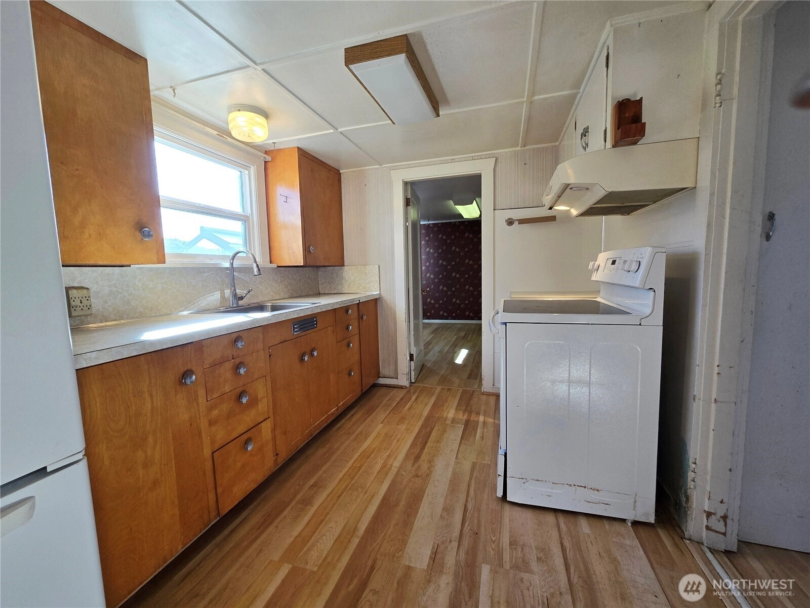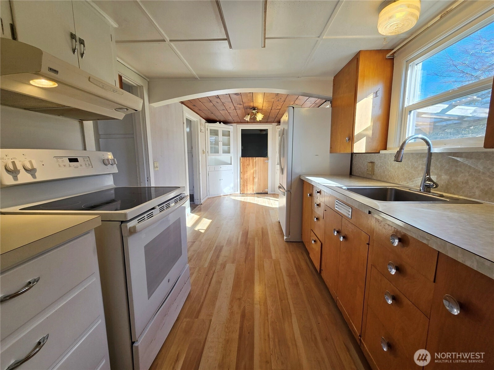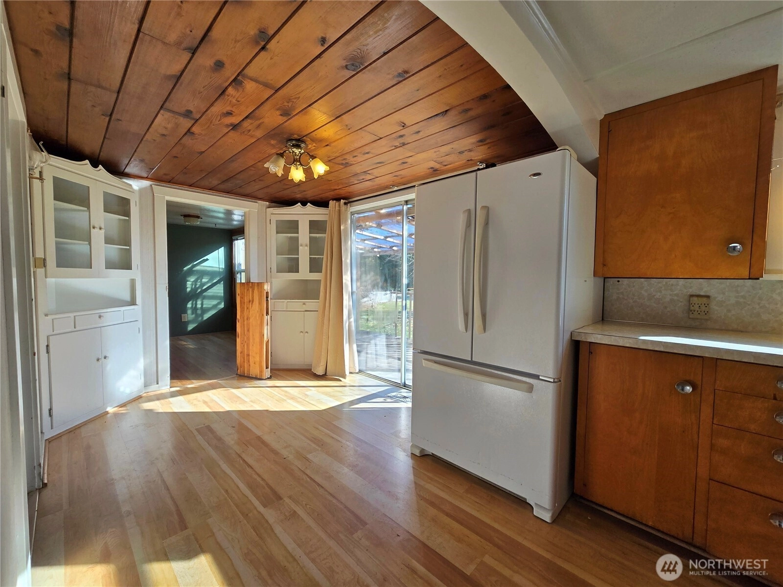 3 bedroom, 1.75 bath home on 0.46 acres features several garages and an oversized RV shop. Beautiful yard could use some TLC to bring it back to it's former glory! Large living room with oversized windows and pellet stove, kitchen with dining area offering easy access to the back yard through a sliding glass door and a large primary suite with a accessible 3/4 bathroom. The home is kept comfortable with a heat pump giving thorough heat and air conditioning. Easy access to Forks Community Hospital on this centrally located home.