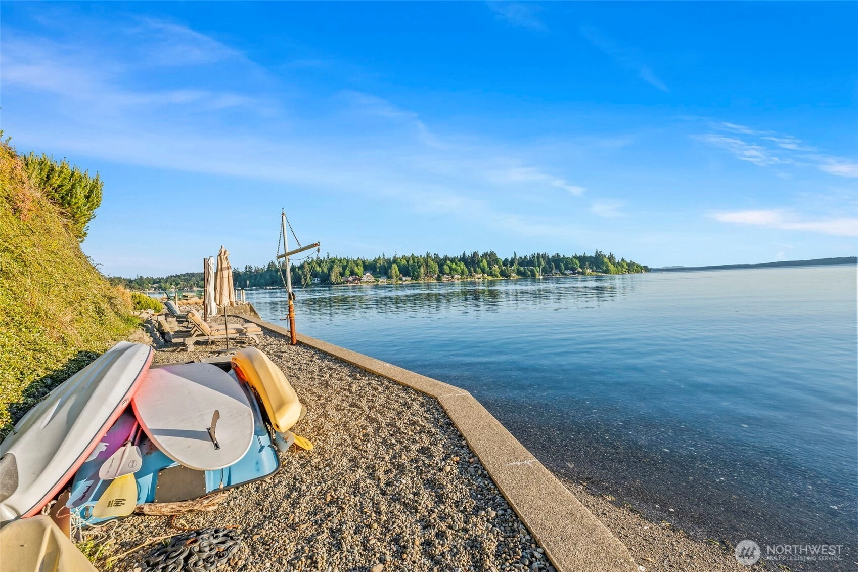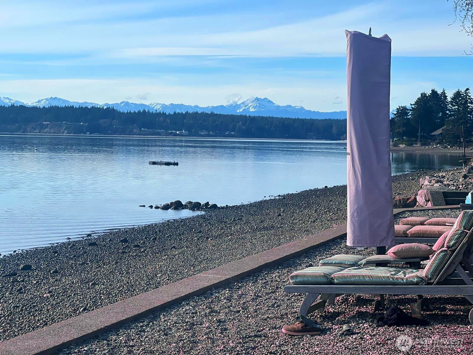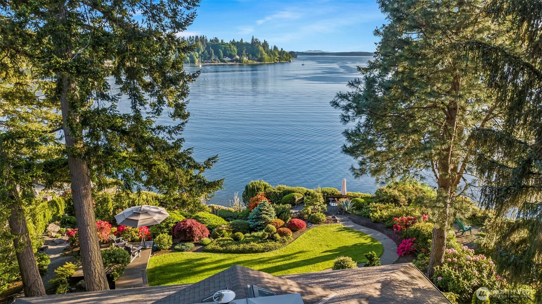 Experience breathtaking views of Henderson Bay, gorgeous sunsets, and the Olympic Mountains from this spectacular south facing Allen Point waterfront home. Offering private beach access with moorage and a spacious bulkhead sitting area with lots of room for beachfront relaxation. Beautifully landscaped with terraced walkways, private sitting areas, and a tree-lined driveway, it feels like a hidden oasis while still being close to Gig Harbor. This elegant one-level home is tastefully equipped with a gourmet designer kitchen, spacious primary suite, panoramic water views, and a large 3 car garage with EV charging. Property includes an annex with an office and rec room and parking space for your boat or RV. Don't miss this rare opportunity!