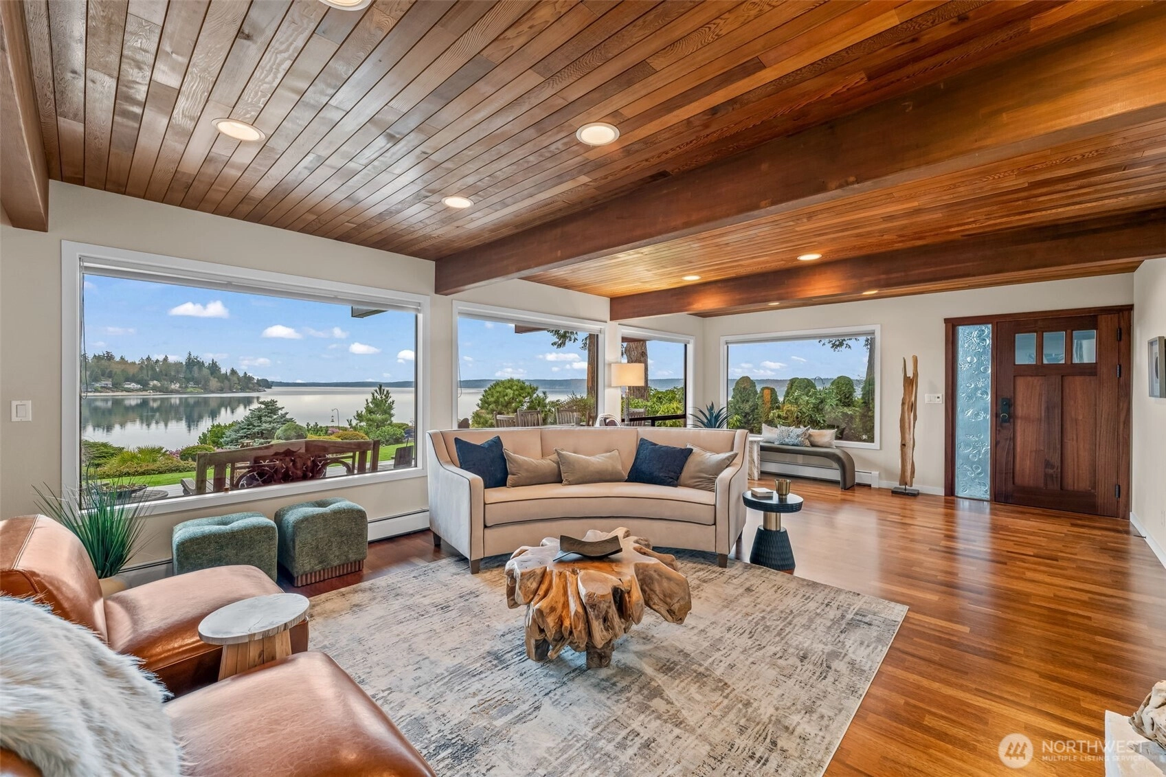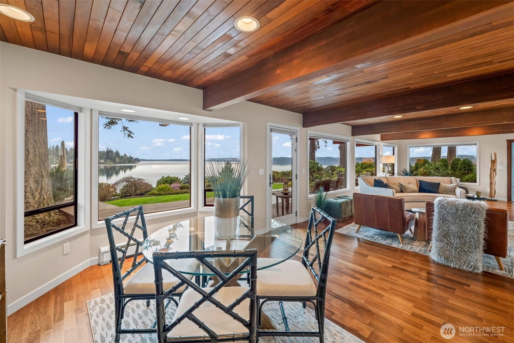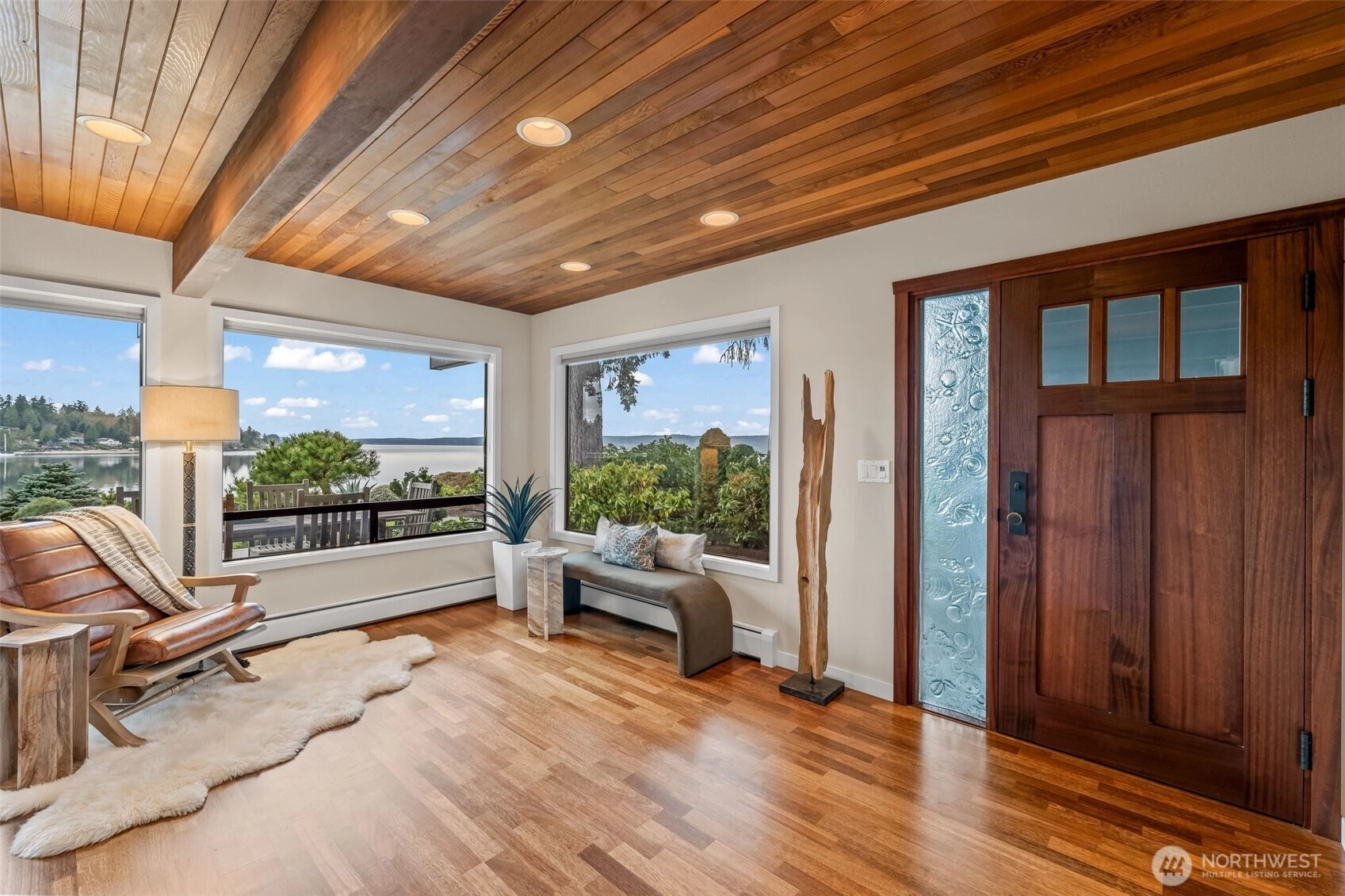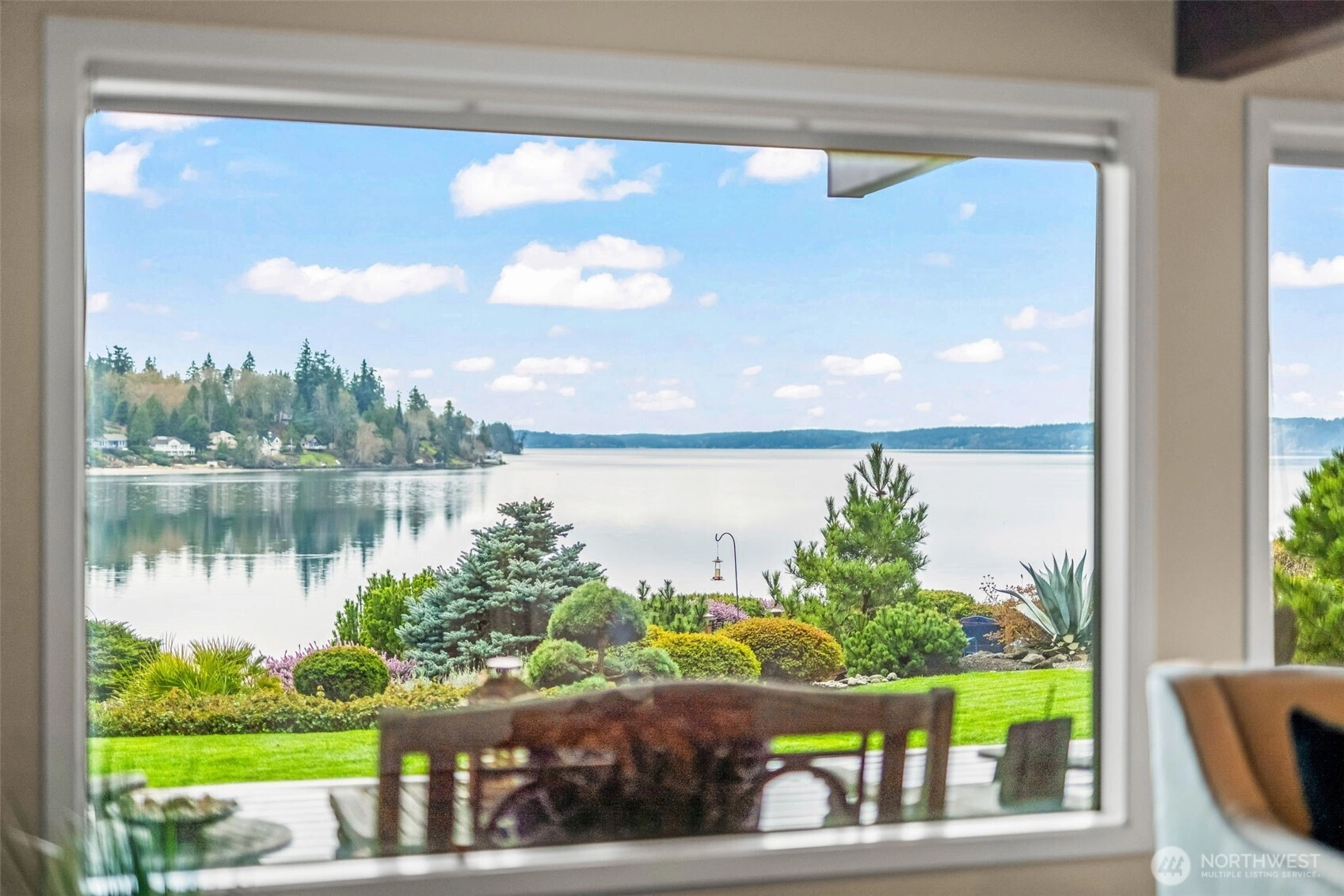 Experience breathtaking views of Henderson Bay, gorgeous sunsets, and the Olympic Mountains from this spectacular south facing Allen Point waterfront home. Offering private beach access with moorage and a spacious bulkhead sitting area with lots of room for beachfront relaxation. Beautifully landscaped with terraced walkways, private sitting areas, and a tree-lined driveway, it feels like a hidden oasis while still being close to Gig Harbor. This elegant one-level home is tastefully equipped with a gourmet designer kitchen, spacious primary suite, panoramic water views, and a large 3 car garage with EV charging. Property includes an annex with an office and rec room and parking space for your boat or RV. Don't miss this rare opportunity!