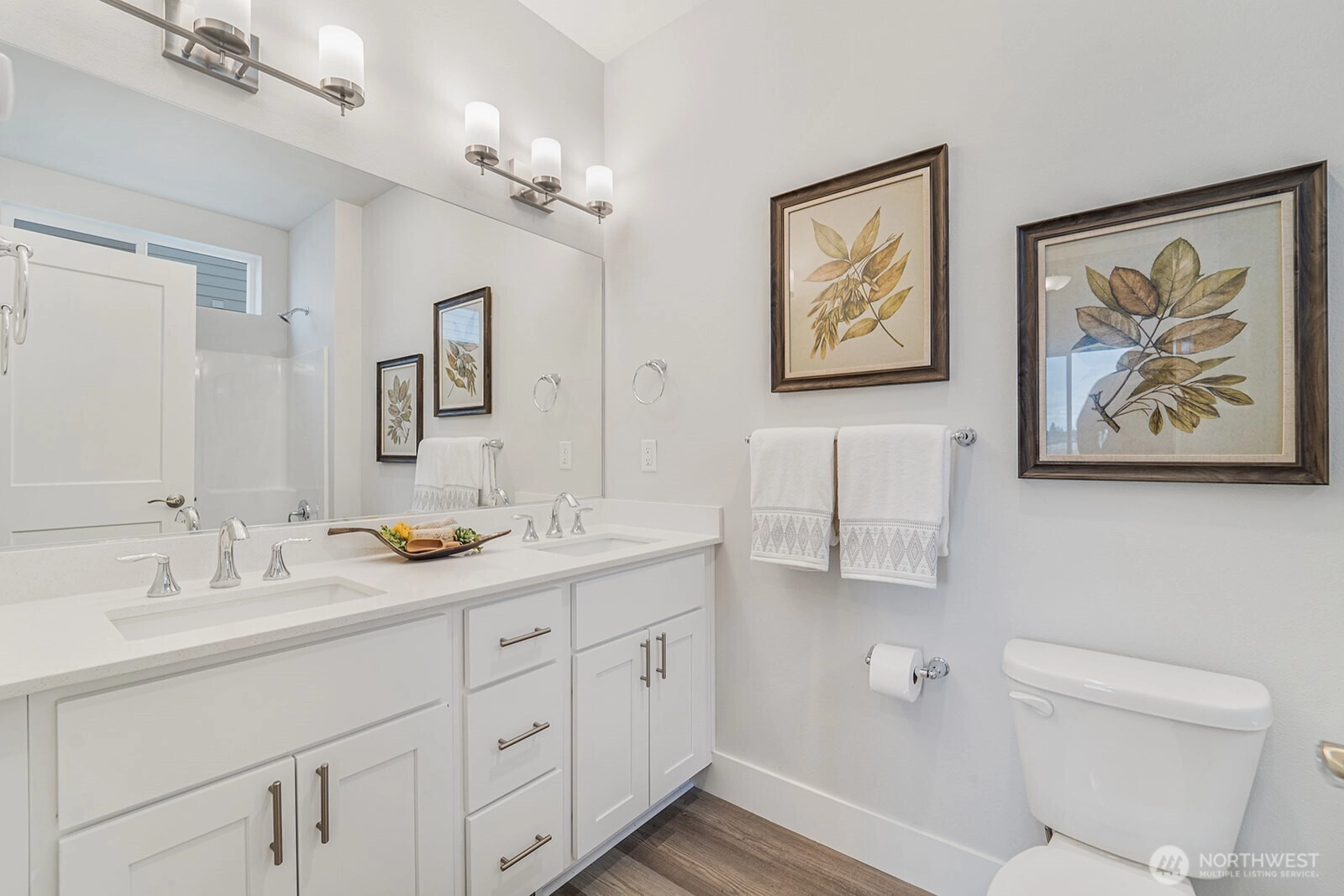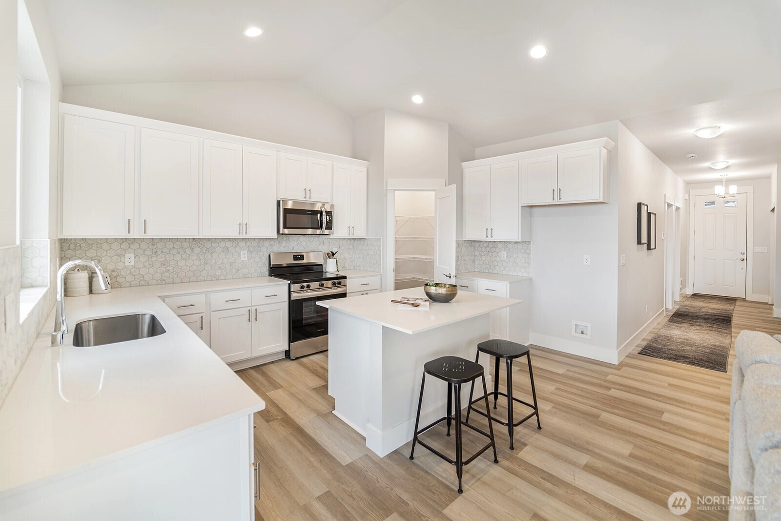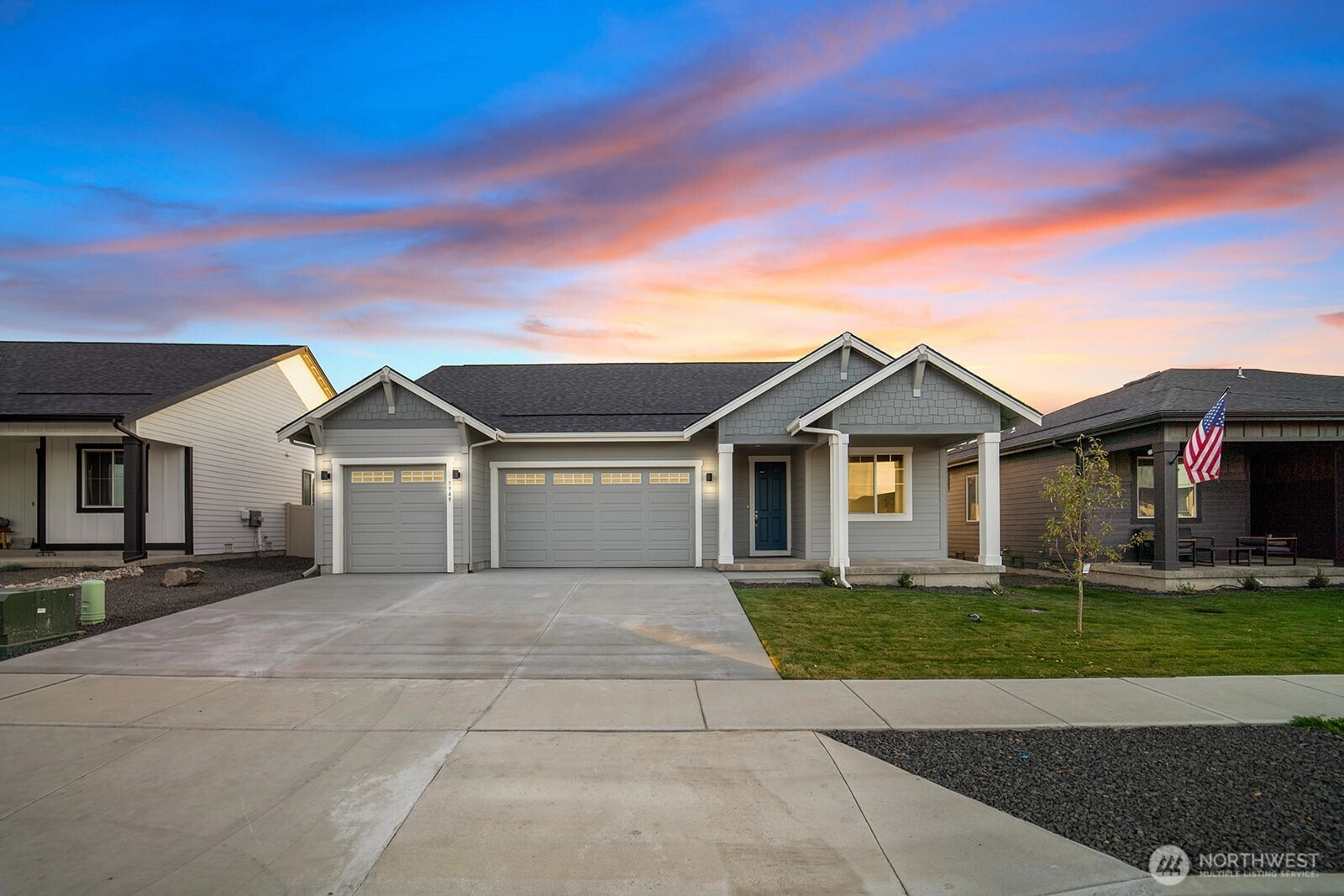 *MOVE IN READY!* Discover the Morrison by Azure Northwest Homes, where contemporary design meets practical living. This 3-bedroom, 2-bathroom home features a covered back patio, ideal for morning coffee. The great room’s lofty ceilings create an airy atmosphere, with natural light pouring through ample windows and a large double slider. The kitchen shines with exquisite countertops, an island, shaker cabinets, stainless steel appliances, and a pantry. A dedicated dining nook enhances entertaining. Outside, a professionally landscaped front yard highlights the home’s unique exterior. With a 3-car garage, the Morrison offers ample storage, blending style and functionality perfectly.