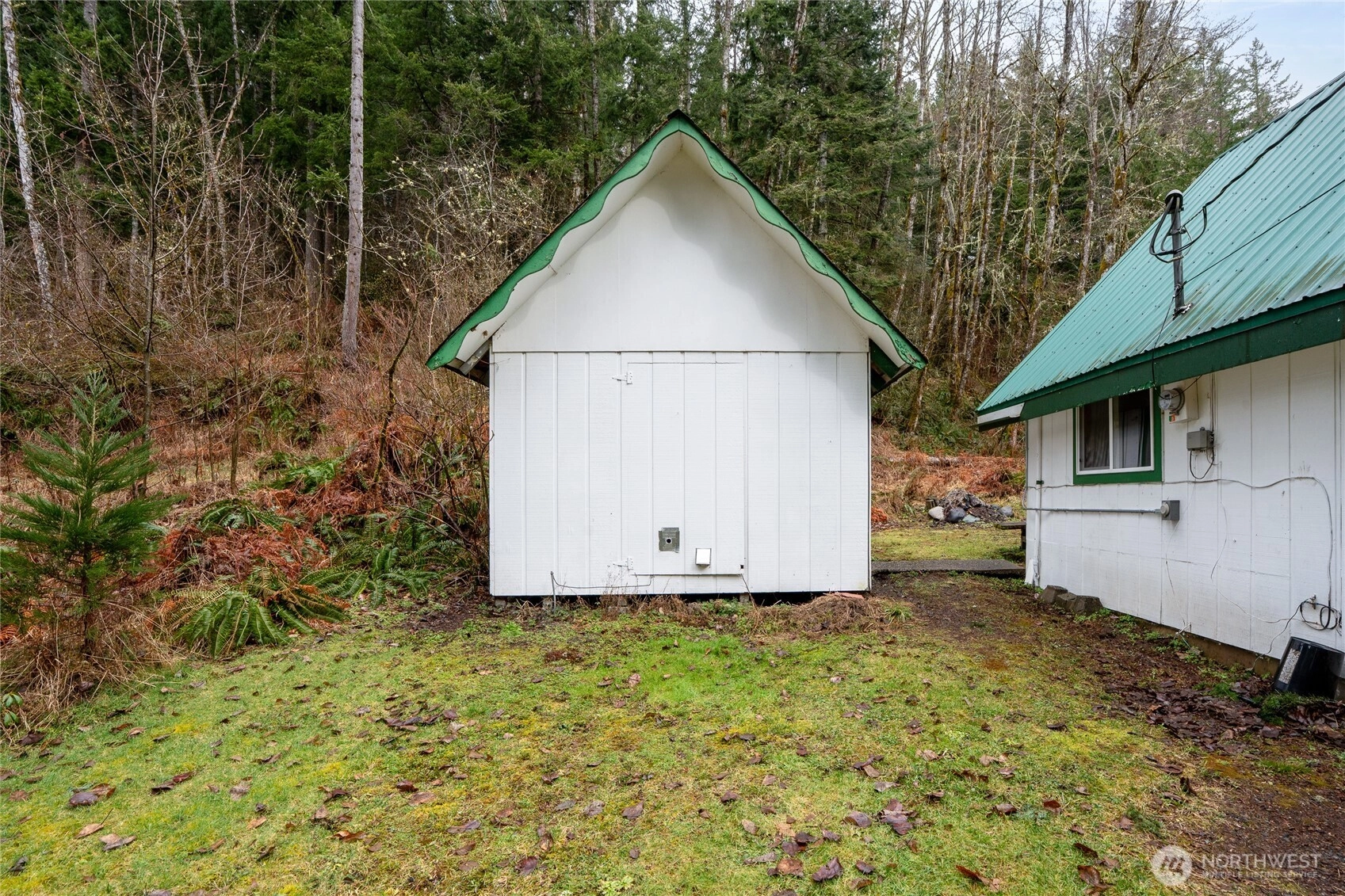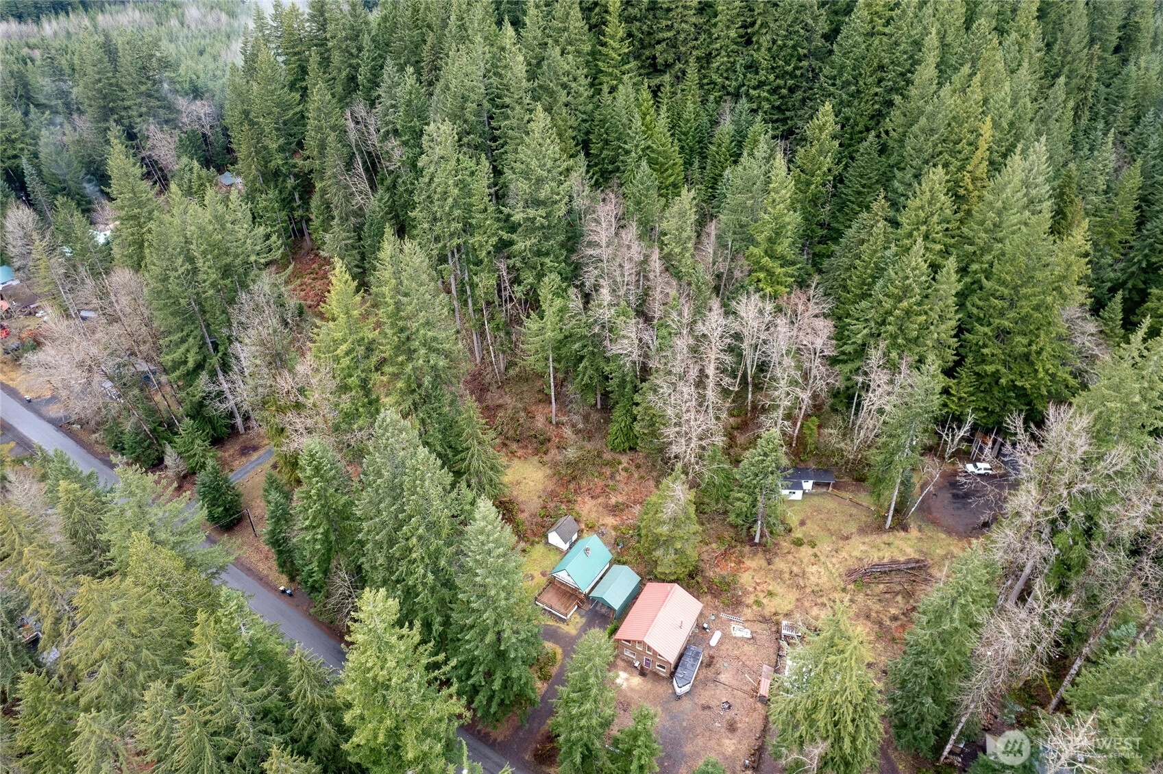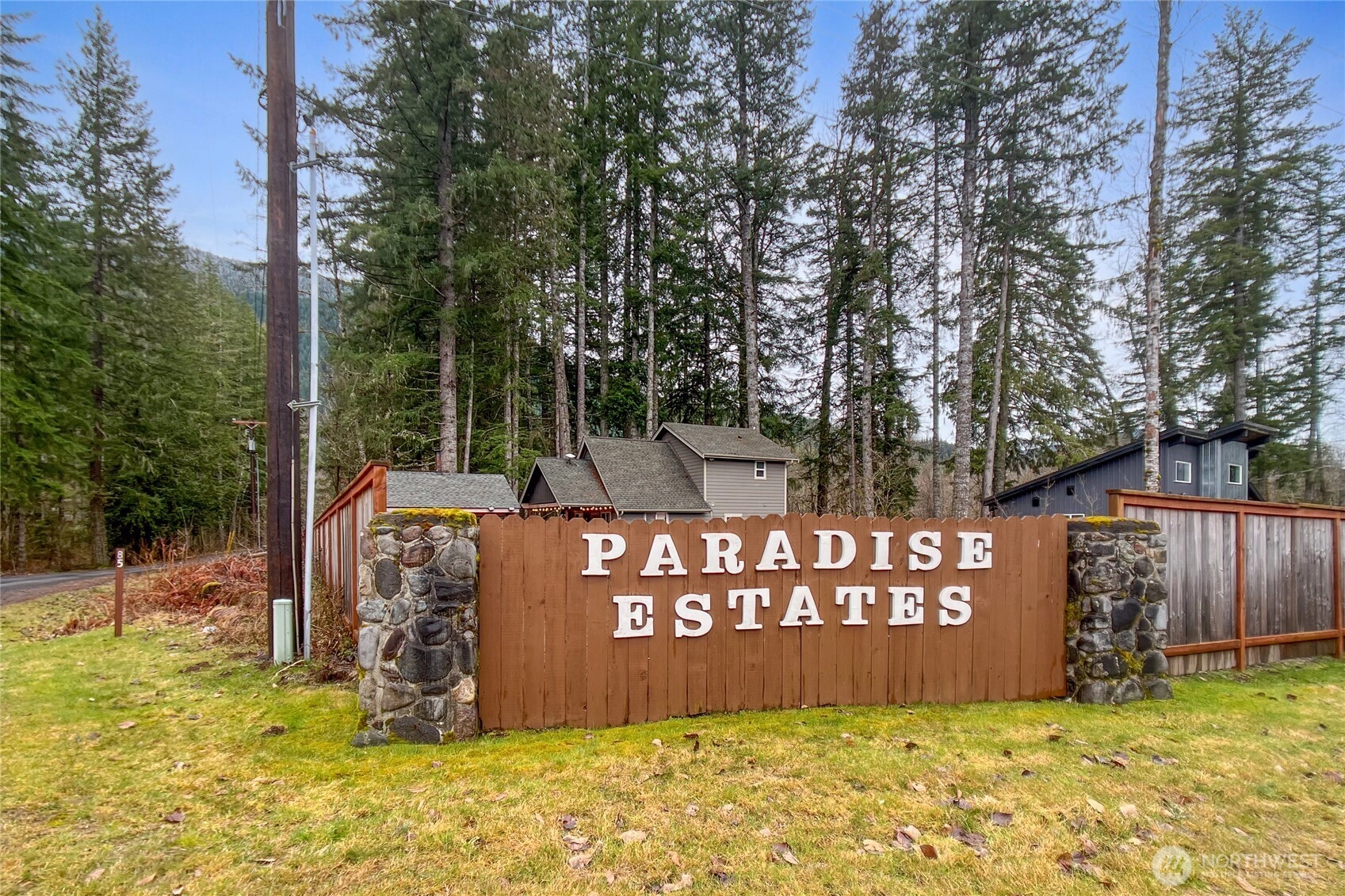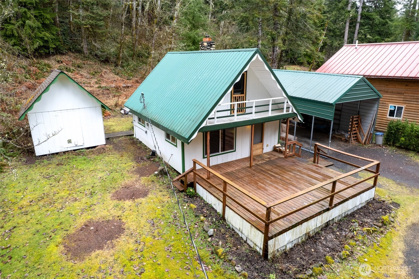 Welcome home to the beloved paradise estates community. This Cabin features 720sqft of living space, 1 bedroom and ½ bath upstairs along with a powder room on the main floor. Upgrades to cabin included new windows, stainless steel appliances, hot water heater, upstairs plumbing, electrical panel, fireplace insert, chimney case replaced with double wall pipe and upgraded stonework all work was completed within the last 3 years. This Home is situated on .40 acres and backs up to private land and Tahoma state forest land. Exterior of the home features a metal roof, large deck and upper balcony to enjoy the surrounding views. Covered carport will stay and outbuilding has a generator hookup and washer and dryer.