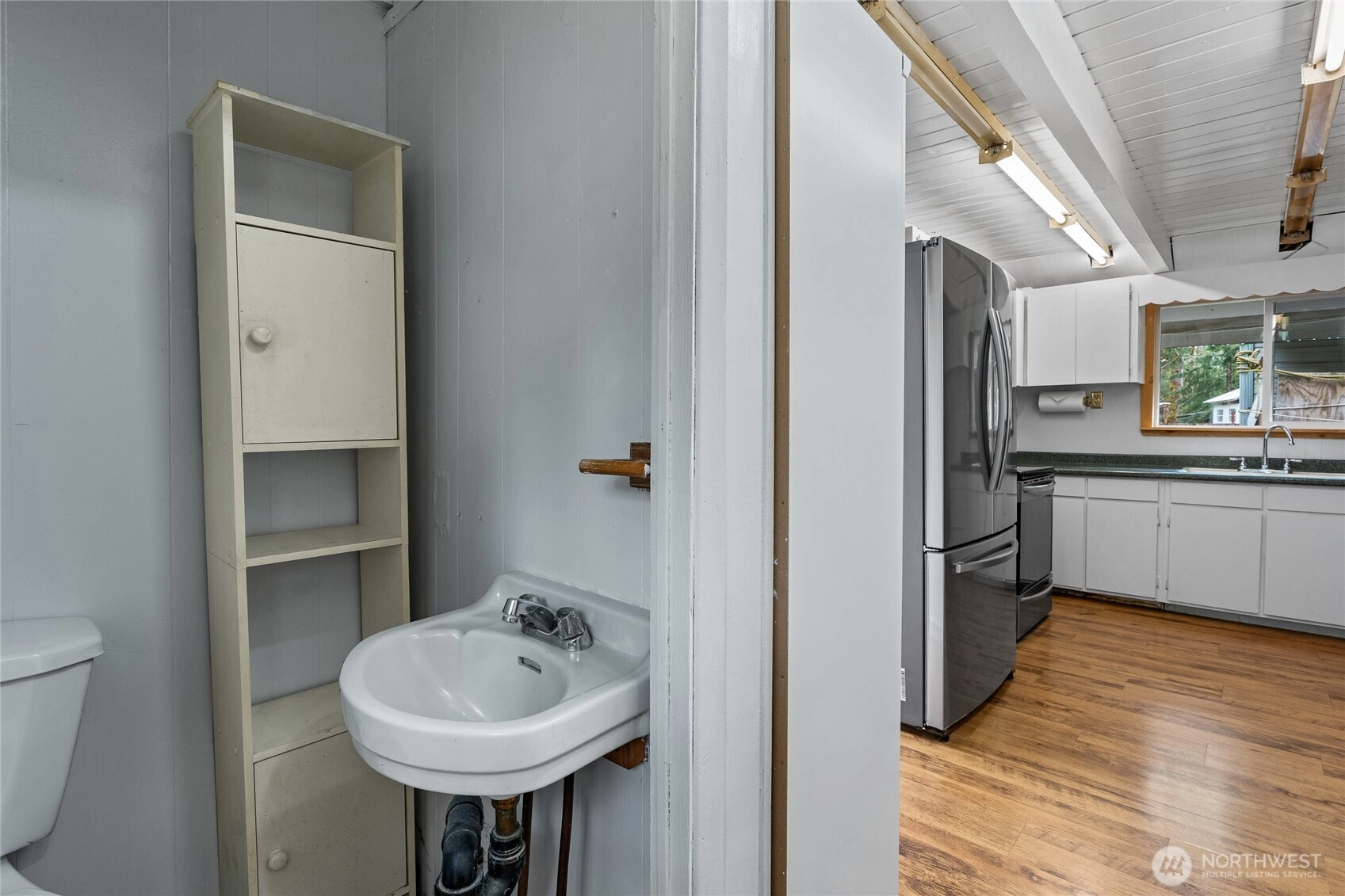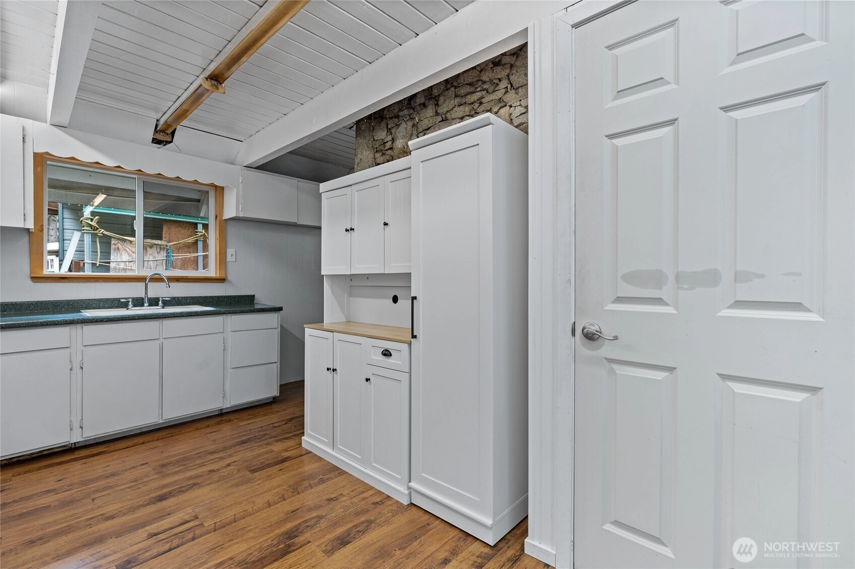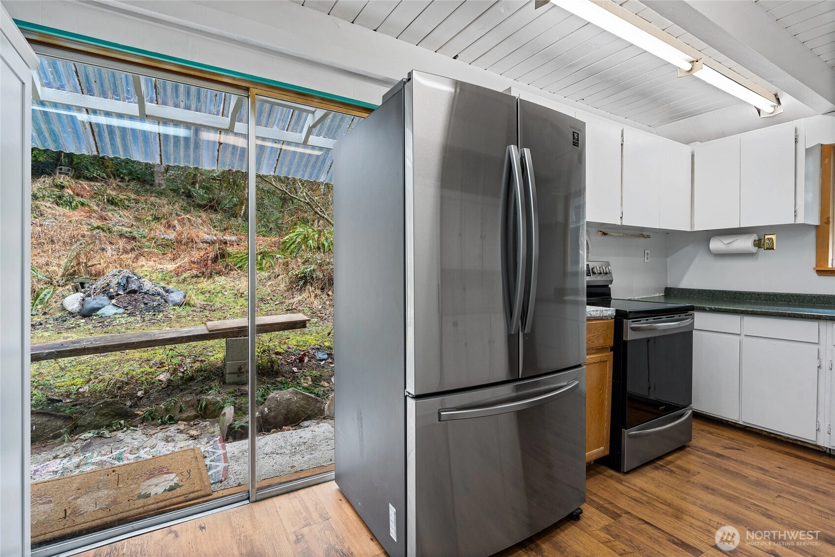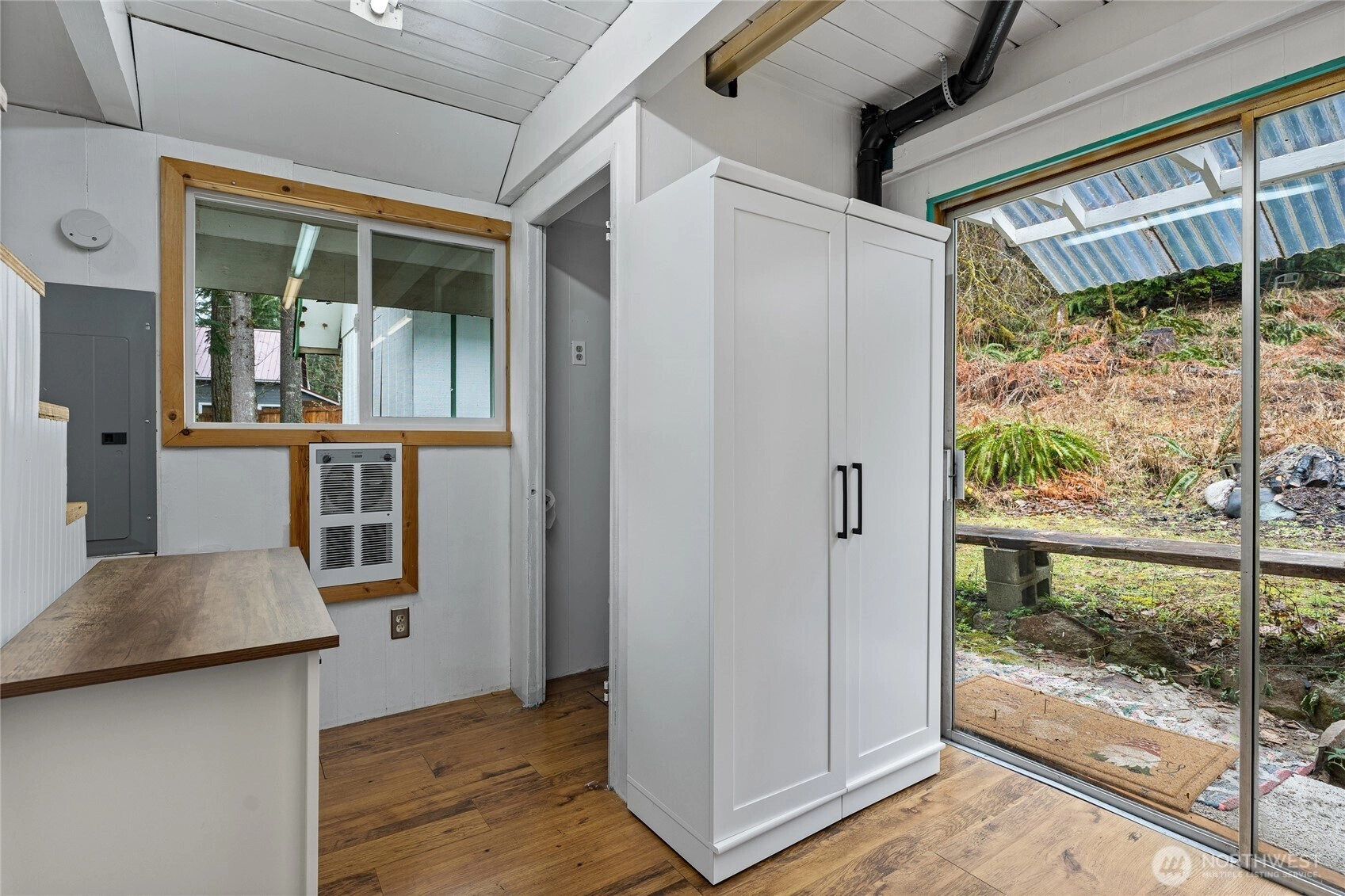 Welcome home to the beloved paradise estates community. This Cabin features 720sqft of living space, 1 bedroom and ½ bath upstairs along with a powder room on the main floor. Upgrades to cabin included new windows, stainless steel appliances, hot water heater, upstairs plumbing, electrical panel, fireplace insert, chimney case replaced with double wall pipe and upgraded stonework all work was completed within the last 3 years. This Home is situated on .40 acres and backs up to private land and Tahoma state forest land. Exterior of the home features a metal roof, large deck and upper balcony to enjoy the surrounding views. Covered carport will stay and outbuilding has a generator hookup and washer and dryer.