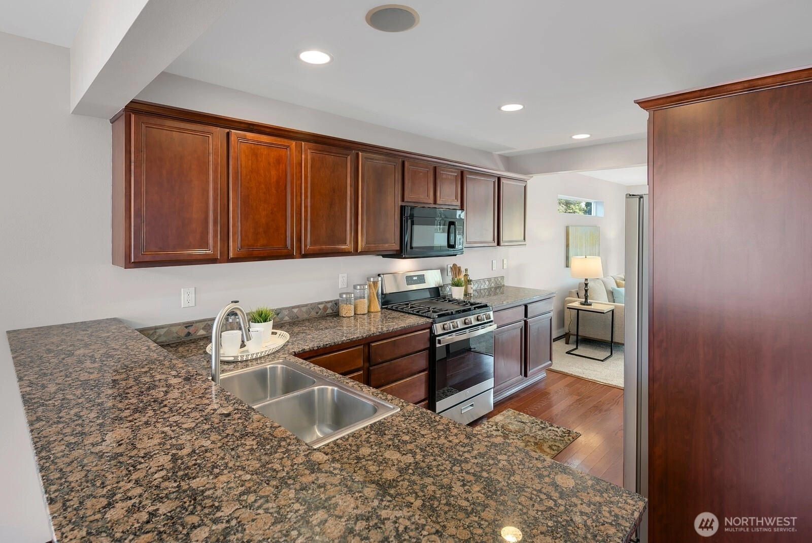 Welcome to this charming free-standing townhome nestled in a quiet community with stunning golf course views! Inside discover a lovely kitchen featuring granite counters, gas range, ample storage, & beautiful hardwood floors. The spacious living room, complete with cozy gas fireplace, is great for entertaining, while the primary suite—boasting vaulted ceilings—provide a tranquil retreat. Outside enjoy your private yard space & unwind on the deck swing. Additionally there’s a large 2 car garage! With a prime location near parks, Boeing, Paine Field Airport, shopping, & more, it’s ideally situated for convenience & leisure. Plus, with no rental cap it’s a versatile option for any lifestyle. It’s not just a house, it’s a place to call home.