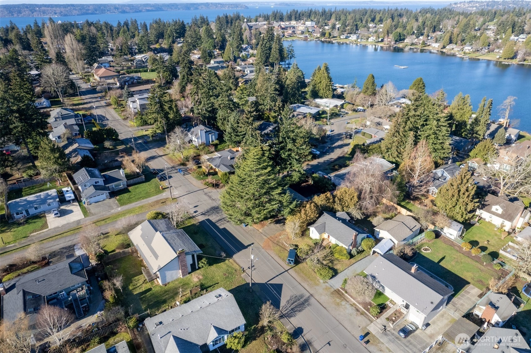 Classic 5-bedroom property, situated on large corner lot above Lake Burien, in peaceful established neighborhood. Close proximity to Sea-Tac International Airport, merely minutes away. Near shopping/cafes, only a quick hop from St. Anne Hospital. Excellent opportunity for adding equity with remodel and improvements. Bones of place appear to be in good condition, but home awaits fresh paint and renovation projects to increase its value. Perfect sweat-equity boost is nearly inevitable here. Metal roof. Spacious, fenced level backyard. Wonderful, sunny garden space. Separate living space downstairs provides multi-generational living or VRBO/B & B options. Big double-door, shy 600 sq.ft. garage. Additional photos and information to update soon.