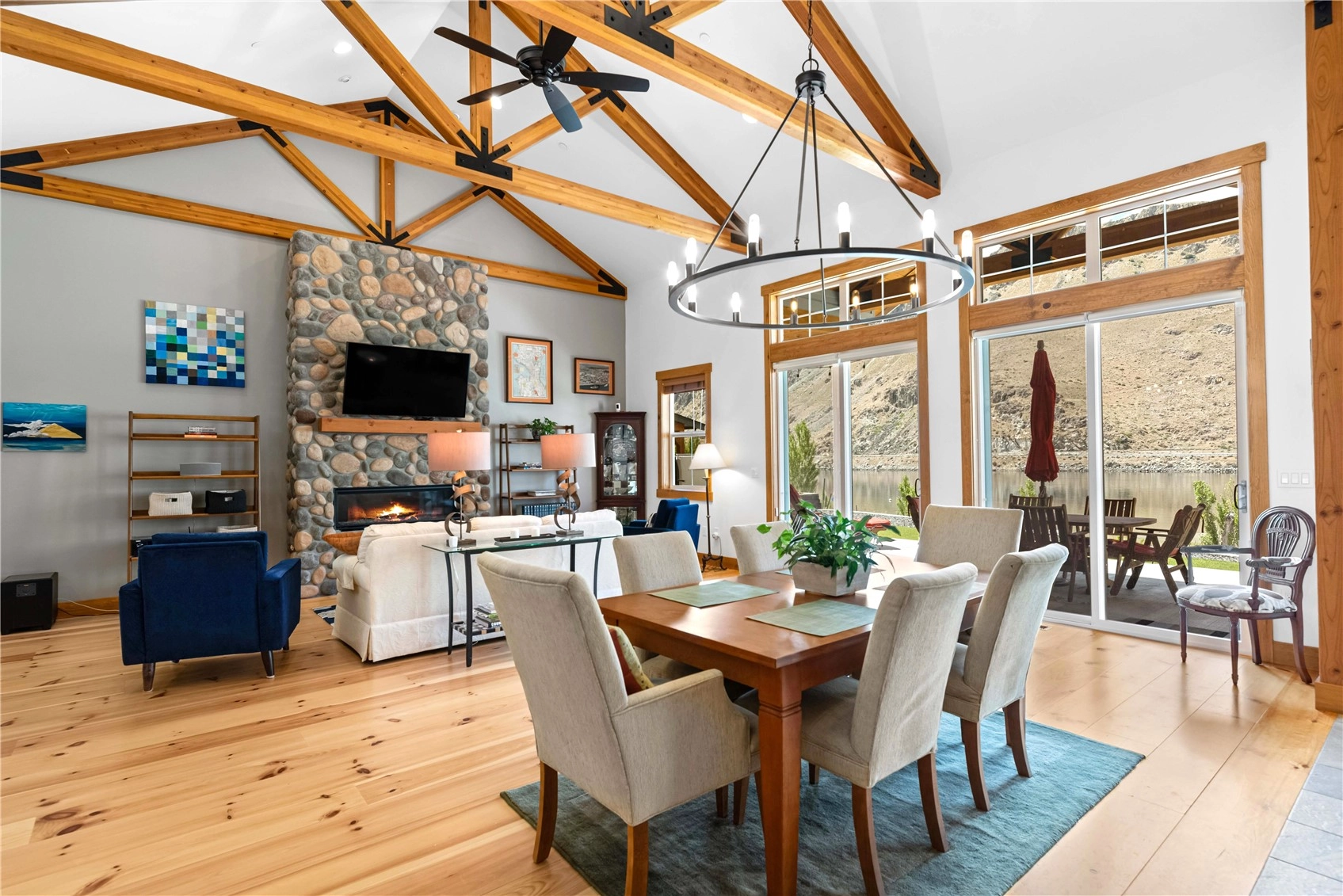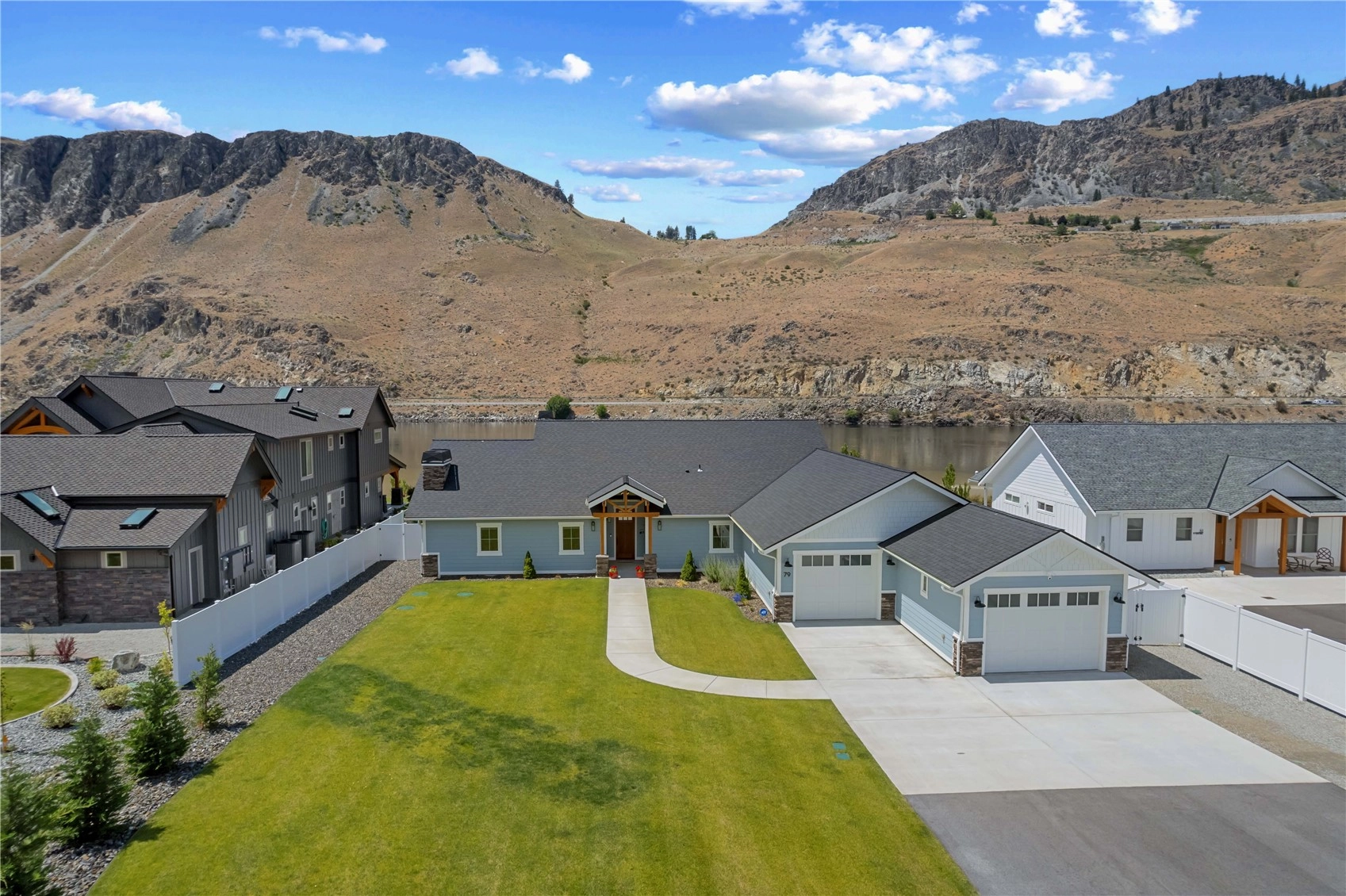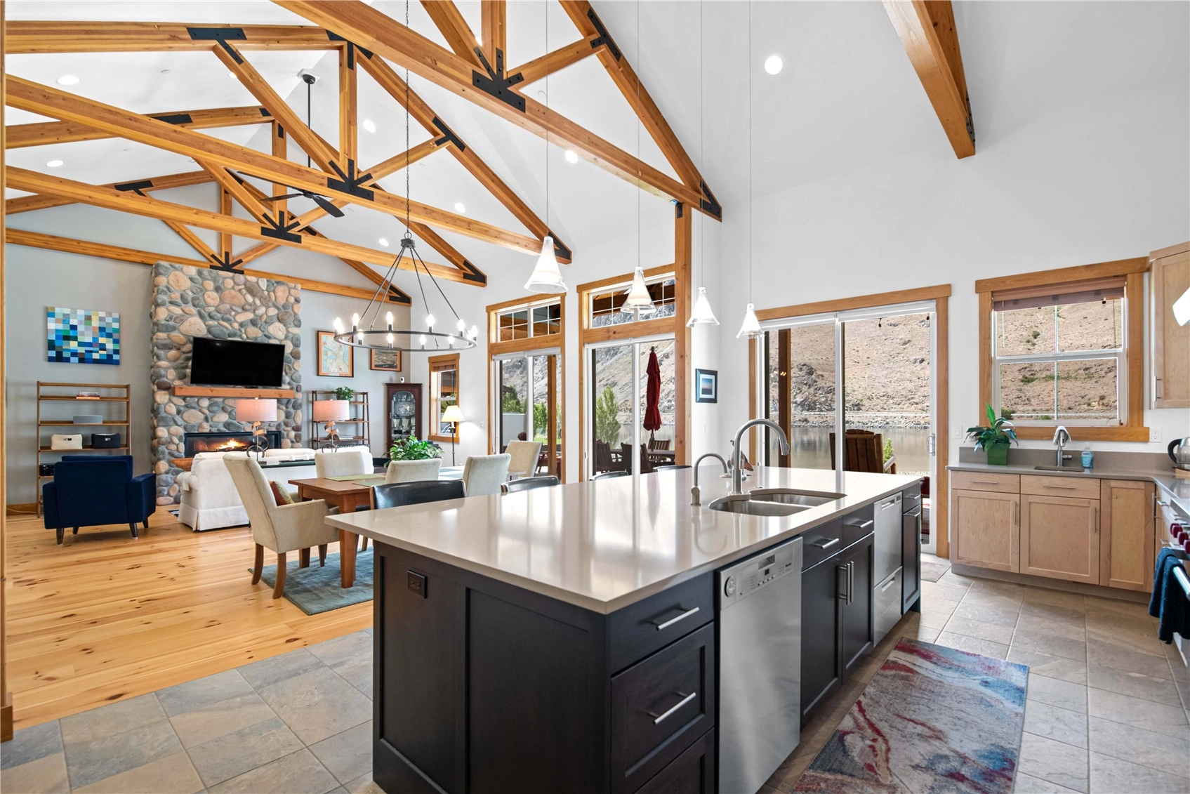COLUMBIA RIVER LOW-BANK WATERFRONT! Stunning 2022 Harkey Construction built rambler on the Columbia River w/ 100'+ of low bank waterfront & sandy beach. Designed for entertaining, features a great room w/ soaring ceilings, exposed beams, multiple fireplaces & wide plank wood floors. Welcoming kitchen has maple cabinets, high-end appliances (Sub-Zero/Wolf/Miele/Fisher-Paykel/Franke) double ovens & dishwashers, prep sink, coffee bar, radiant heated floors & quartz countertops. Spacious Primary Suite + 2 Guest Bedrooms, Office & Media Room. Sliding glass doors lead to outdoor living area w/ dining & lounge area, hot tub, swim spa & outdoor shower. Large 3+ car garage, boat storage & private buoy. 10 min from Chelan. Short-term rentals allowed.