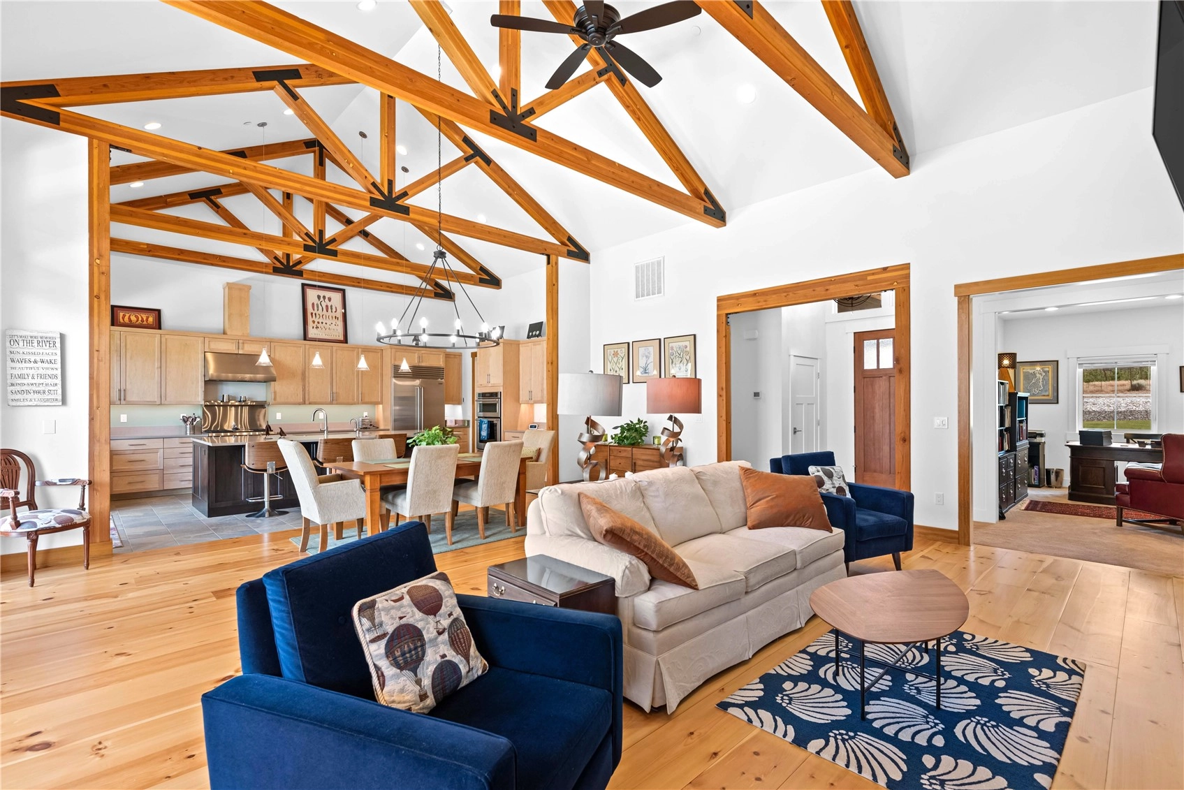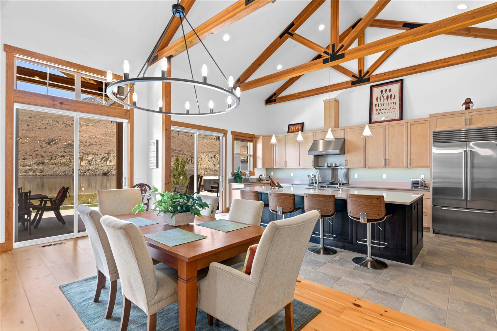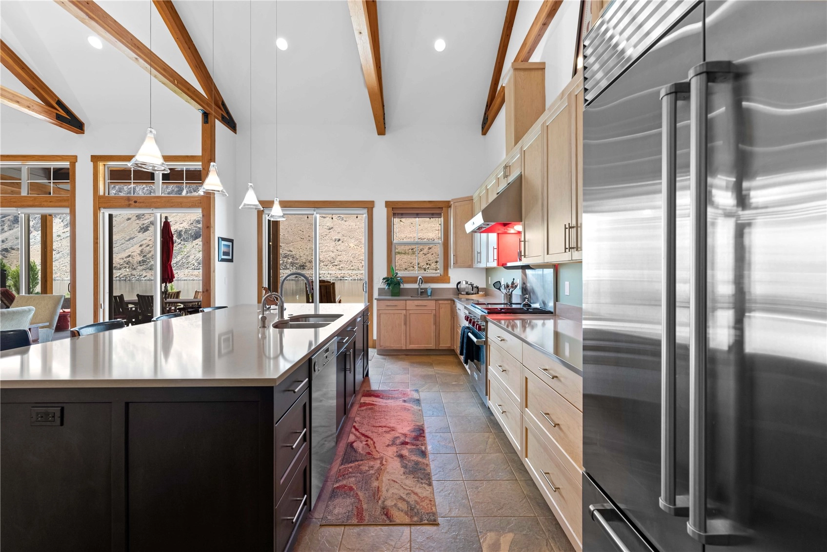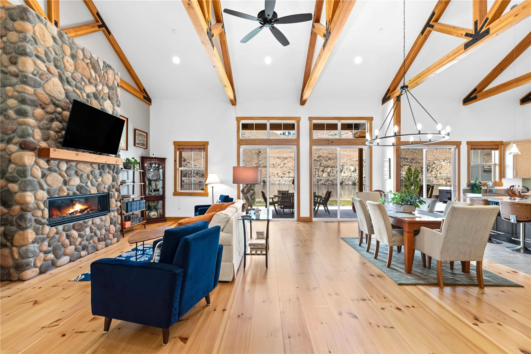 COLUMBIA RIVER LOW-BANK WATERFRONT! Stunning 2022 Harkey Construction built rambler on the Columbia River w/ 100'+ of low bank waterfront & sandy beach. Designed for entertaining, features a great room w/ soaring ceilings, exposed beams, multiple fireplaces & wide plank wood floors. Welcoming kitchen has maple cabinets, high-end appliances (Sub-Zero/Wolf/Miele/Fisher-Paykel/Franke) double ovens & dishwashers, prep sink, coffee bar, radiant heated floors & quartz countertops. Spacious Primary Suite + 2 Guest Bedrooms, Office & Media Room. Sliding glass doors lead to outdoor living area w/ dining & lounge area, hot tub, swim spa & outdoor shower. Large 3+ car garage, boat storage & private buoy. 10 min from Chelan. Short-term rentals allowed.