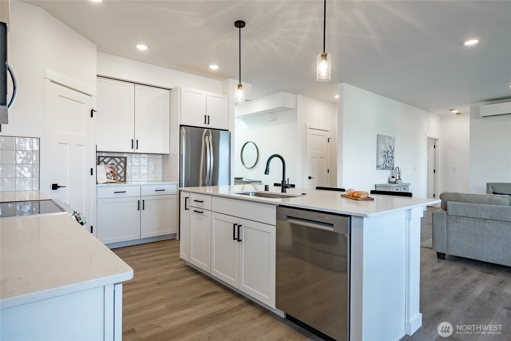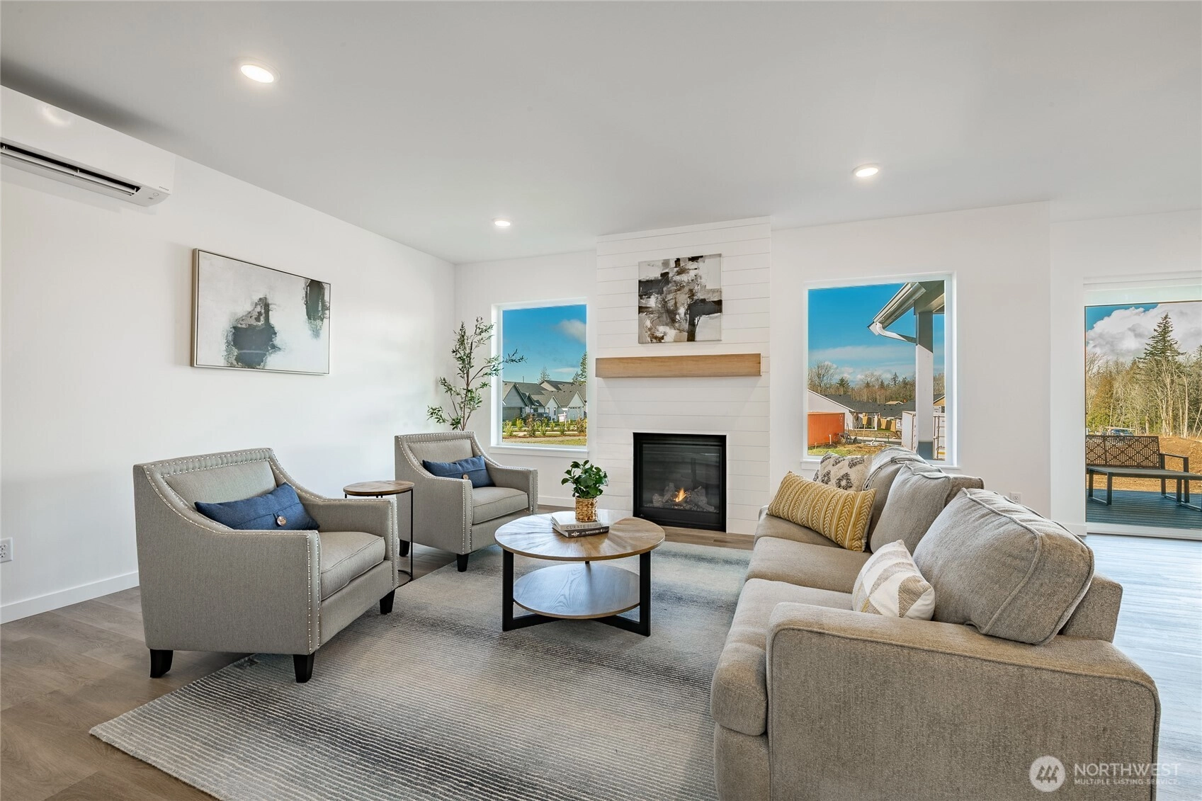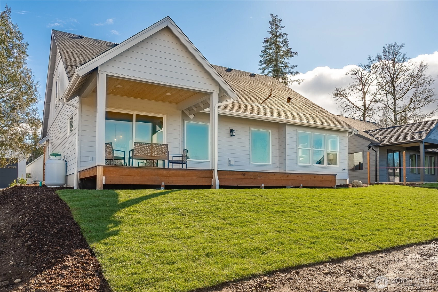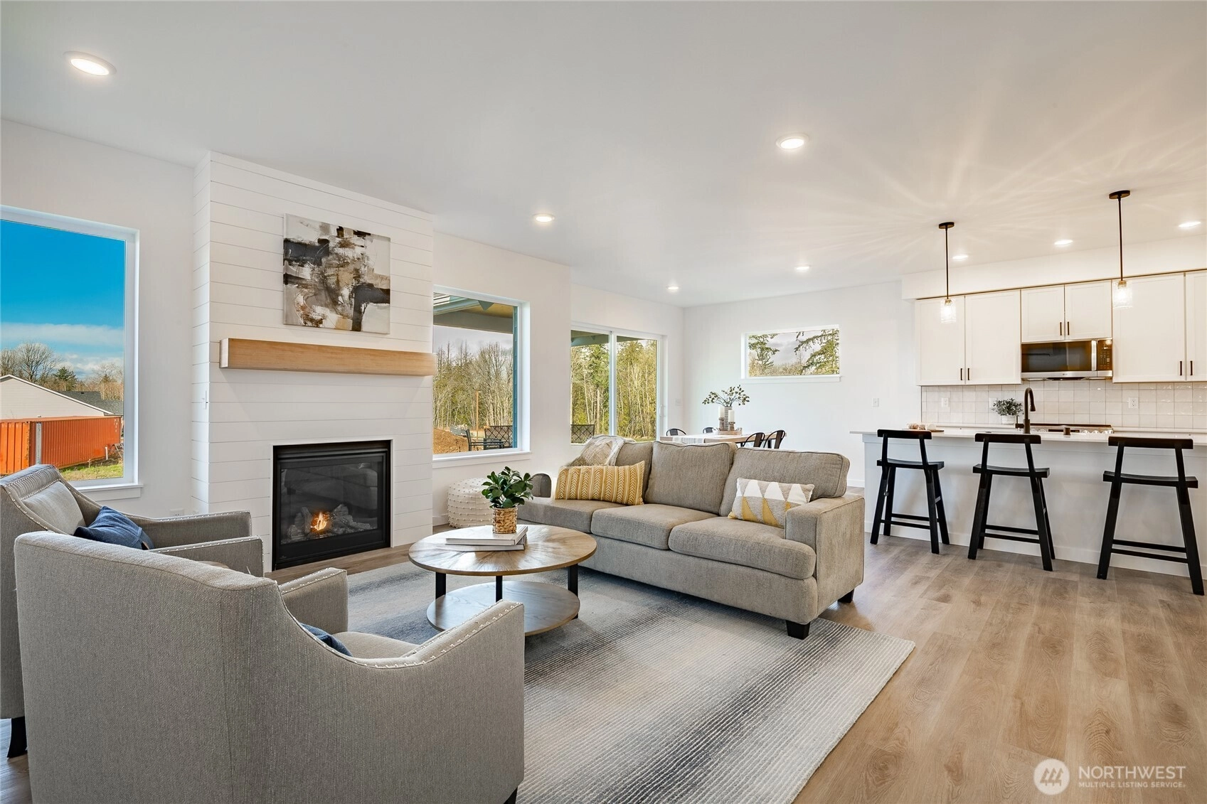 Welcome to The Ridge in Blaine, WA! This 4-bedroom home offers a spacious layout with a bonus loft living area upstairs, perfect for additional entertaining space, or a playroom. The main floor features an open-concept design with high ceilings and a cozy propane fireplace, creating a warm and inviting atmosphere. Step outside to the covered back patio, ideal for year-round outdoor enjoyment. High-end finishes throughout include luxury vinyl plank flooring, flat panel cabinets, quartz countertops & designer tile backsplash, and slab-on-grade foundation. Mini-split heating and cooling. Conveniently located near downtown Blaine and I-5, easy access to all amenities. *SAVINGS with our Preferred Lender: .75% Lender Credit, $5,000 Seller Credit.