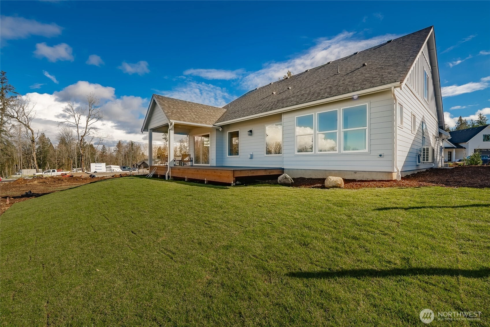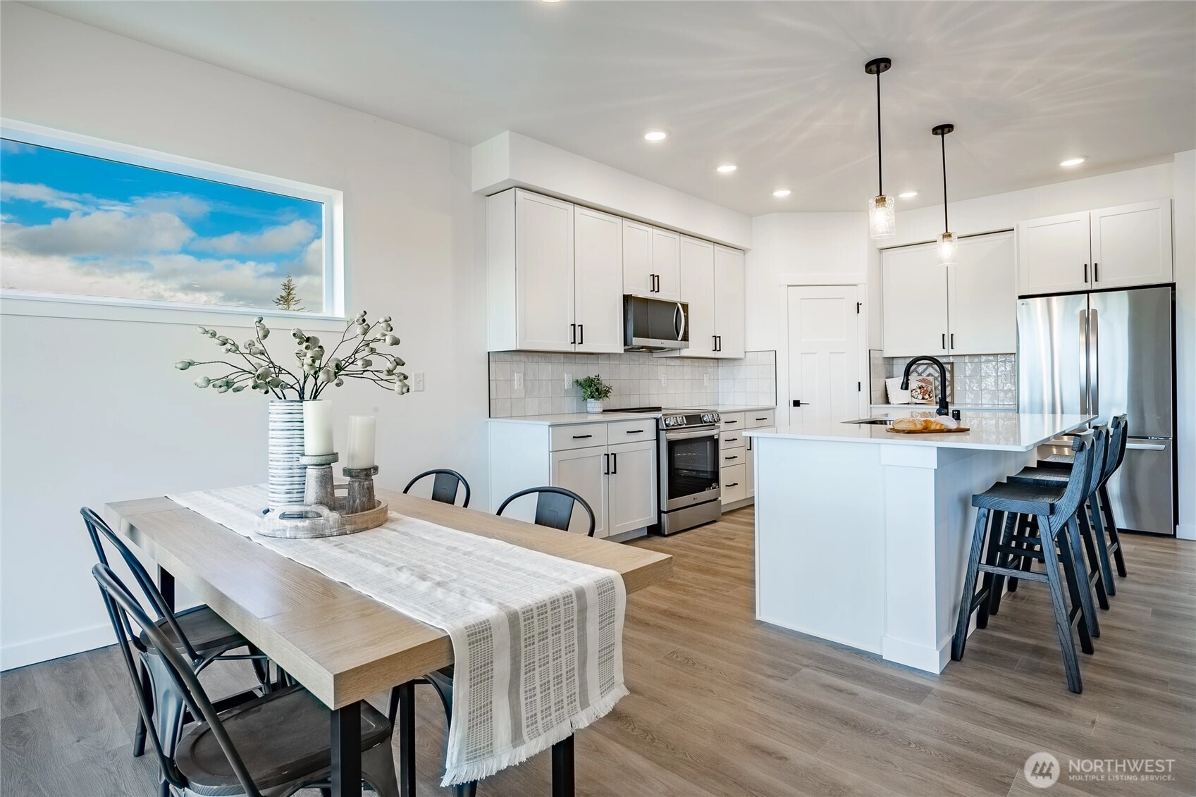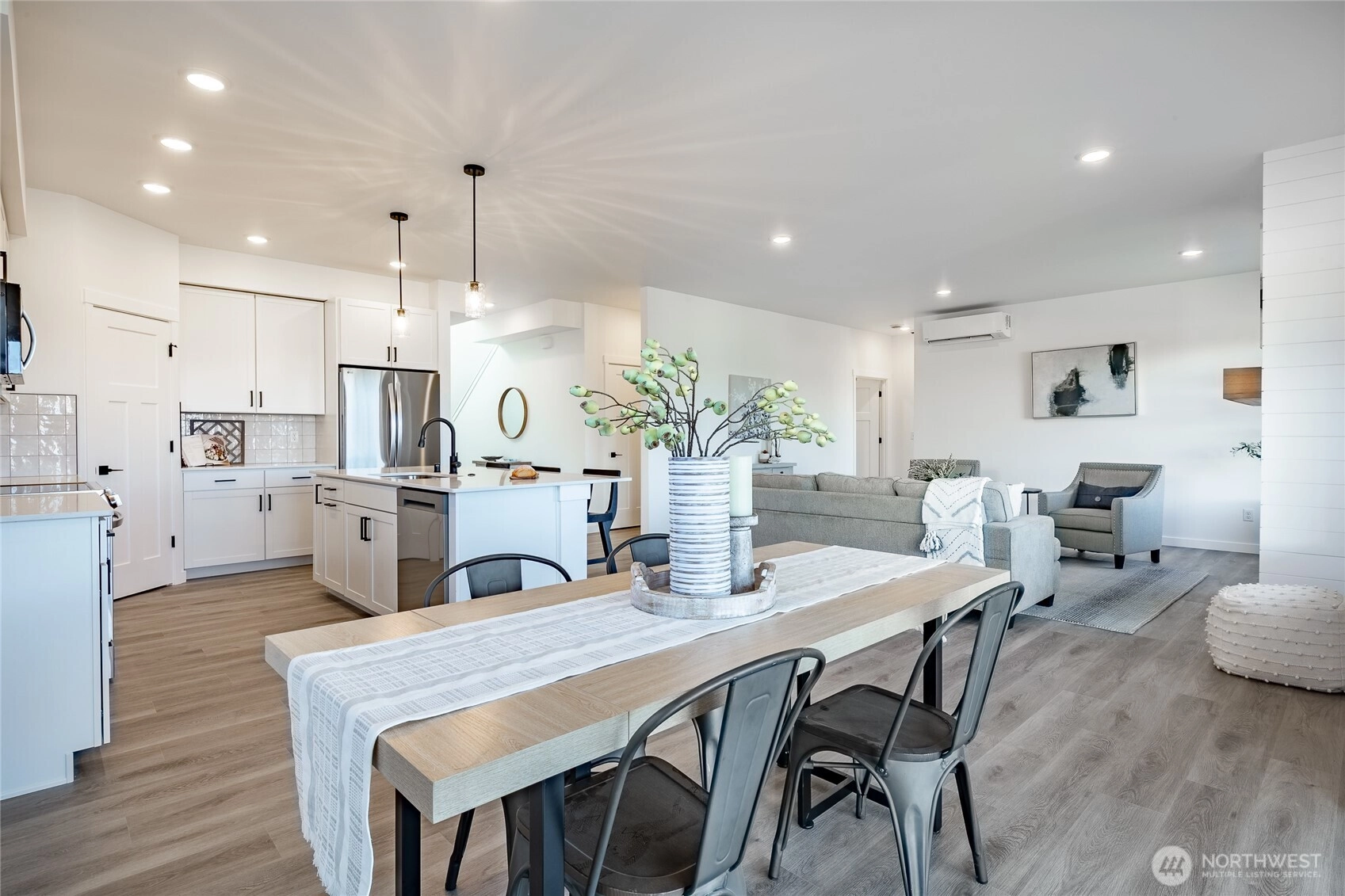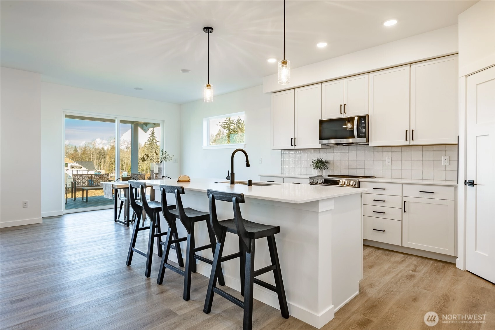 Welcome to The Ridge in Blaine, WA! This 4-bedroom home offers a spacious layout with a bonus loft living area upstairs, perfect for additional entertaining space, or a playroom. The main floor features an open-concept design with high ceilings and a cozy propane fireplace, creating a warm and inviting atmosphere. Step outside to the covered back patio, ideal for year-round outdoor enjoyment. High-end finishes throughout include luxury vinyl plank flooring, flat panel cabinets, quartz countertops & designer tile backsplash, and slab-on-grade foundation. Mini-split heating and cooling. Conveniently located near downtown Blaine and I-5, easy access to all amenities. *SAVINGS with our Preferred Lender: .75% Lender Credit, $5,000 Seller Credit.