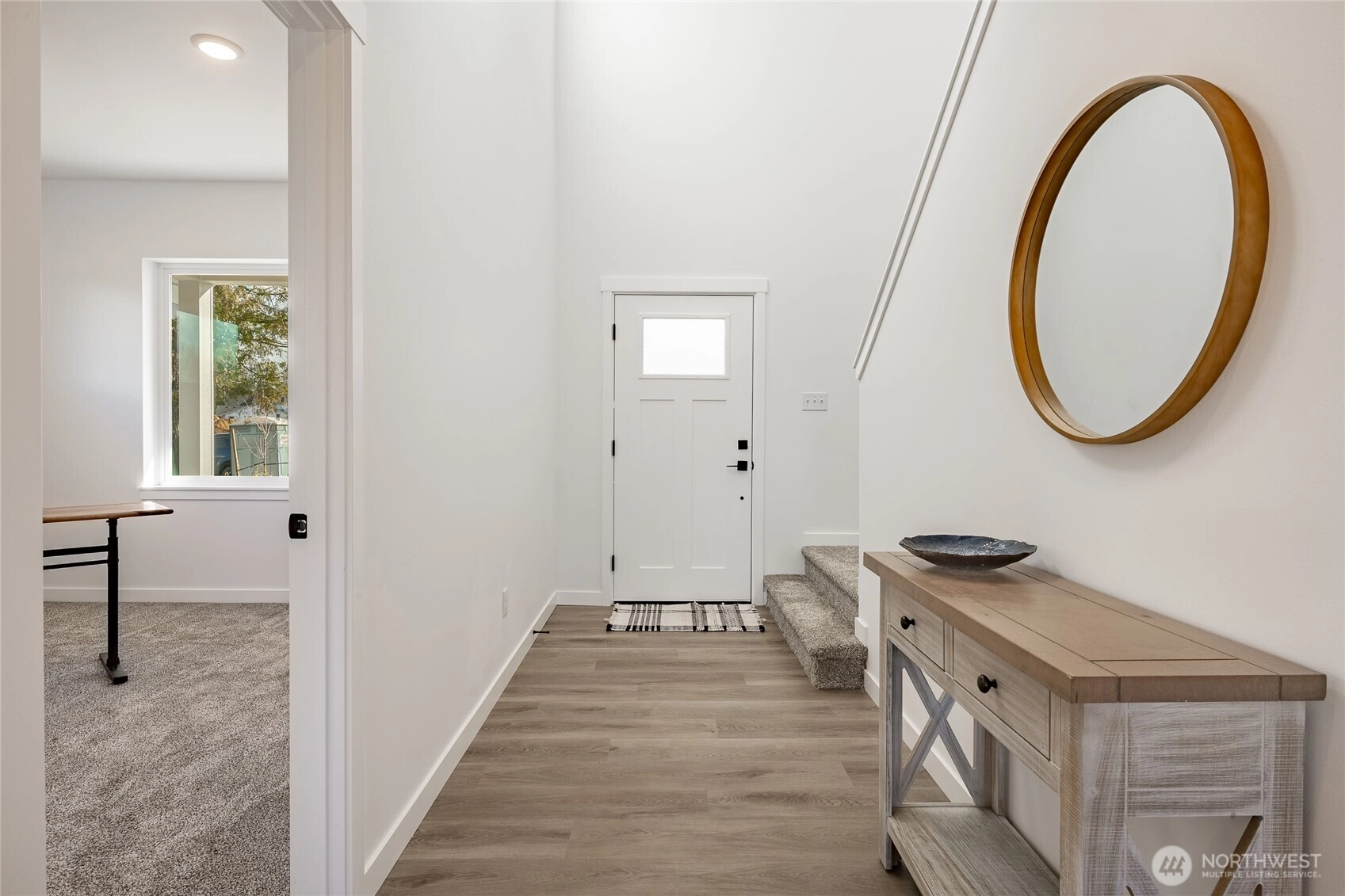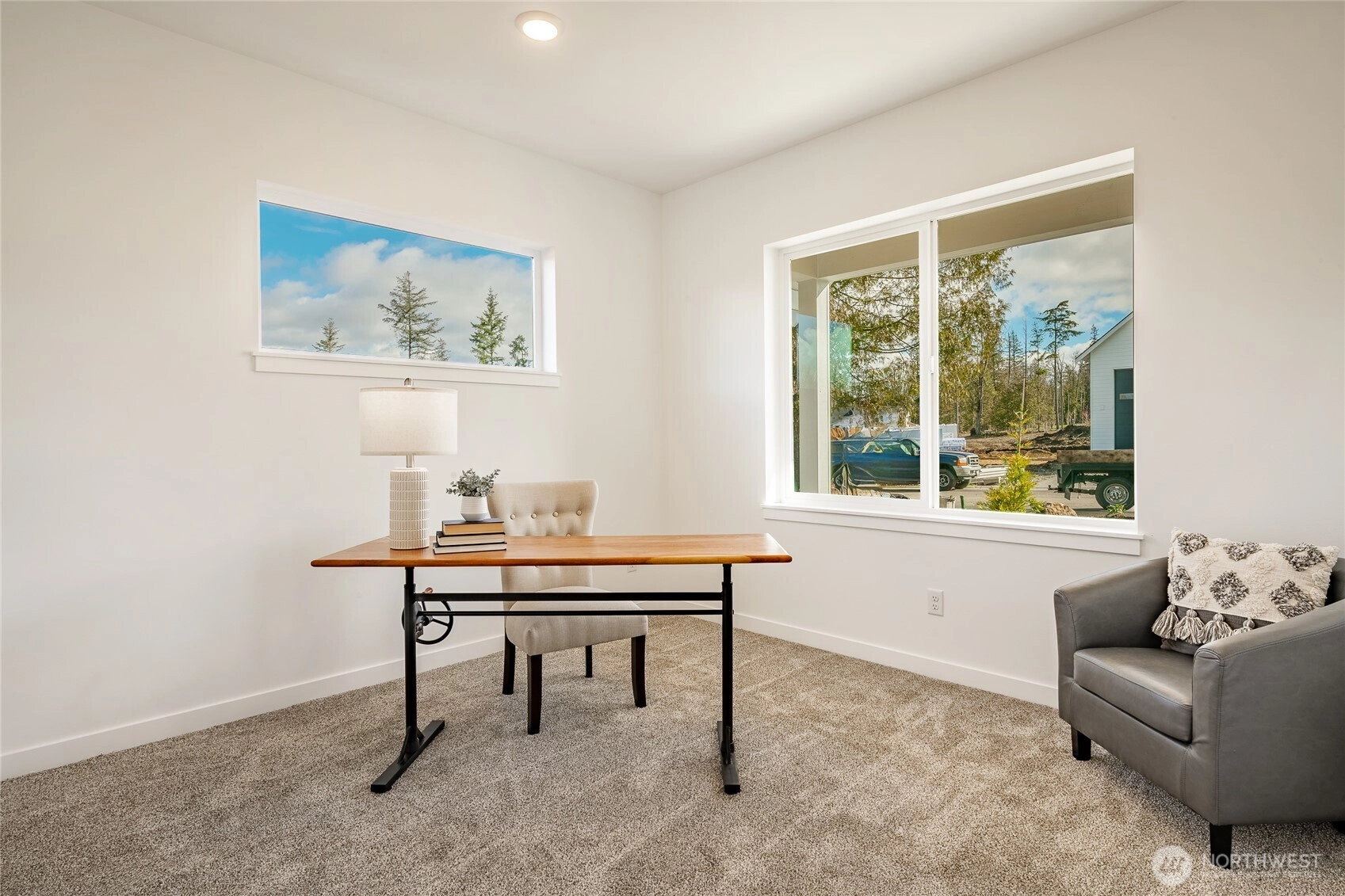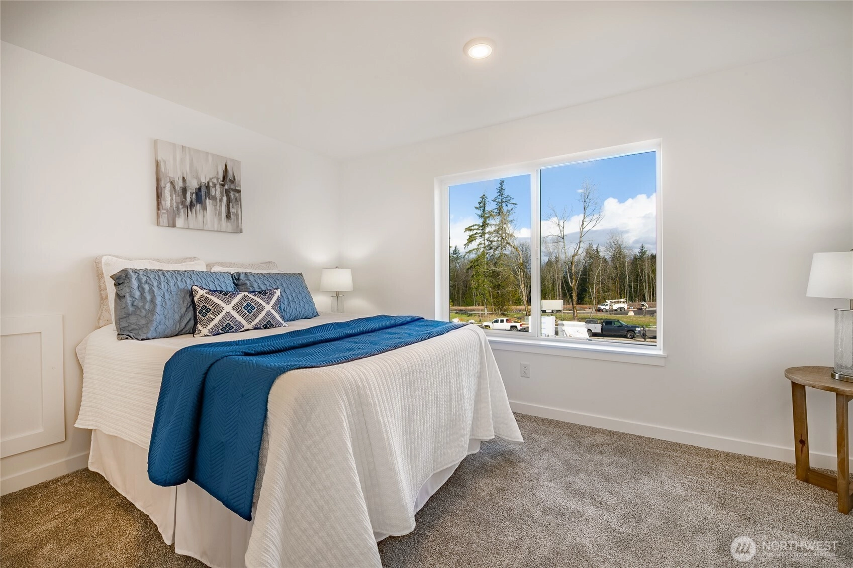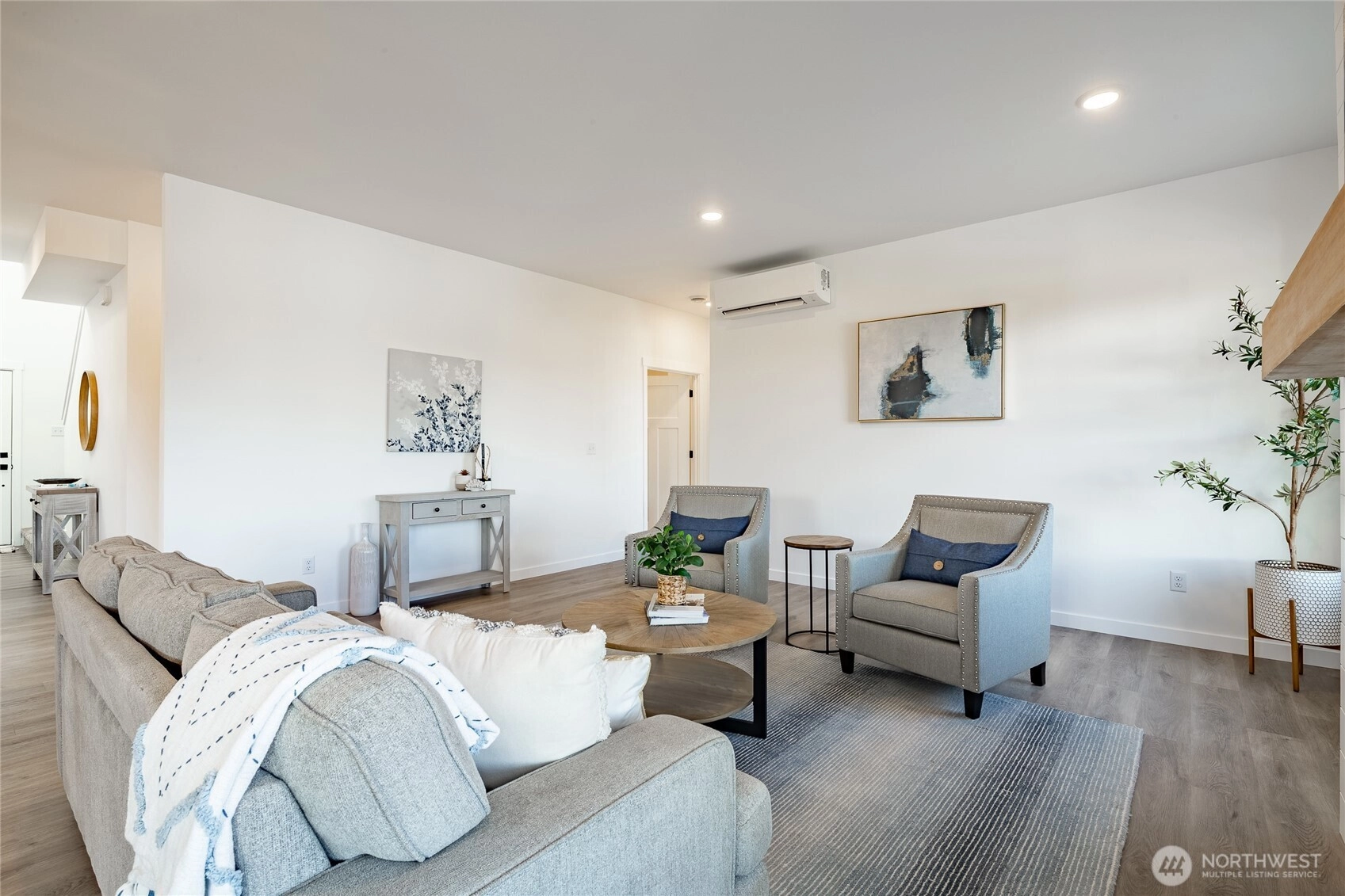 Welcome to The Ridge in Blaine, WA! This 4-bedroom home offers a spacious layout with a bonus loft living area upstairs, perfect for additional entertaining space, or a playroom. The main floor features an open-concept design with high ceilings and a cozy propane fireplace, creating a warm and inviting atmosphere. Step outside to the covered back patio, ideal for year-round outdoor enjoyment. High-end finishes throughout include luxury vinyl plank flooring, flat panel cabinets, quartz countertops & designer tile backsplash, and slab-on-grade foundation. Mini-split heating and cooling. Conveniently located near downtown Blaine and I-5, easy access to all amenities. *SAVINGS with our Preferred Lender: .75% Lender Credit, $5,000 Seller Credit.