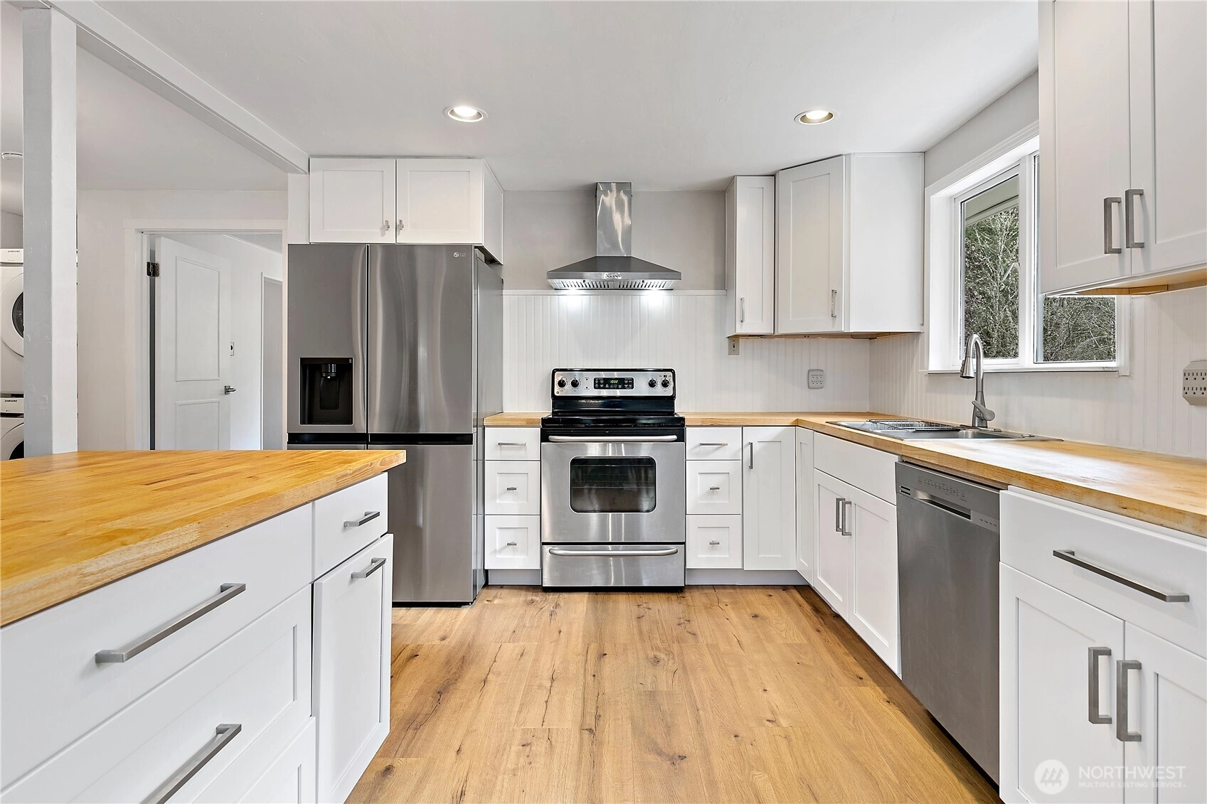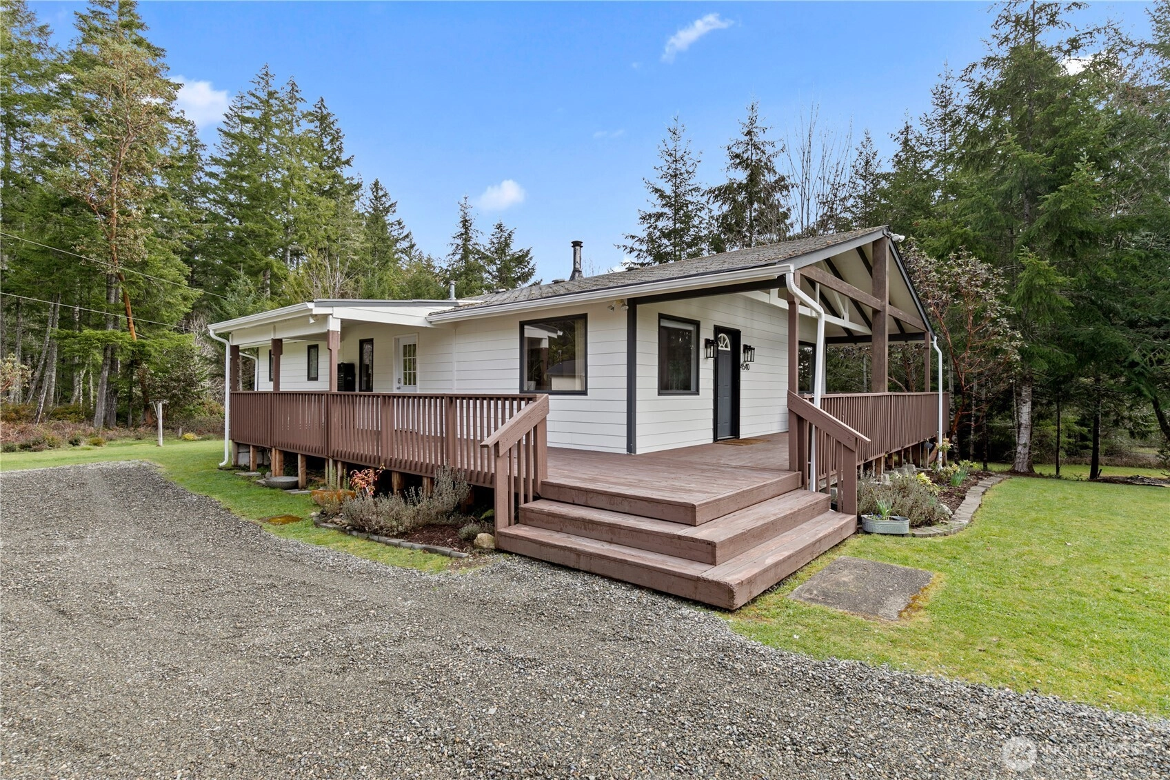 Stunning single-story home on acreage, this beautifully updated property offers the perfect blend of modern upgrades & outdoor living. Recent improvements include fresh interior & exterior paint, resurfaced wrap-around patio, new flooring & trim, new electrical panel & tankless water heater. The heart of this home is the brand-new kitchen, featuring custom cabinetry, butcher block counters & stainless steel appliances. The remodeled bathroom boasts a custom vanity, elegant lighting & mirror w/ linen cabinetry for added storage. Outside, the property offers gorgeous landscaping improvements including walking trails, beauty vegetation, gardening & flower beds. A true retreat! Buyer terminated due to financing, motivated sellers!