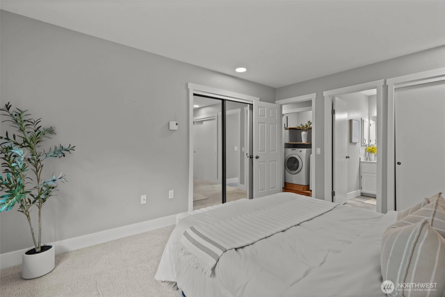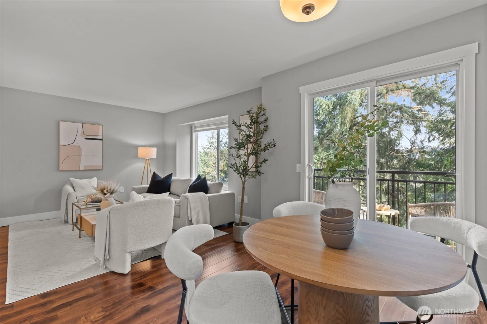 Welcome home to this adorable, private, and tranquil top-floor, end-unit 2-bedroom, 2-bathroom condo nestled in a serene setting! Enjoy an open and airy layout with abundant natural light, creating a warm and inviting ambiance. The spacious living area flows effortlessly onto a private balcony, perfect for savoring your morning coffee or unwinding in the evening. Located in a highly sought-after area, this home is just a short stroll from downtown Woodinville, offering easy access to fantastic dining, shopping, and world-class wineries. Plus, with convenient access to major highways and public transit, commuting is effortless. This home is the perfect blend of privacy, convenience, and modern comfort. Low HOA fees for added affordability.