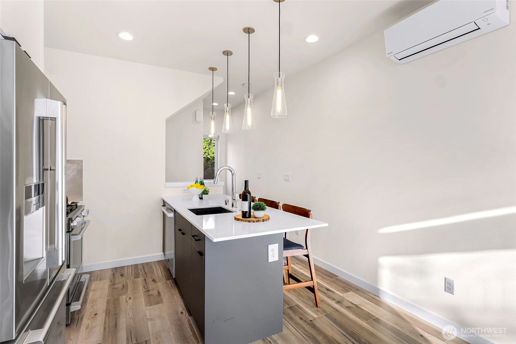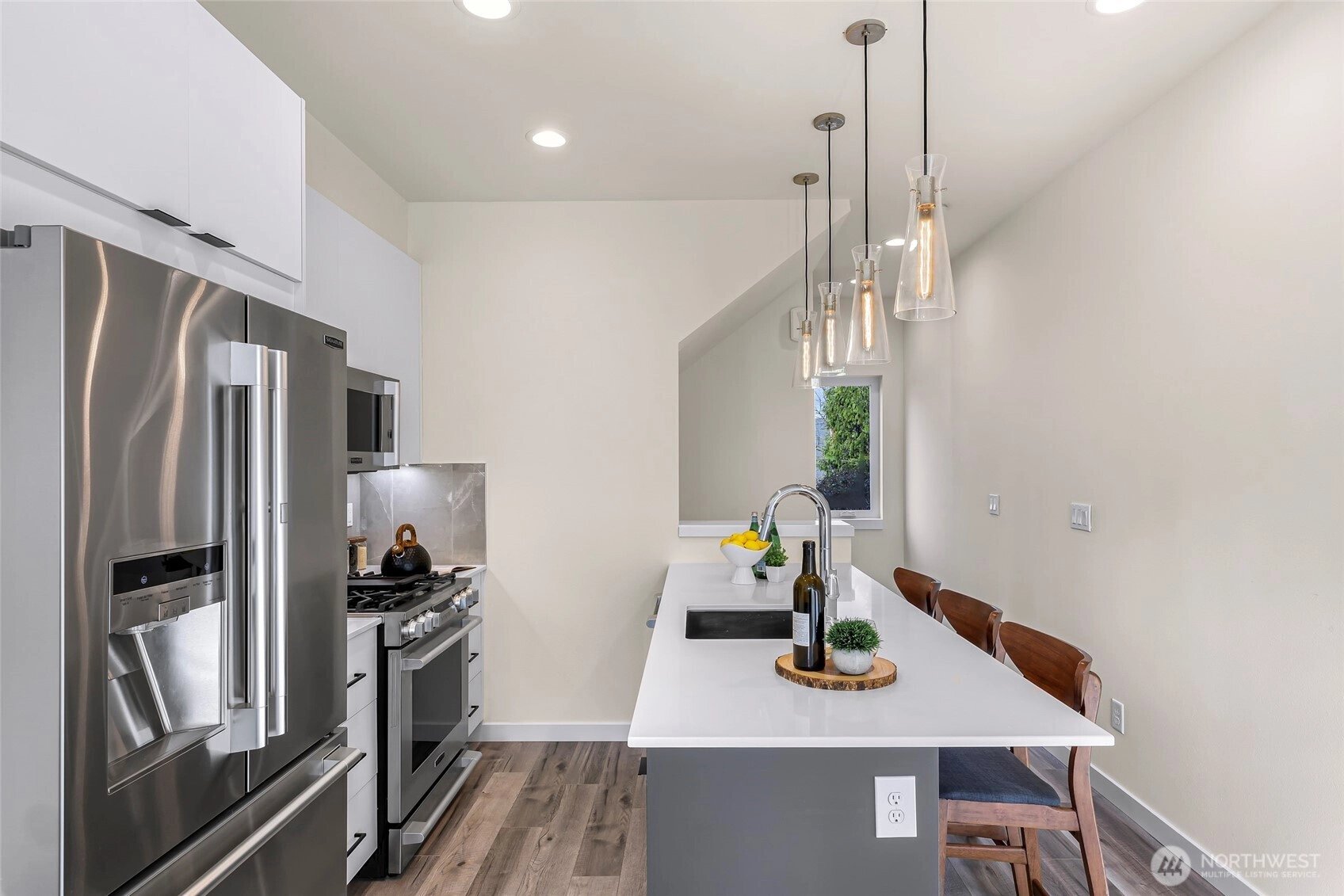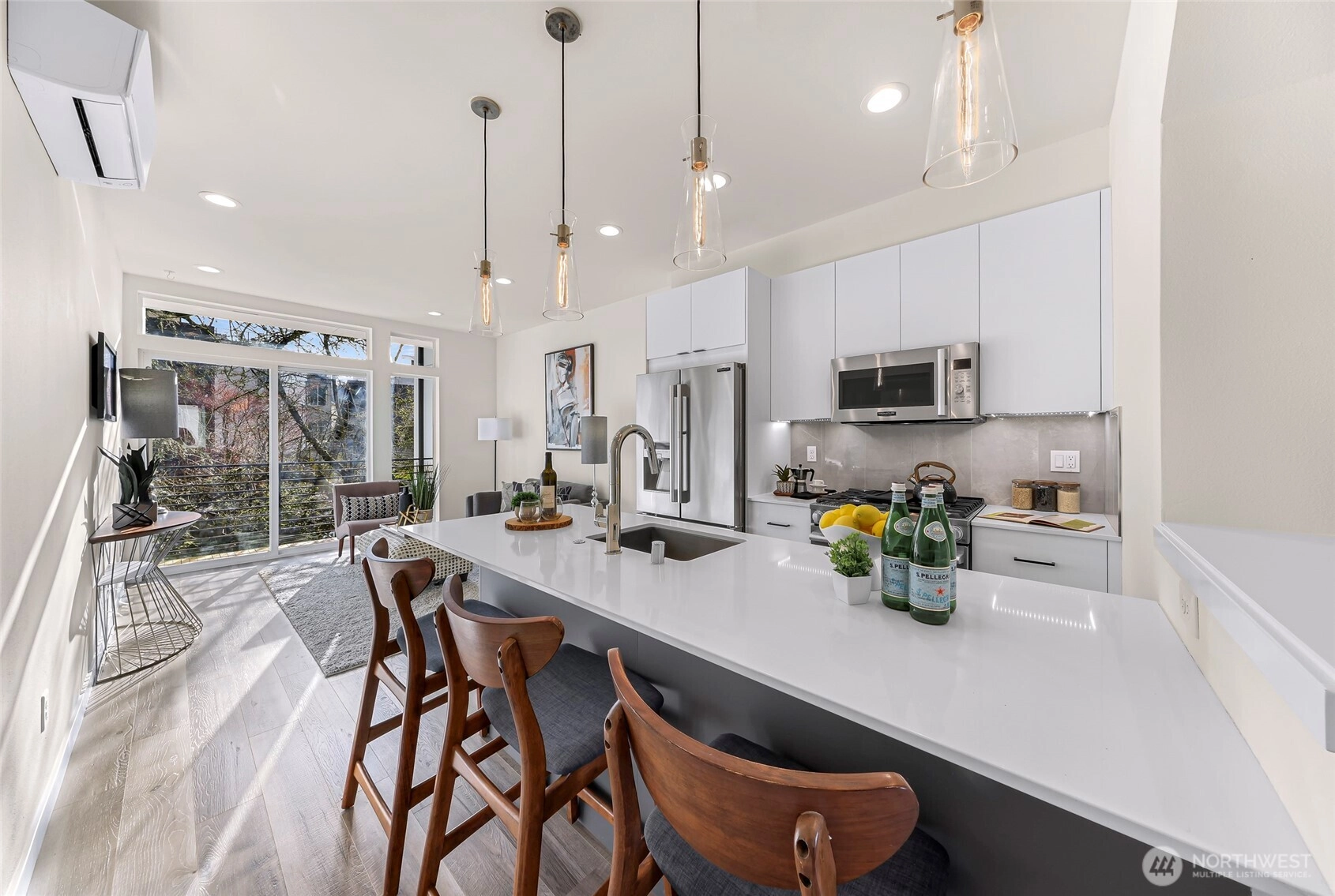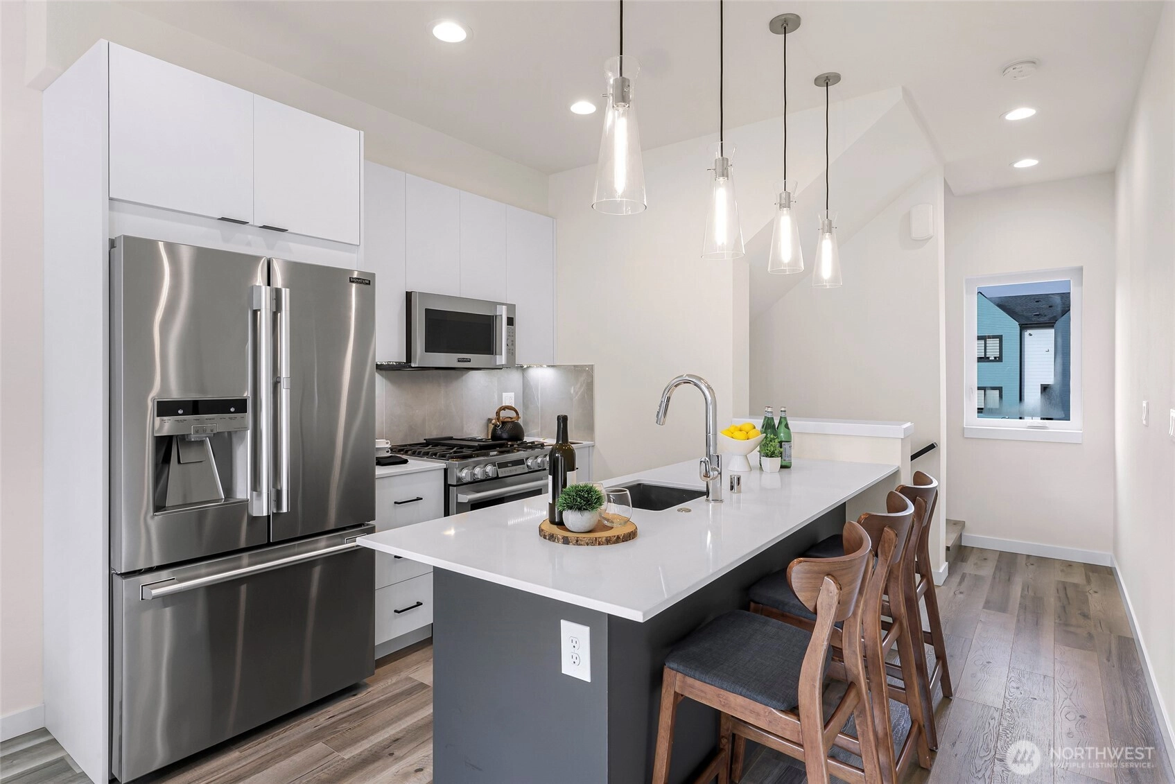 Nestled in the heart of Ballard, steps away from Gilman Park, this townhome boasts an array of exceptional features, Luxury Signature Kitchen Suite appliances, hardwood floors in main living areas + primary bedroom, living room w/soaring ceilings & private balcony. Thoughtful design elements create harmonious flow throughout. Lower level bedroom offers direct access to tranquil, private backyard space. Primary bedroom & bathroom occupy the 3rd floor & features a private balcony. Rooftop deck provides territorial views & plenty of entertainment space. Located just minutes to Ballard's Historic District with its renowned shops & restaurants, this townhome offers the perfect blend of urban convenience and tranquil living! Plus, No HOA Dues!