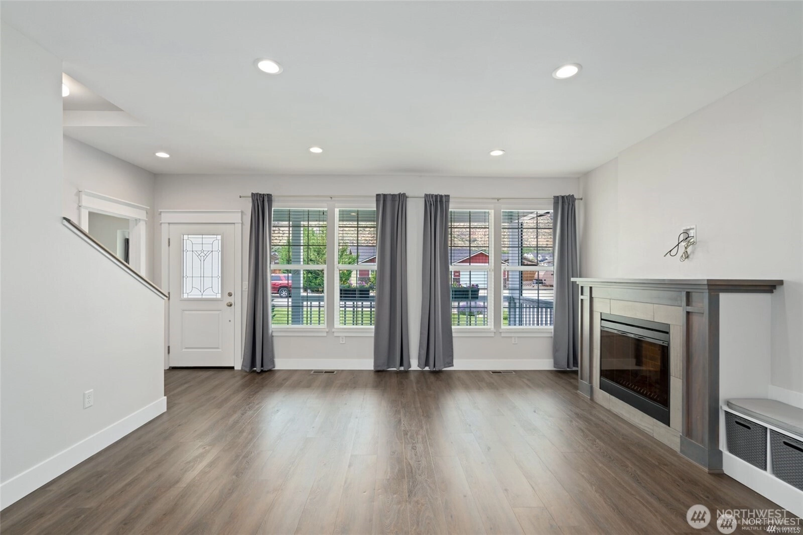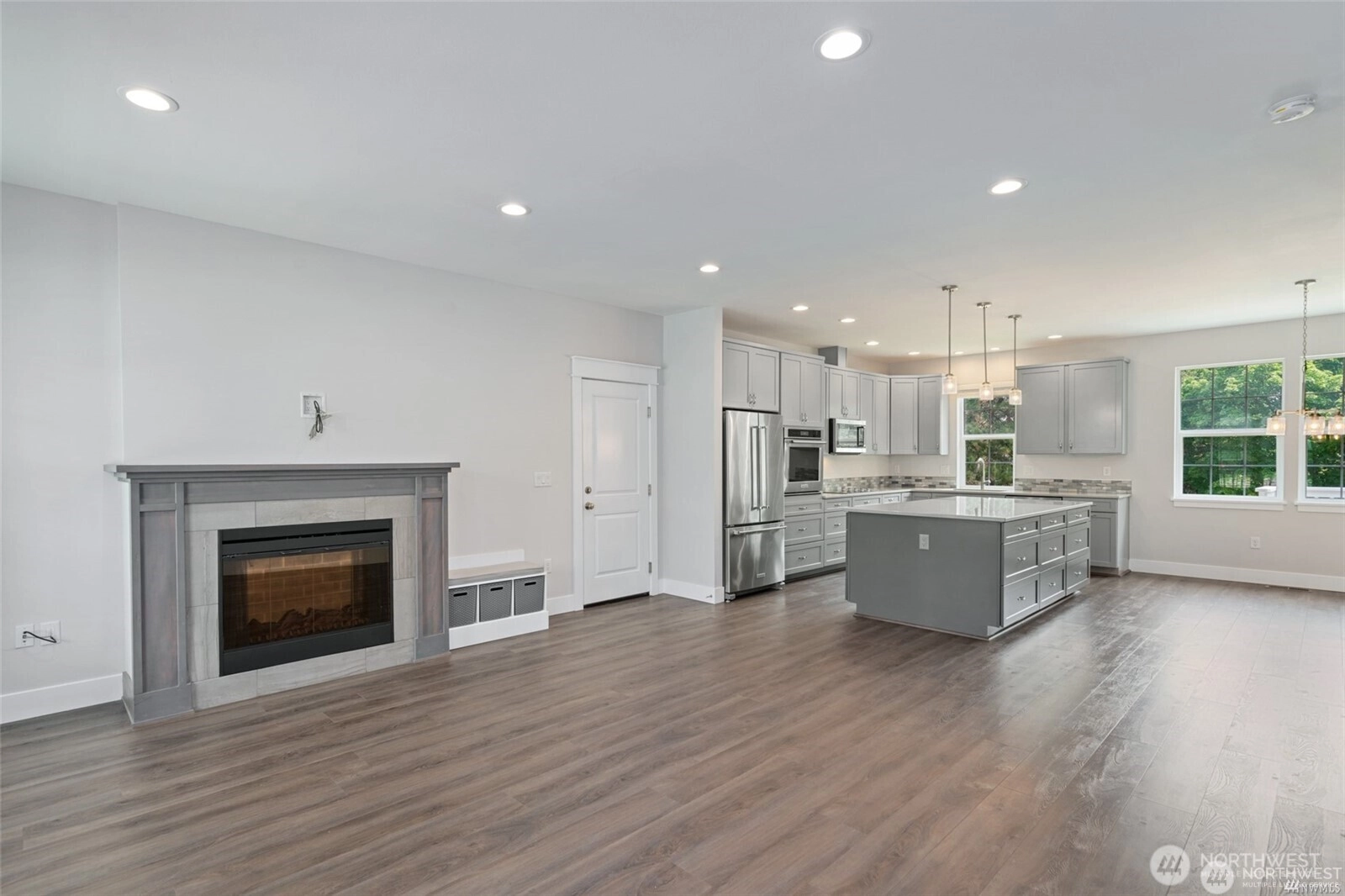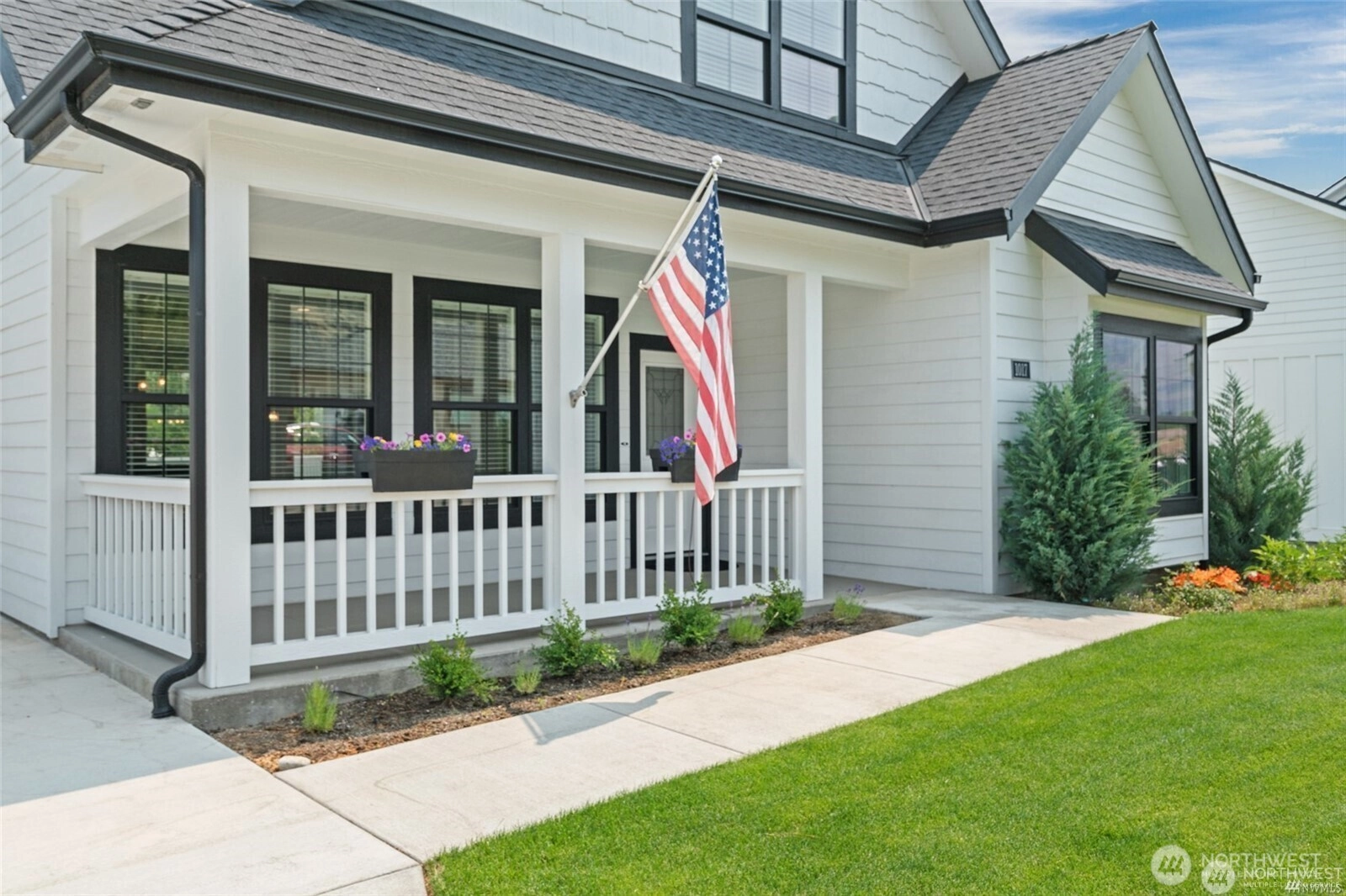Modern Farmhouse style 4 bedroom, 2.5 bath with SO many upgrades. This elegant home offers a stylish front covered porch with a 3-car garage with at least 6 parking spaces in front of garages and on the side of the home. Large Chef's Kitchen with 4' x 8' island, quartz countertops, coffee bar, walk-in pantry, & soft close drawers. Primary Suite is on the main level with his & her closets, large walk-in tiled shower, double sinks, & make up counter with quartz countertops. Main level also has 1/2 bath for guests. Upstairs offers 3 additional bedrooms, a huge bonus room, another bathroom with a large soaking tub, and extra storage. Partial mini basement for extra storage. Brand new vinyl fencing and retaining wall in the back yard.