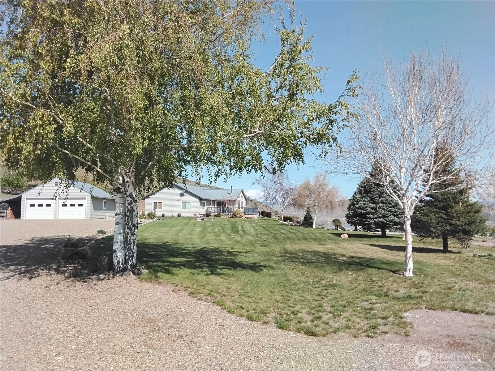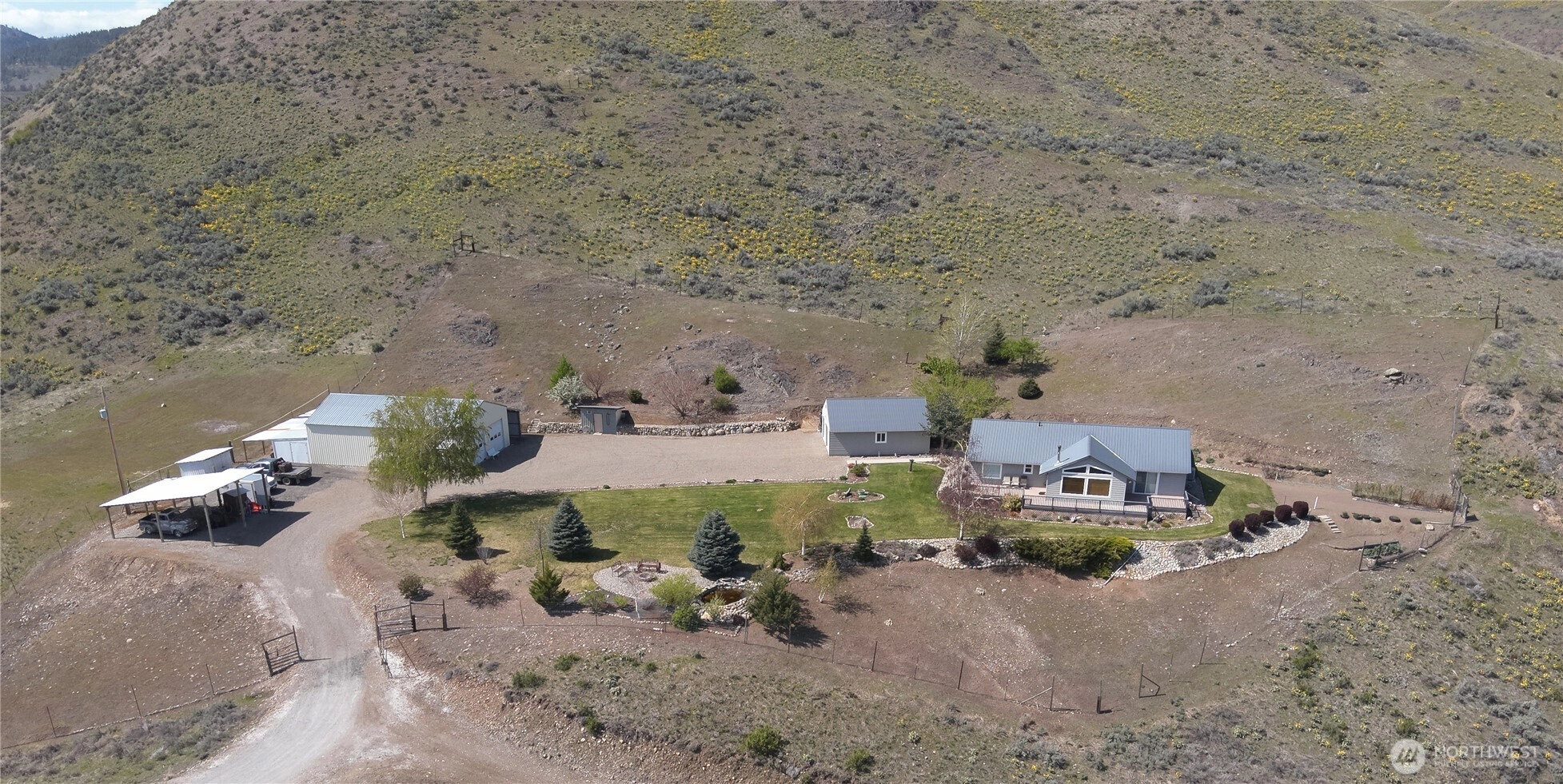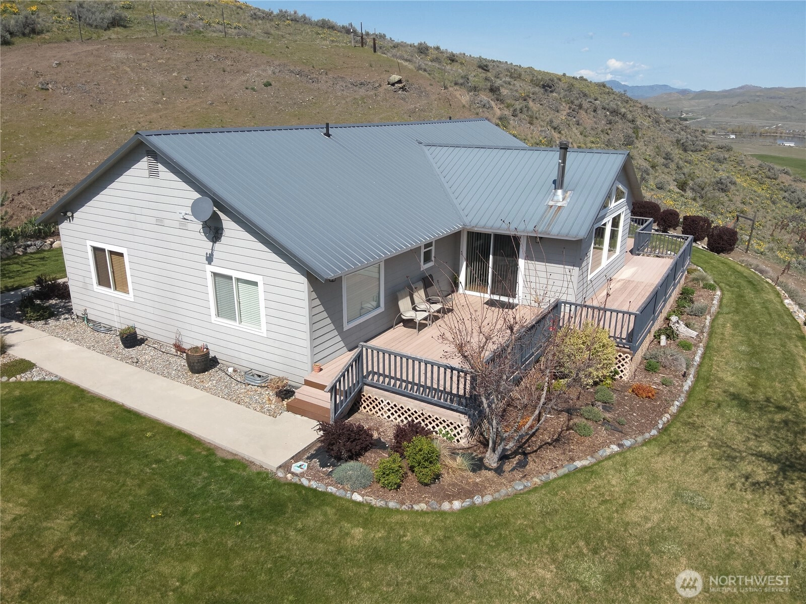 This meticulously maintained home features solid wood floors, doors, and cabinets, vaulted ceilings, recessed lighting, a jetted tub, two walk-in showers & a cozy fireplace. Two sliders open to a full-length deck with panoramic views. Includes 400-amp service, 2-car garage & a 1,760 sq ft insulated shop with 200-amp, car lift, compressor, tool room, office & secured storage. Extras: powered A/C shed, koi pond, fenced garden, fire pit, chicken coop & fenced yard. Borders nearly 2,000 acres of DNR land with stunning views of the Okanogan Valley & Aeneas Lake—just minutes from Tonasket!