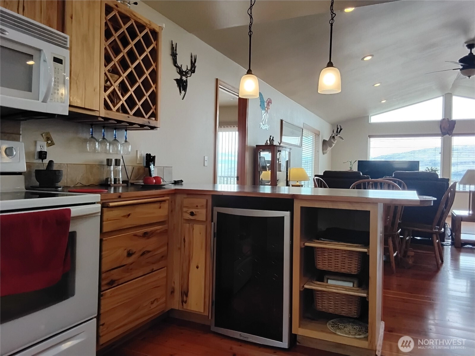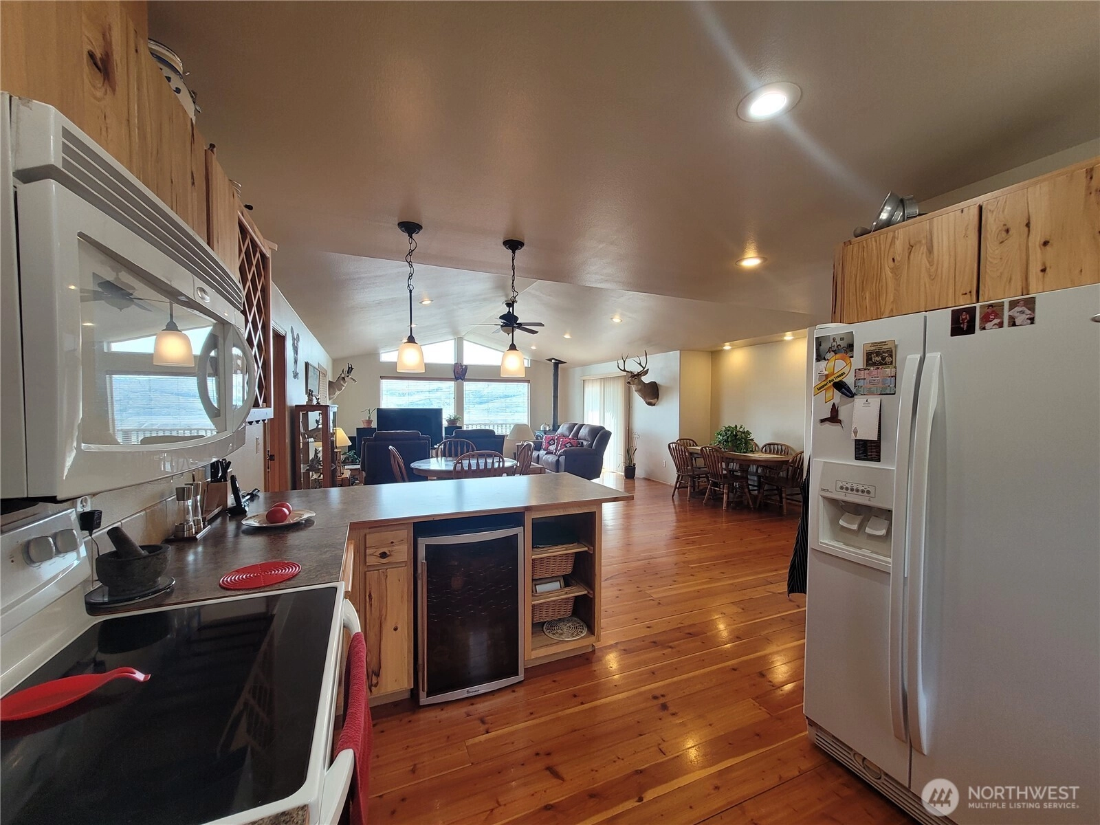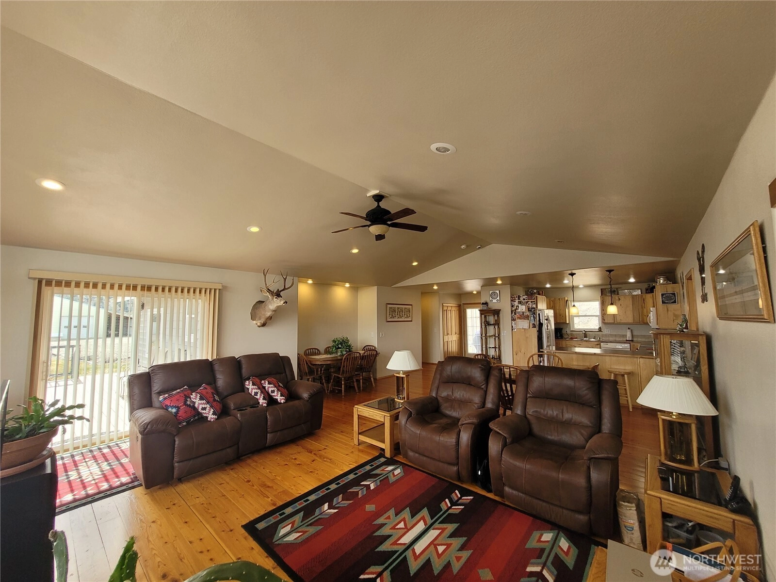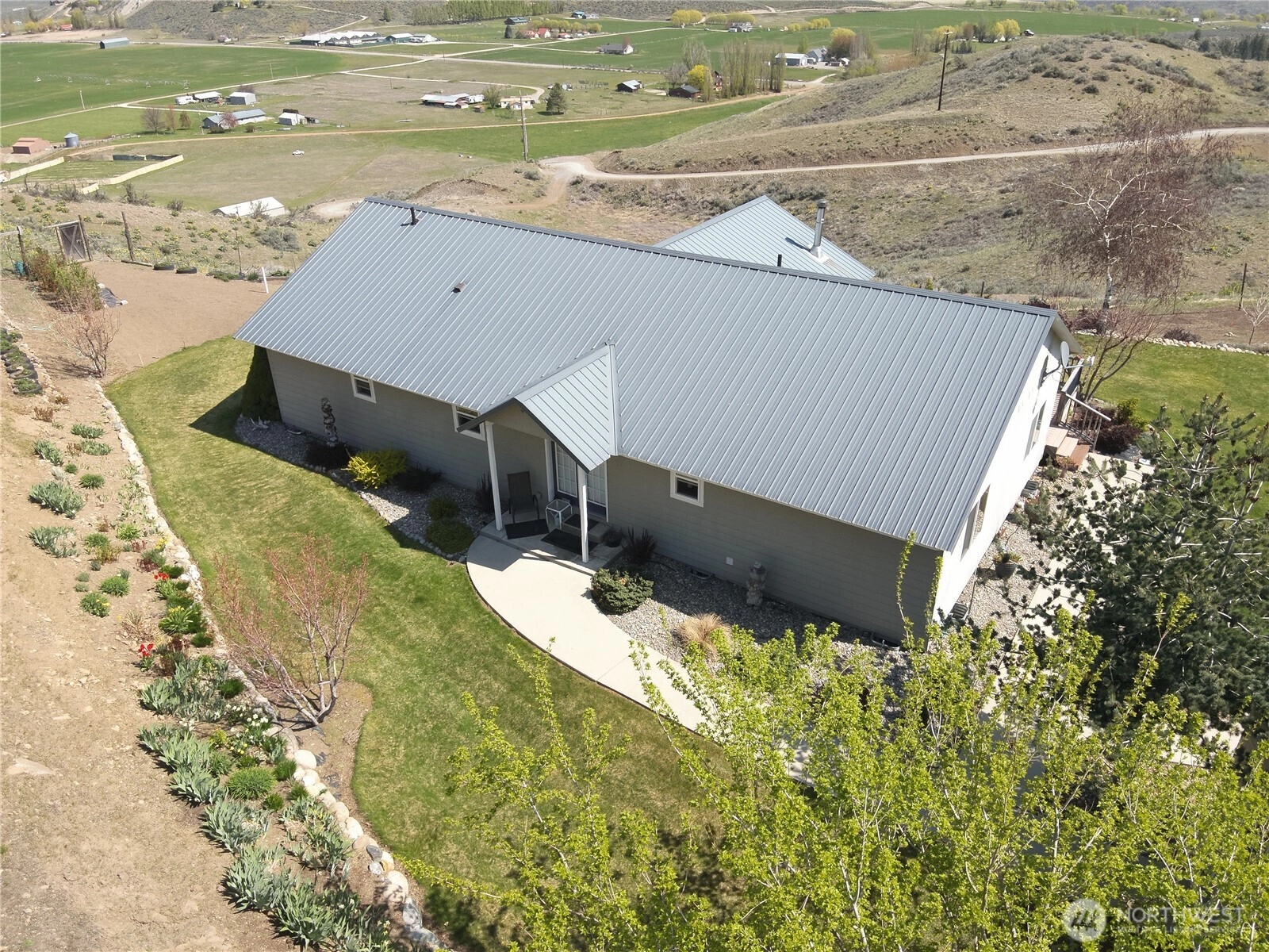 This meticulously maintained home features solid wood floors, doors, and cabinets, vaulted ceilings, recessed lighting, a jetted tub, two walk-in showers & a cozy fireplace. Two sliders open to a full-length deck with panoramic views. Includes 400-amp service, 2-car garage & a 1,760 sq ft insulated shop with 200-amp, car lift, compressor, tool room, office & secured storage. Extras: powered A/C shed, koi pond, fenced garden, fire pit, chicken coop & fenced yard. Borders nearly 2,000 acres of DNR land with stunning views of the Okanogan Valley & Aeneas Lake—just minutes from Tonasket!