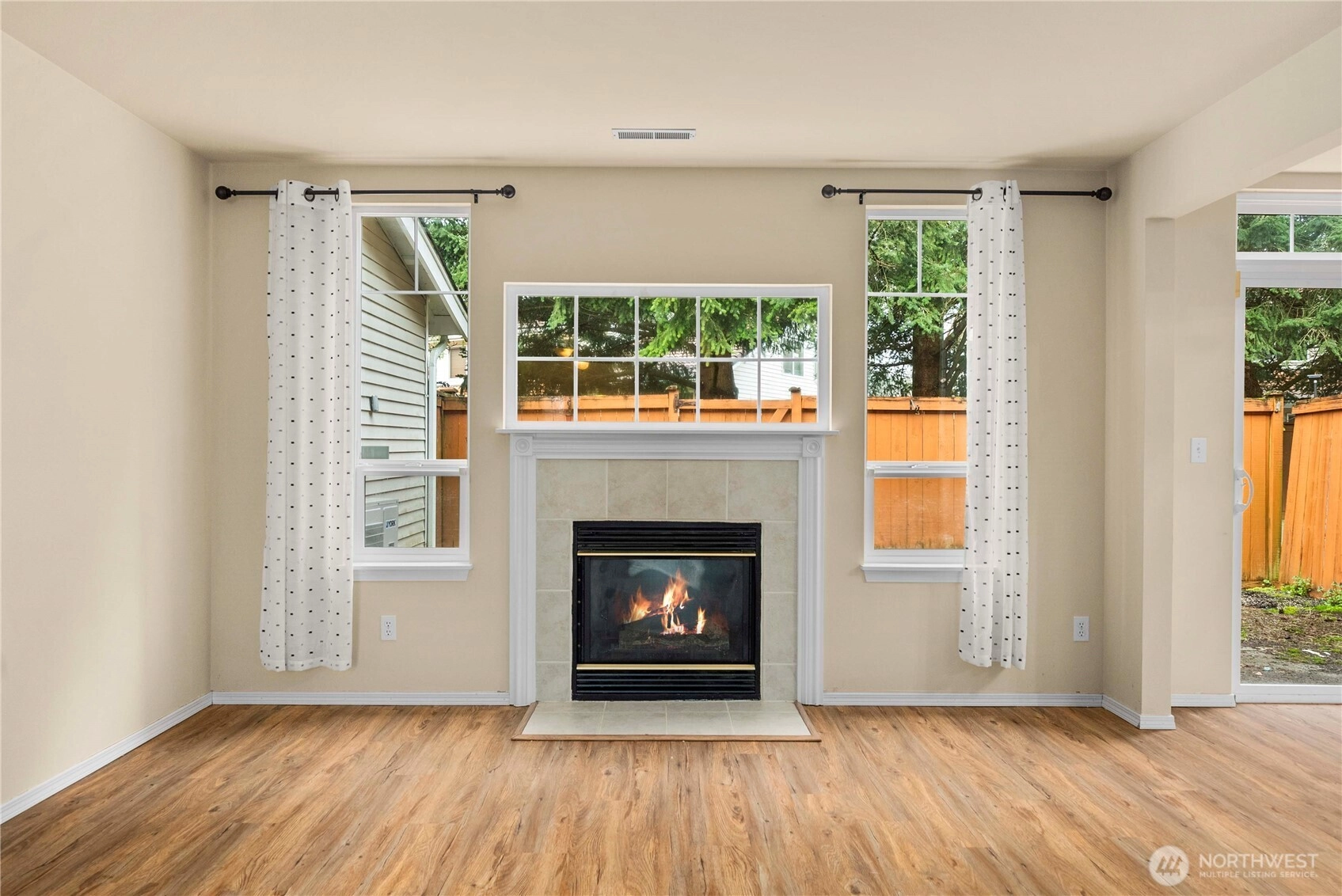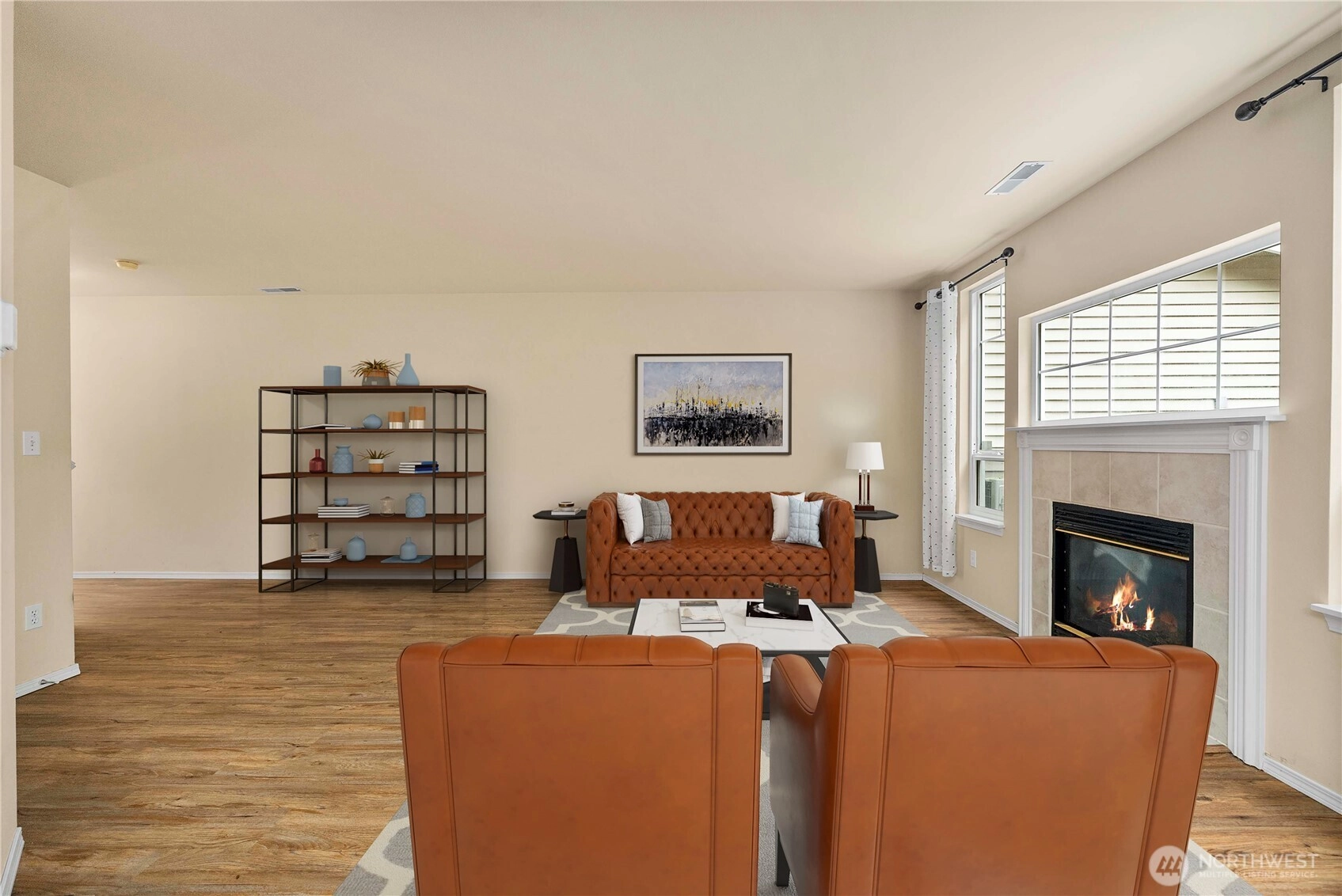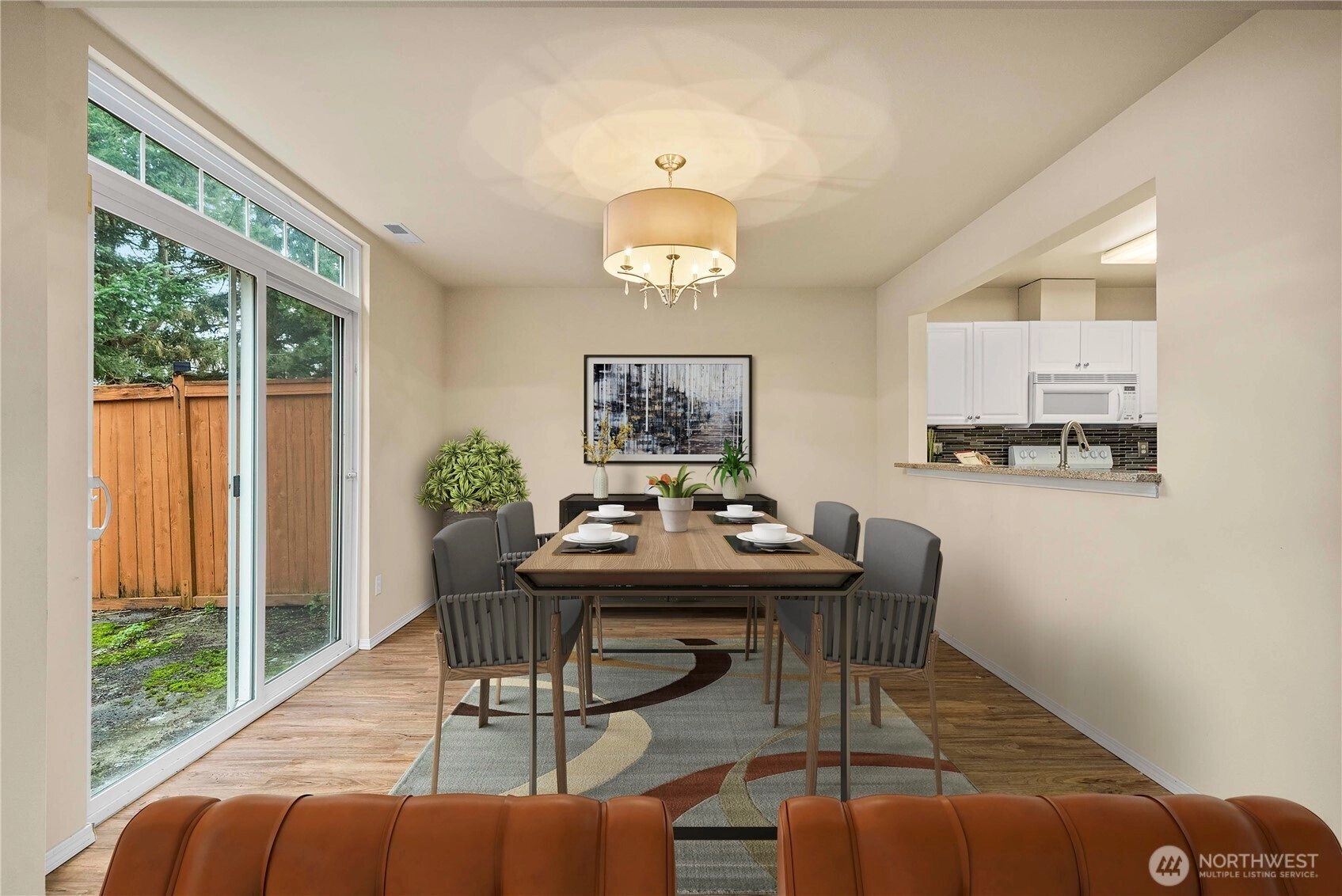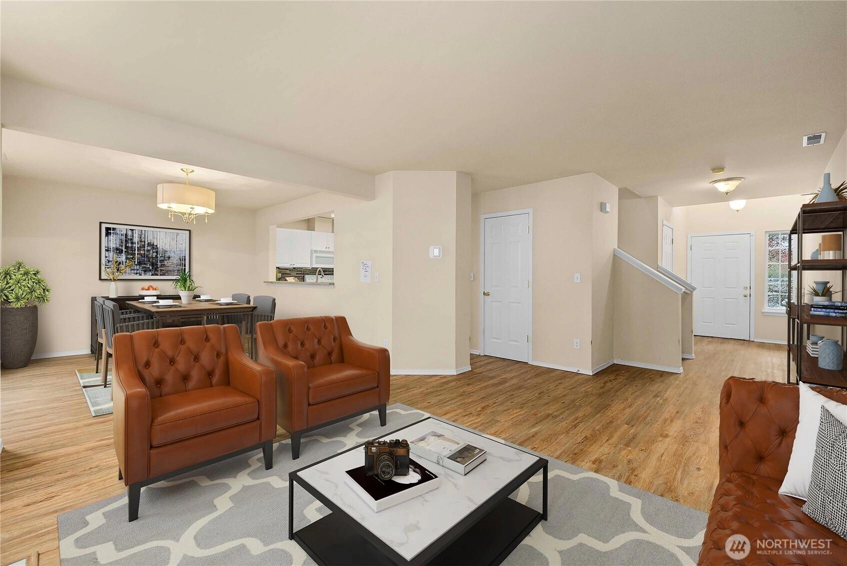 Ready for new owners, this gently used 2-story condo offers everything you are looking for! Three bedrooms, 2.25 baths, 1551 square feet with an inviting layout. Enter to soaring ceilings and a seemless flow from the living room into dining and kitchen. Gas fireplace will keep you cozy all winter! And AC will keep you cool in the summer! Slider to fully-fenced patio offers privacy and room to BBQ. Main floor half bath offers convenience, as does the garage access near the front door. Spacious primary suite located upstairs - complete with walk-in shower and walk-in closet. Two more bedrooms, a full bath, and laundry are also upstairs. 2-car attached garage has extra space for storage! Rainier Crossing is convenient to trails & amenities.