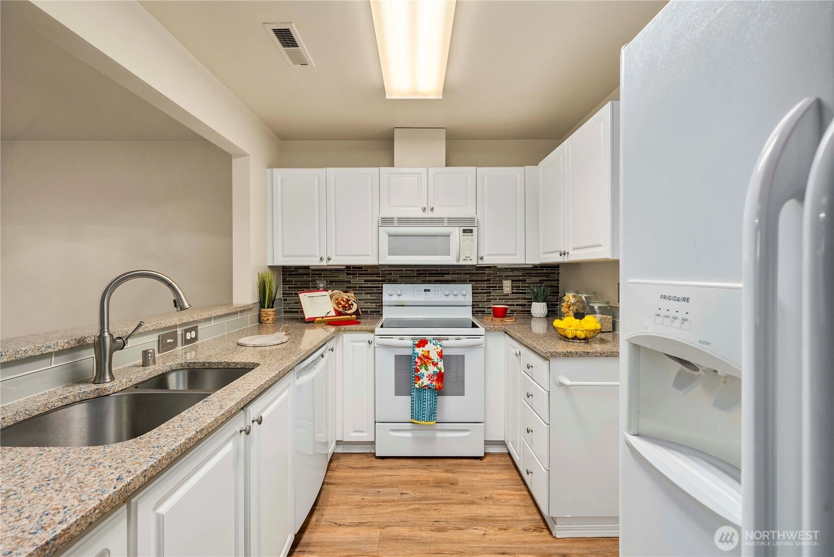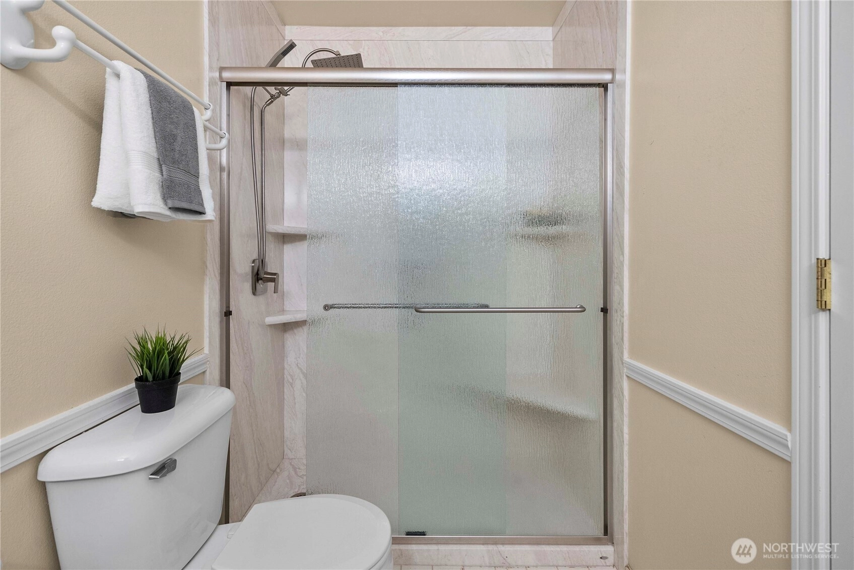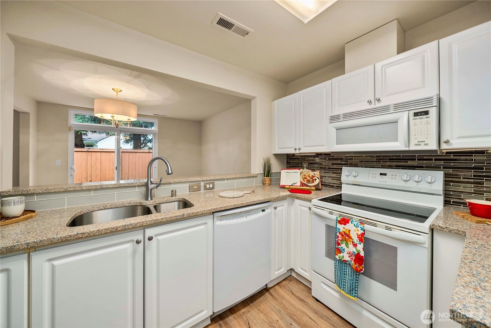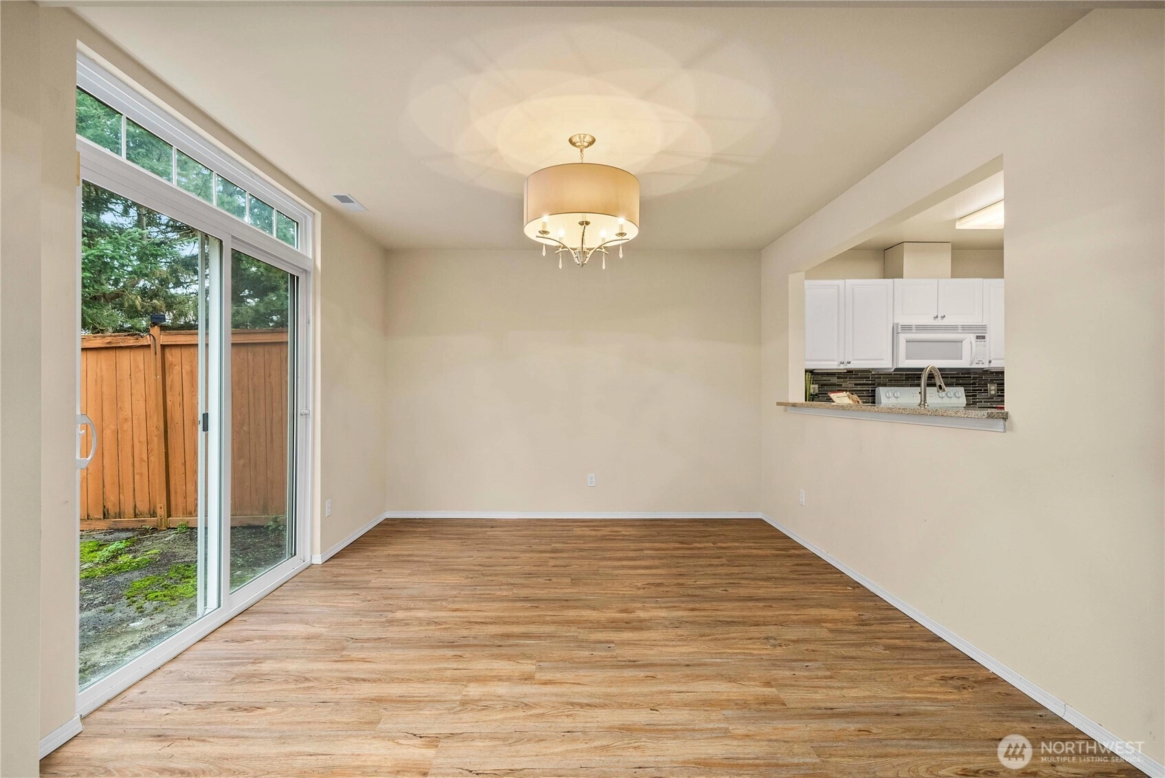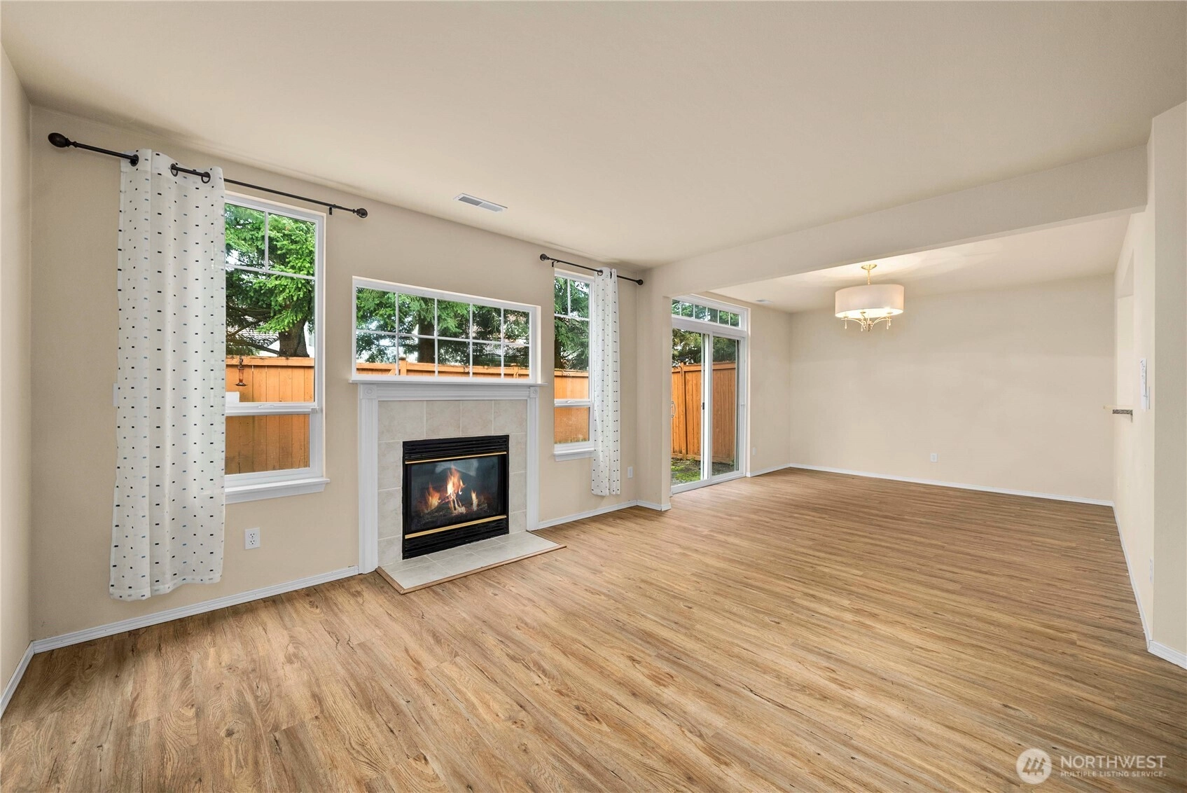Ready for new owners, this gently used 2-story condo offers everything you are looking for! Three bedrooms, 2.25 baths, 1551 square feet with an inviting layout. Enter to soaring ceilings and a seemless flow from the living room into dining and kitchen. Gas fireplace will keep you cozy all winter! And AC will keep you cool in the summer! Slider to fully-fenced patio offers privacy and room to BBQ. Main floor half bath offers convenience, as does the garage access near the front door. Spacious primary suite located upstairs - complete with walk-in shower and walk-in closet. Two more bedrooms, a full bath, and laundry are also upstairs. 2-car attached garage has extra space for storage! Rainier Crossing is convenient to trails & amenities.