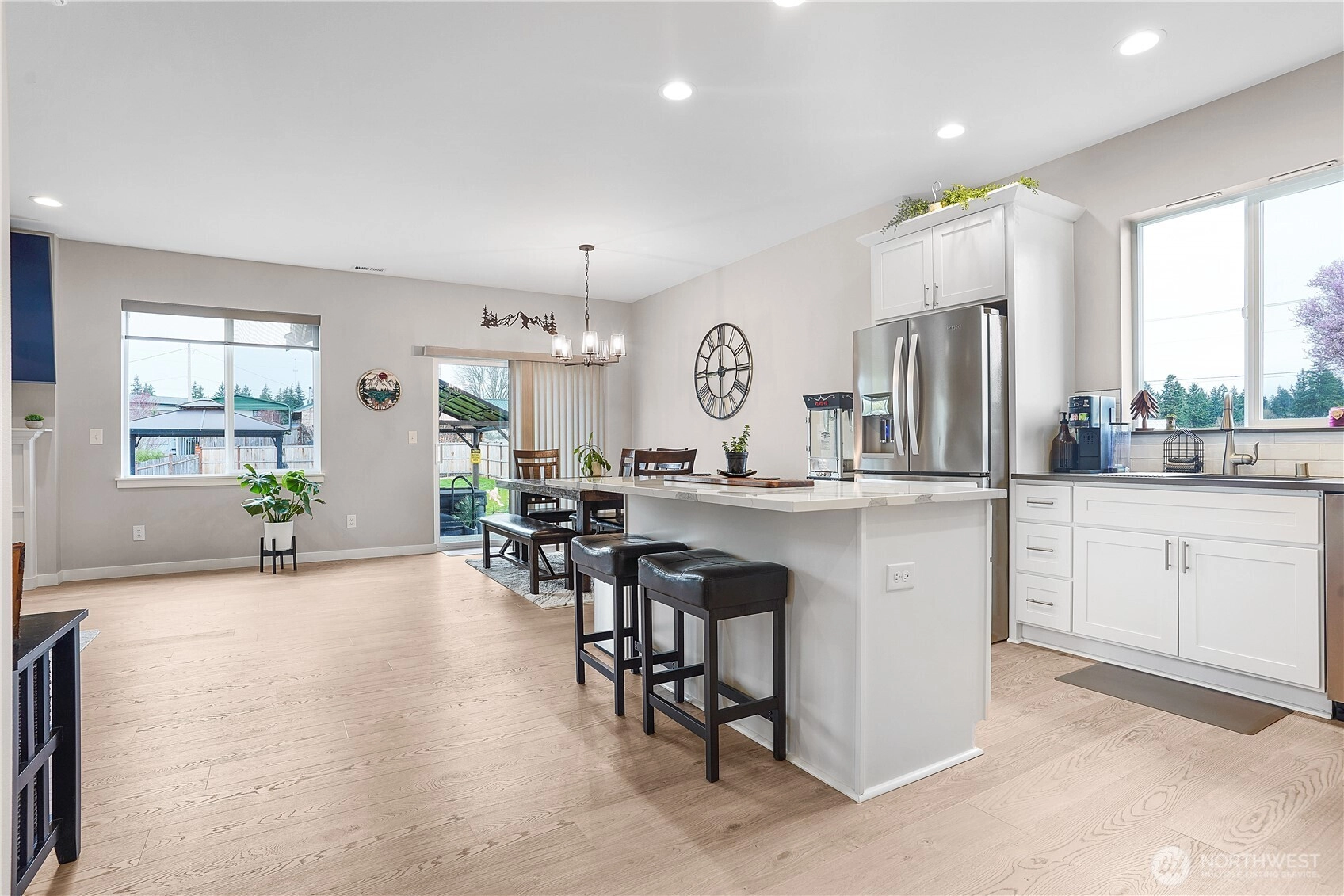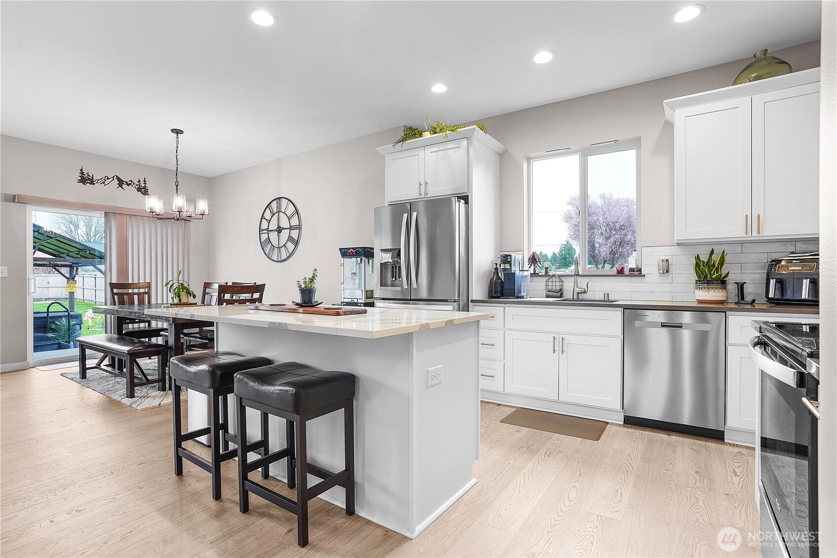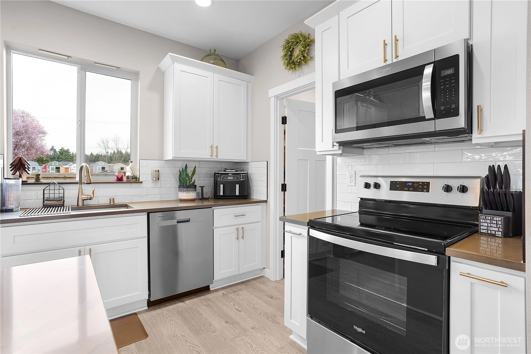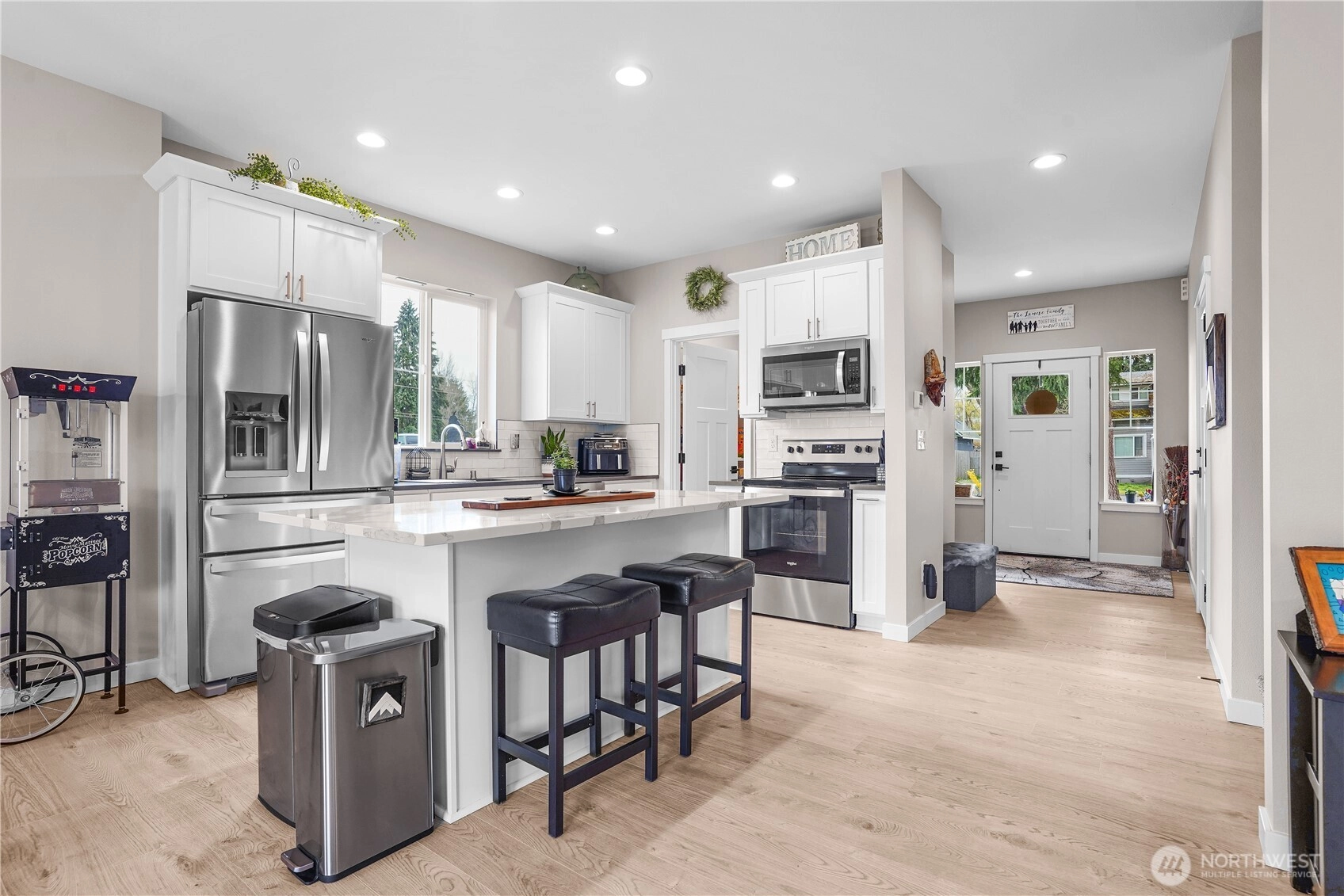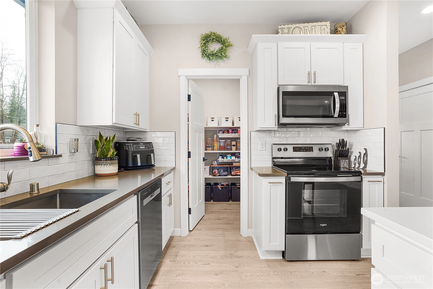 Beautiful 2-story home w/ custom like features in McKenna, conveniently located near multiple amenities w/ easy access to JBLM. This home has 3 size-able bedrooms, an office/bonus room & 2.5 baths. A true primary bedroom w/ a large walk-in closet & 5-piece bath. Main living area has 9ft ceilings w/ open concept kitchen to the great room w/ laminate floors. Kitchen features are white cabinets w/ crown molding, quartz countertops, kitchen island, full height tile backsplash, SS appliances & a great walk-in pantry! Enjoy your 1/4 of an acre backyard w/ a covered patio, fully fenced & landscaped yard. 3 car garage & RV parking available onsite w/ 30 amp plug installed. Less than a year old 8'x20' shed. No HOA