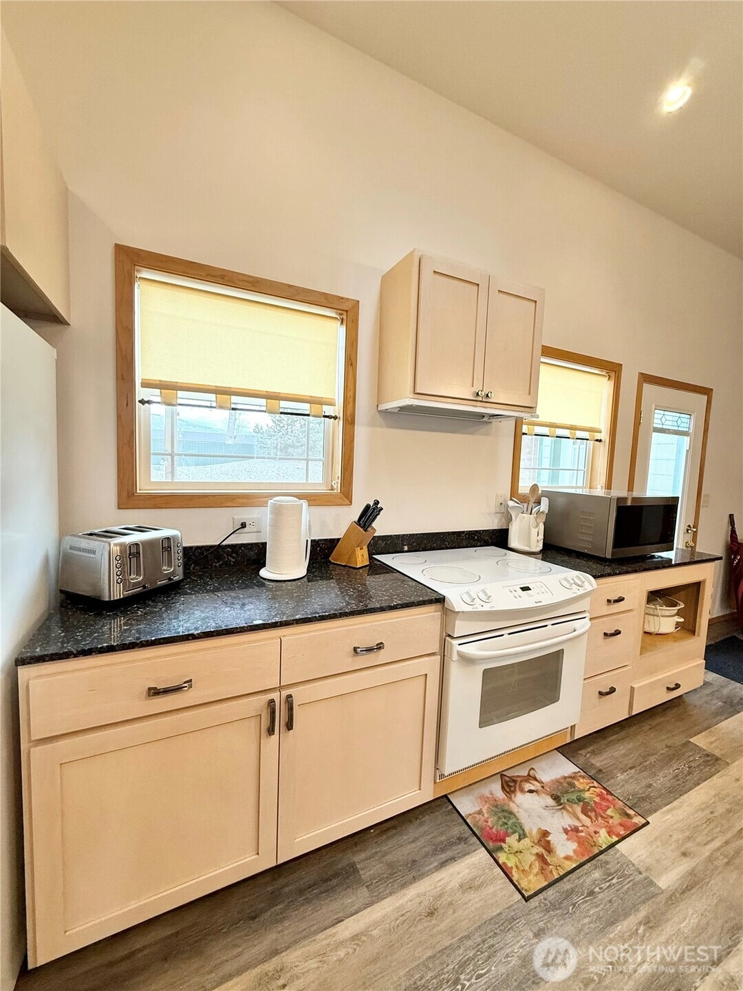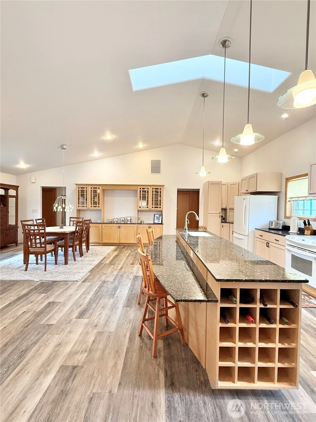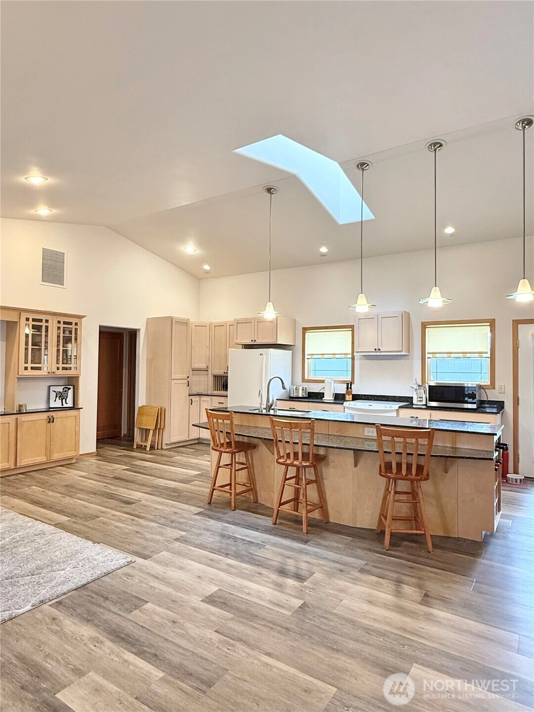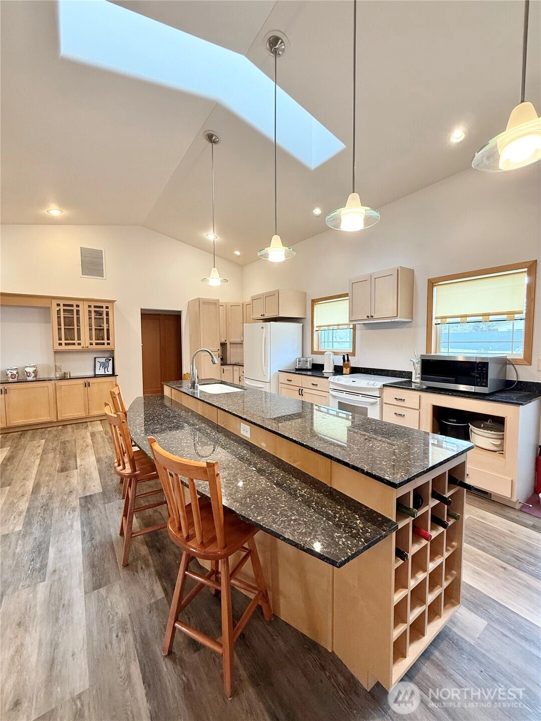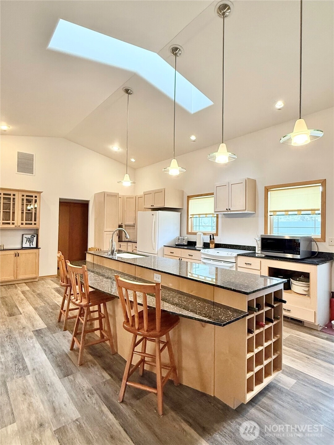Omak - Peaceful location at the end of the street. Home features 2409 sq.ft. 3 bedrooms/3 bathrooms open concept with vaulted ceilings, great room w/dining room, living room, & kitchen w/breakfast bar & granite countertops. All appliances stay. Extras include sky lights, ceiling fans, & custom light fixtures. Tons of BUILT-INS! Primary bedroom w/large walk-in closet & island, second W/D, double sinks & newly remodeled tile shower. 2 bedrooms w/Jack & Jill (three quarter) bathroom. Okanogan Irrigation for yard w/sprinkler system. Fully fenced back yard, professionally landscaped, gate for easy access. RV parking w/water & power. Pergola. Motion lights. Circular - paved driveway. Oversized 2 car attached garage. $425,000 H-3649/MLS-2348020