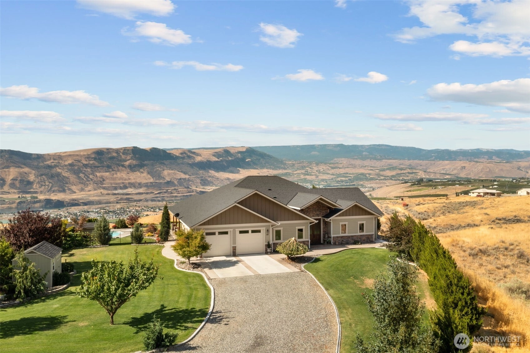 Classy, high-end 2,715 square foot rambler with a huge shop, an in-ground heated pool AND it sits on 21.78 acres! This property is captivating with it's amazing views & immaculate landscaping. Inside offers an elegant kitchen with granite countertops, custom Alder cabinets, stainless steel appliances, & tons of counterspace. Living room has an impressive floor to ceiling rock fireplace, and primary suite has French doors that lead to your own private patio with hot tub. Outside offers a large covered patio that sits just off your custom heated in-ground pool. Lots of useable acreage. Don't forget the detached shop with attached carports that will easily fit 11+ cars under cover. Only 10 minutes to Costco and downtown East Wenatchee.
