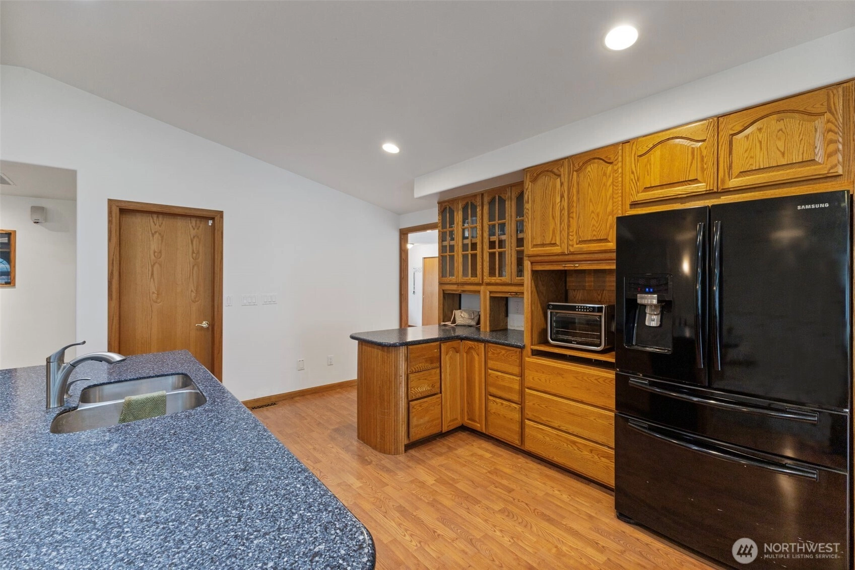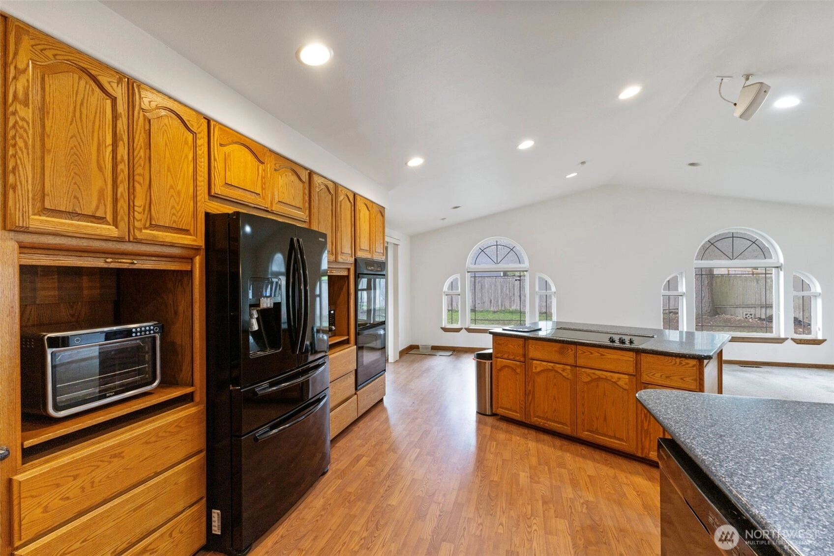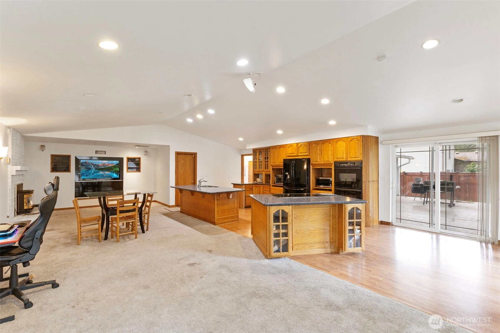 Price Reduced! This spacious 1,876 sq. ft. rambler sits in a quiet, friendly neighborhood! The 3-bed, 1.75-bath home boasts an open-concept design, cathedral ceilings and a heat pump with A/C. The kitchen has custom oak cabinetry, double ovens, two islands and ample storage. Cozy up by the propane fireplace or enjoy the formal dining and living rooms. Outside, find a newer roof, Leaf Guard gutters, a covered deck with outdoor speakers, a carport, a 14x14 shed with loft, RV parking and a fully fenced yard. Wired for a generator—generator included! Don't miss this gem!